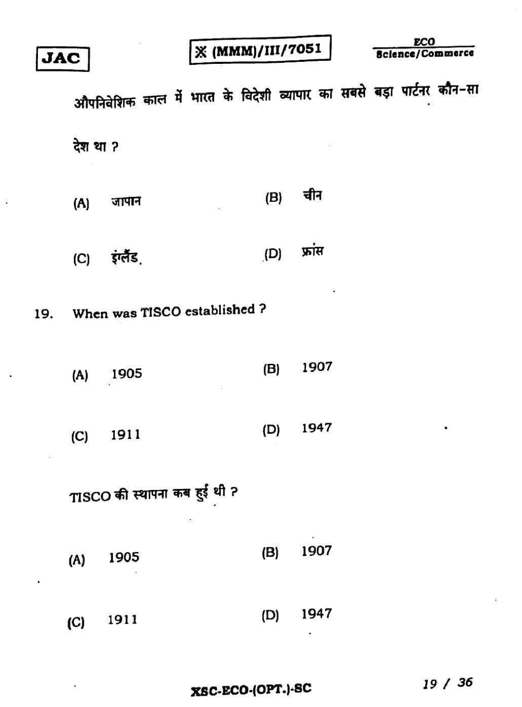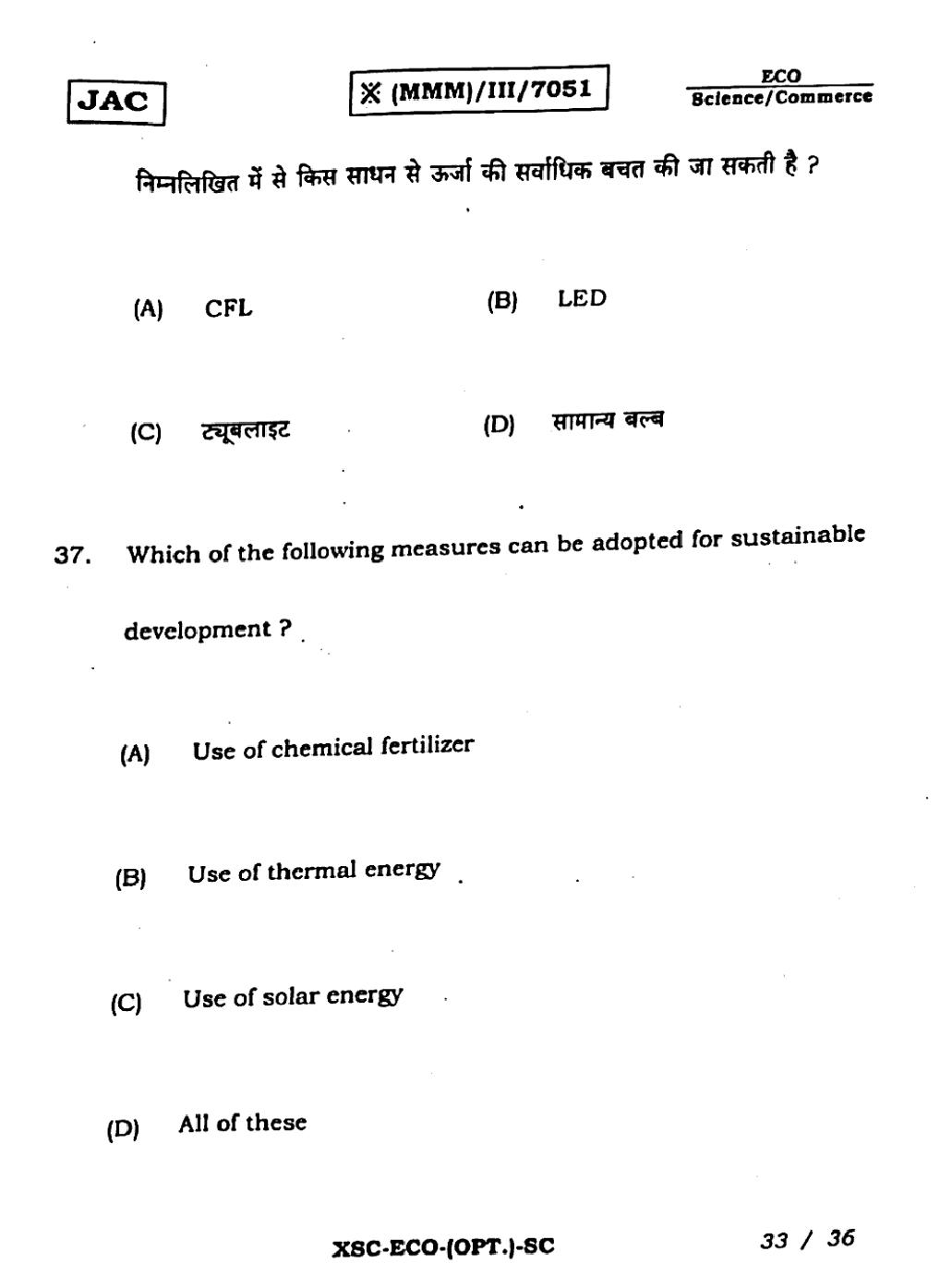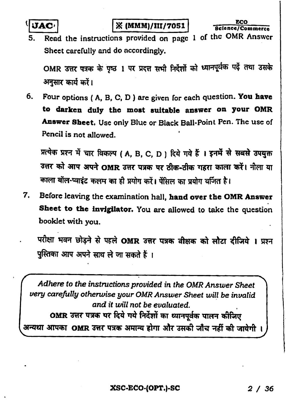 JAC Previous Year Question Papers