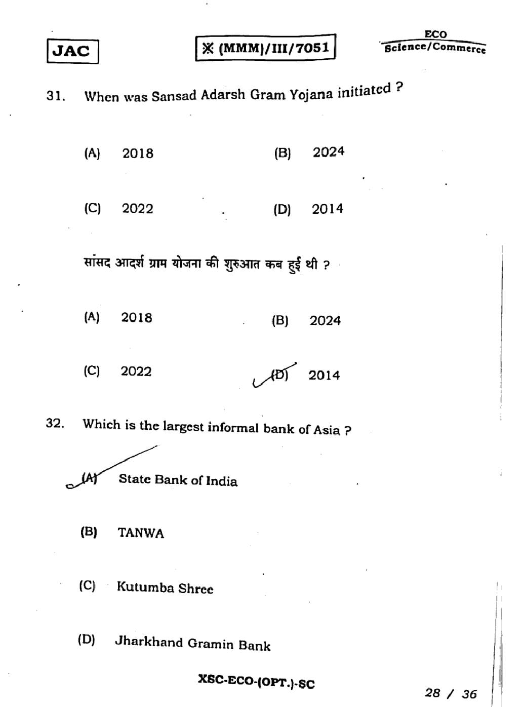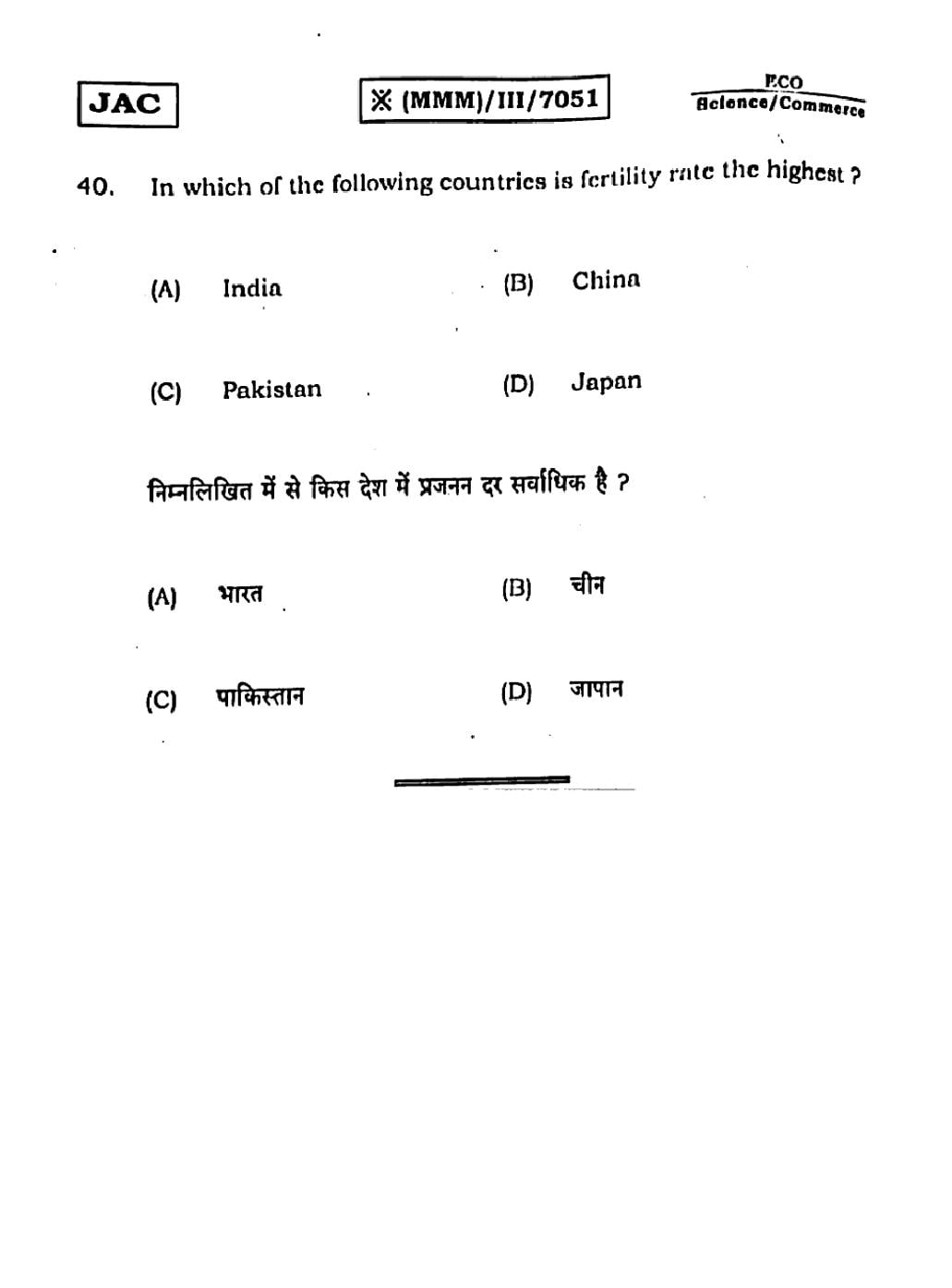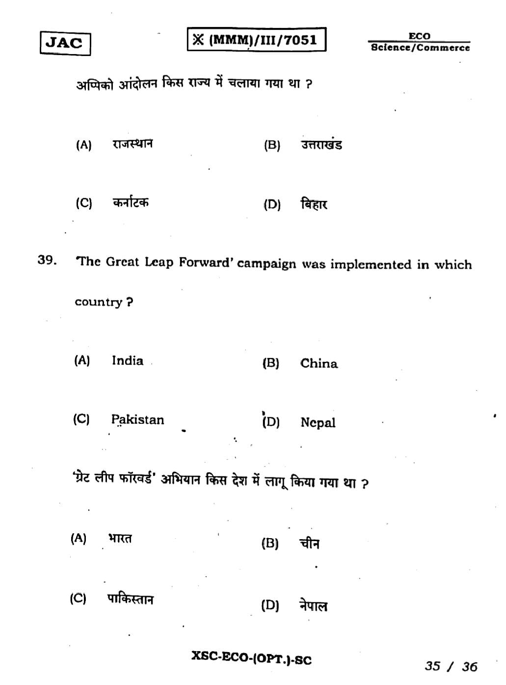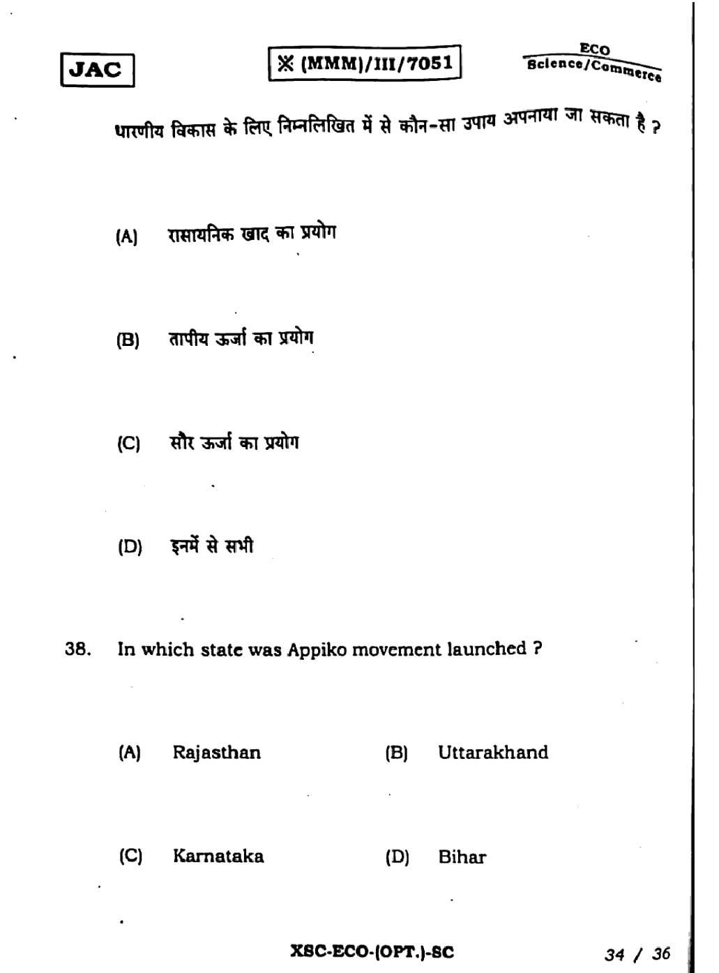 JAC Previous Year Question Papers
