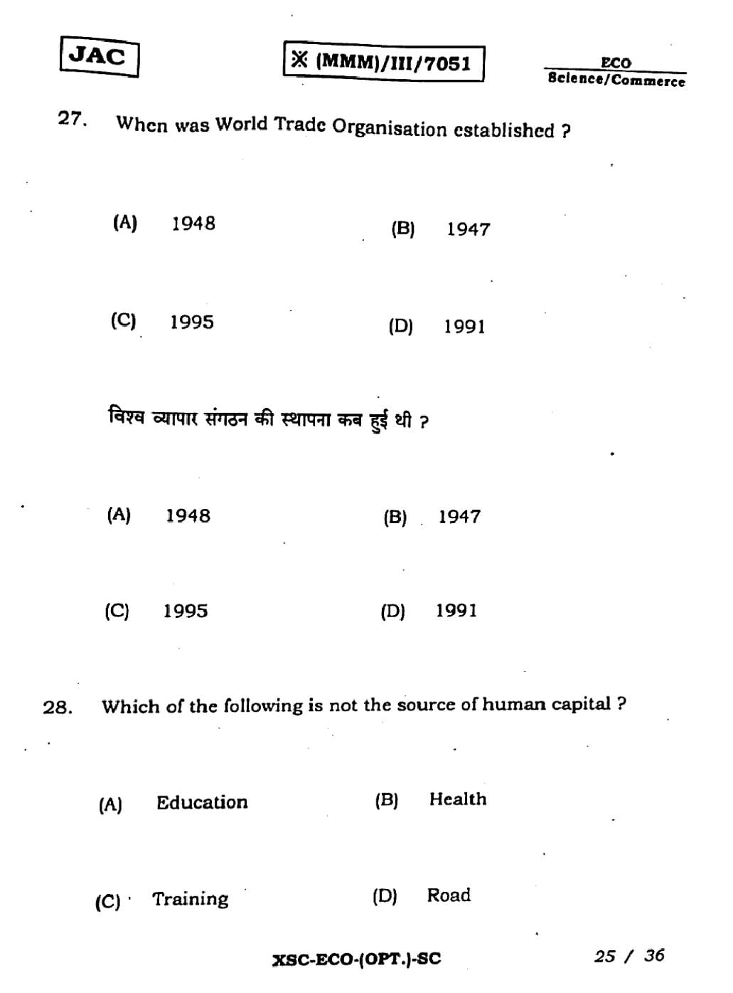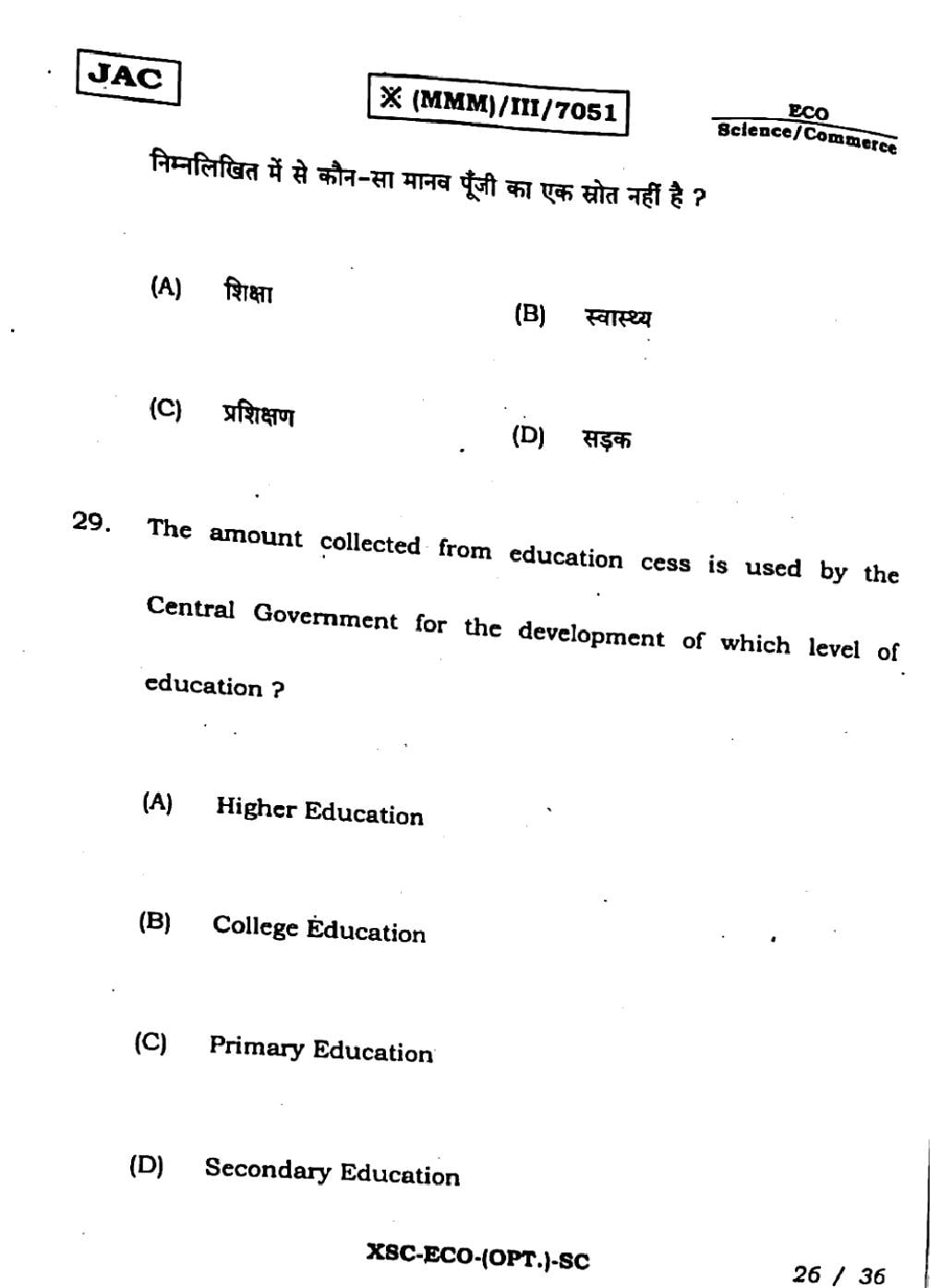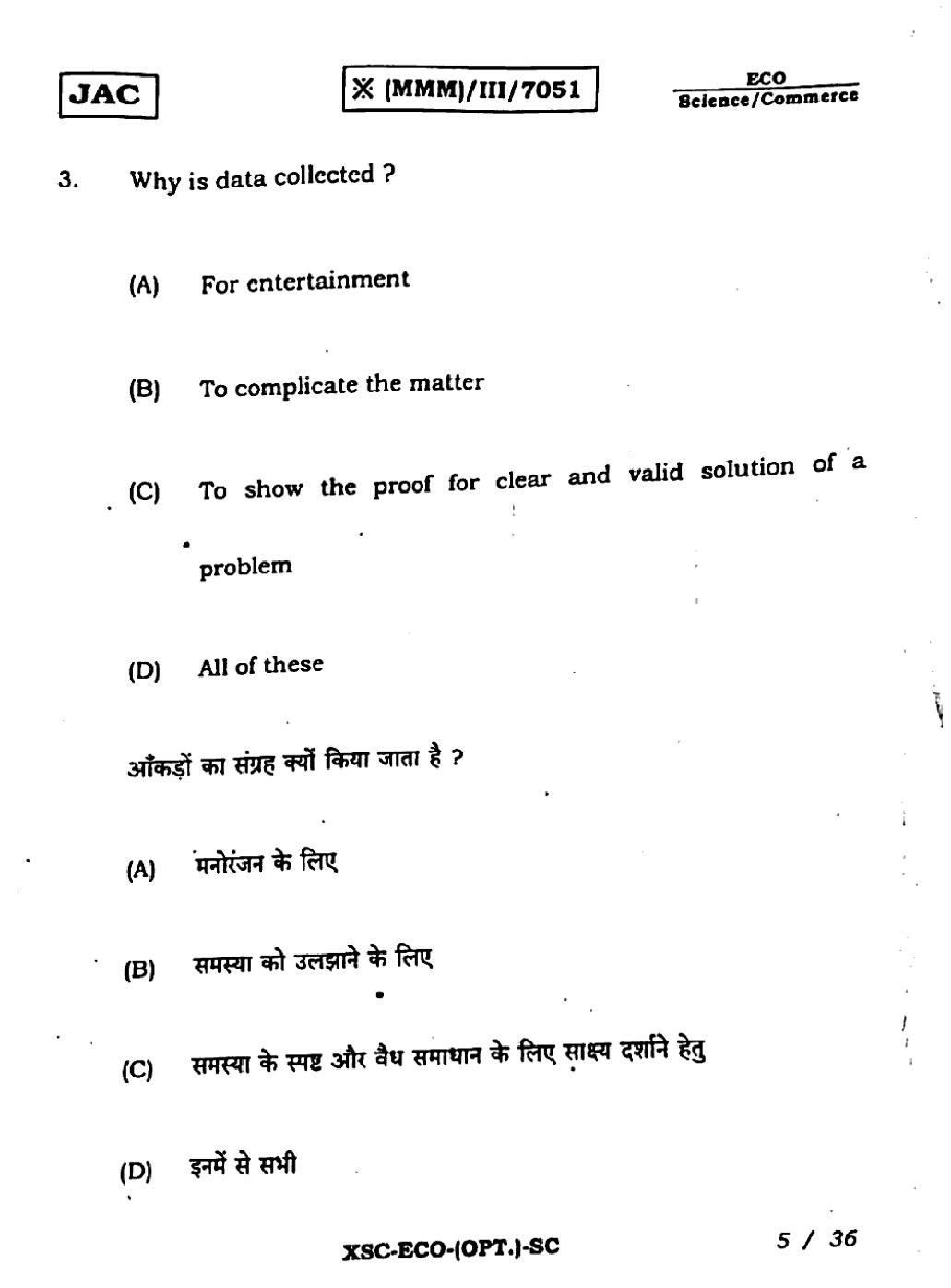 | Resource Here | Jharkhand Board Previous Year Question Paper of Class 11 Economics |
