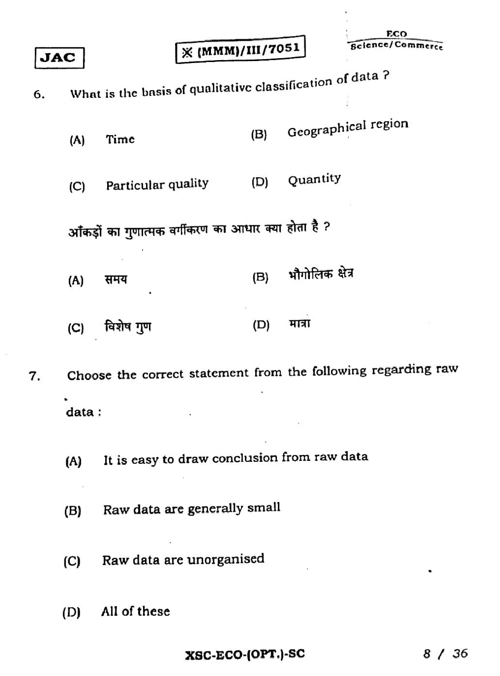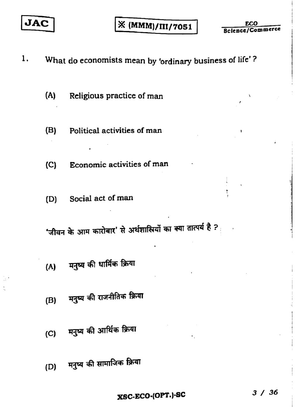 | Economics Sample Papers | JAC Class 11th Model Question Paper |