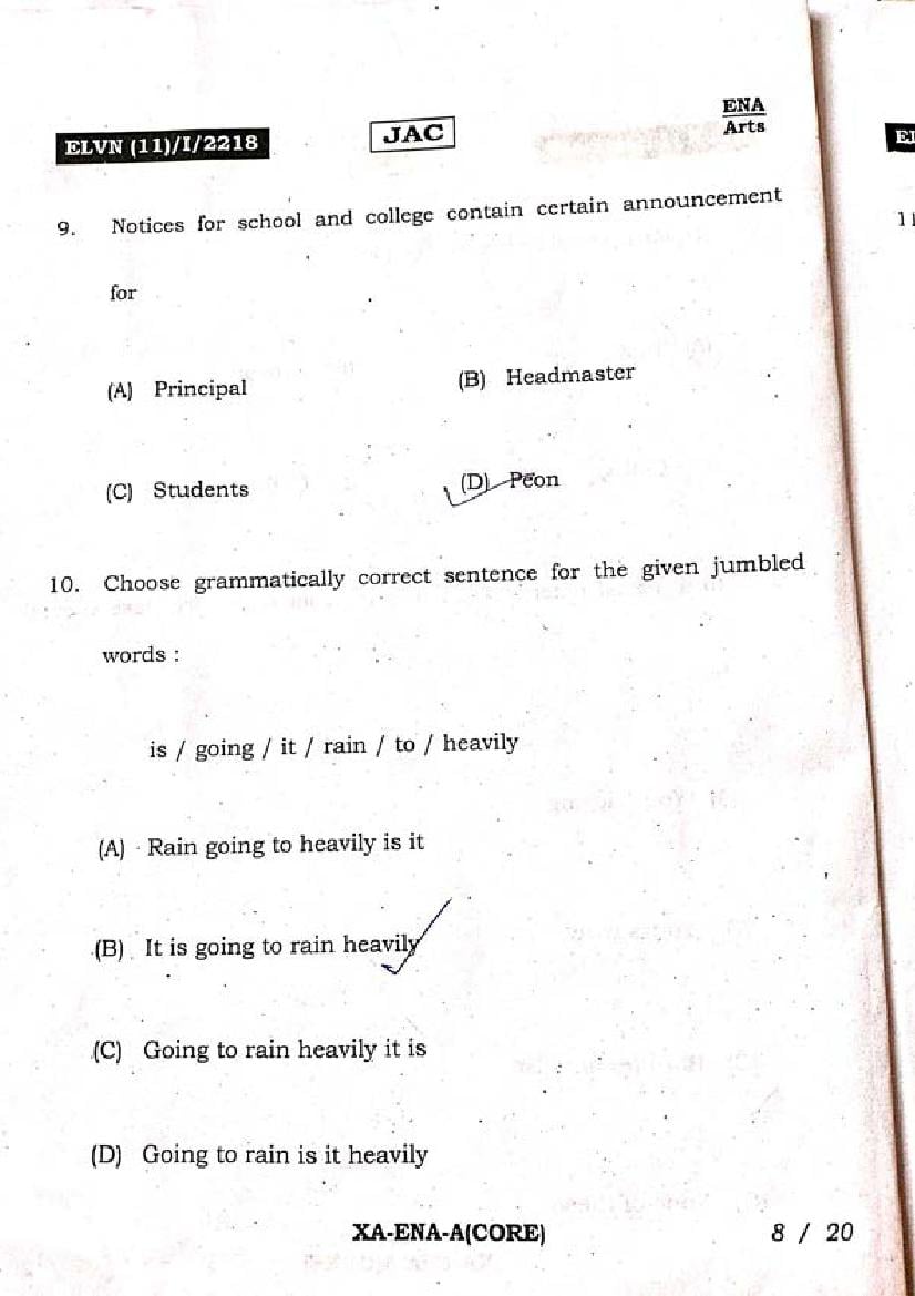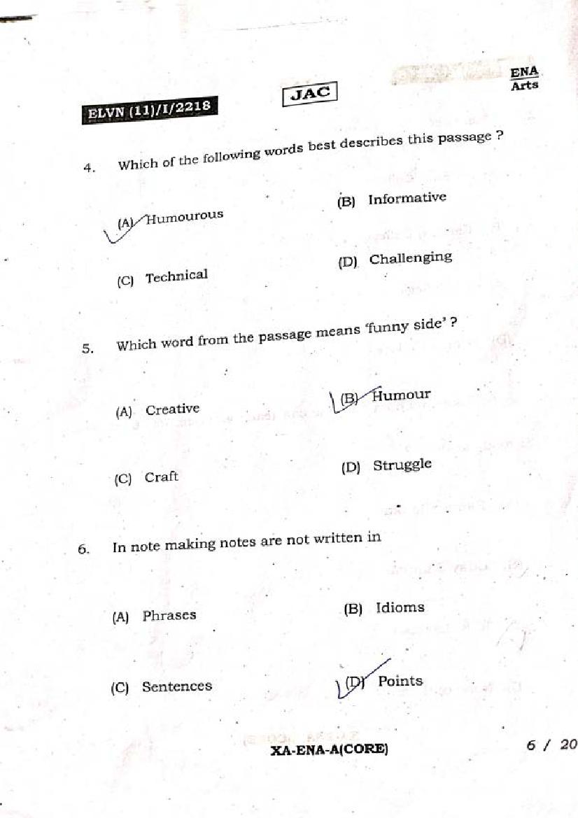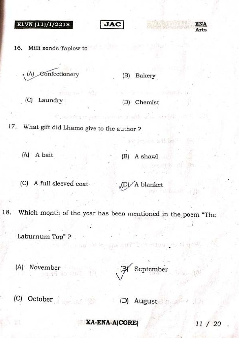 JAC Board Class 11 English (Arts) Previous Year Question Paper
