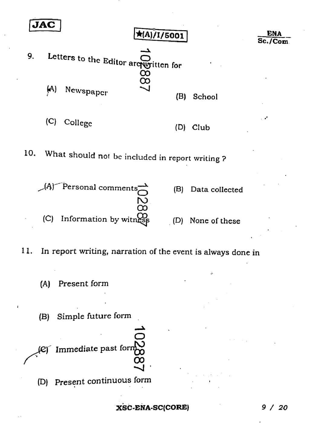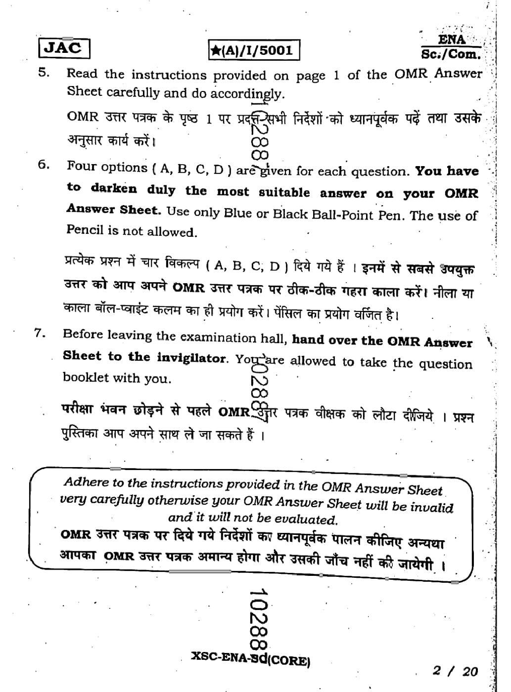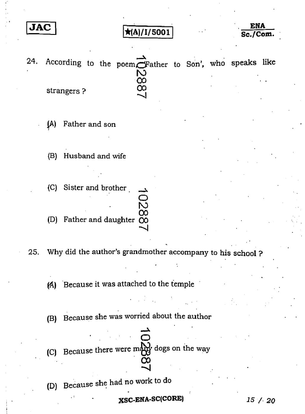 JAC Board Class 11 English (Arts) Previous Year Question Paper