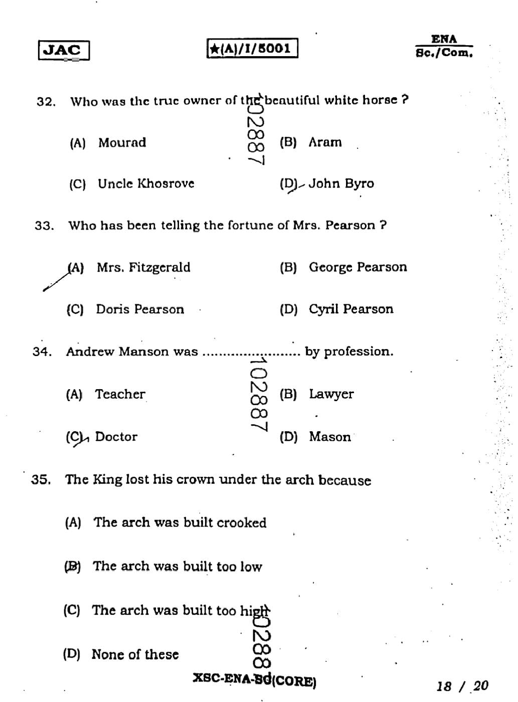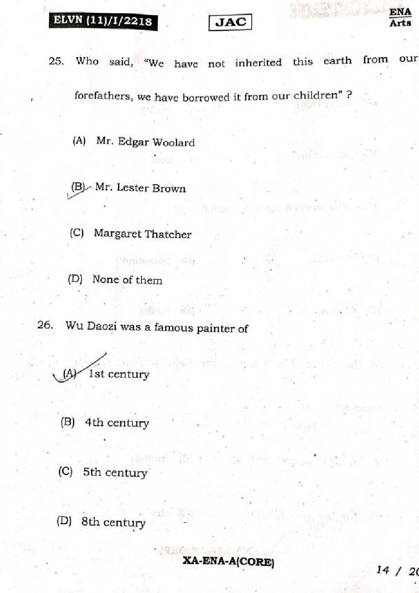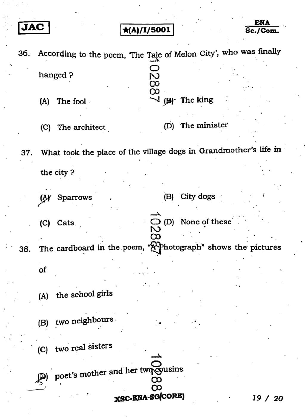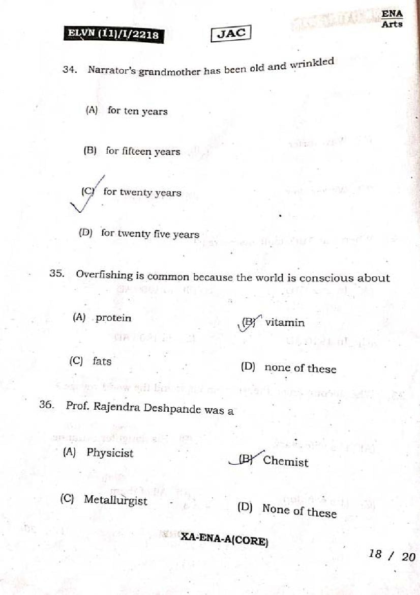 The JAC Board Previous Year Question Paper of Class 11 for English (Arts) is as follows.