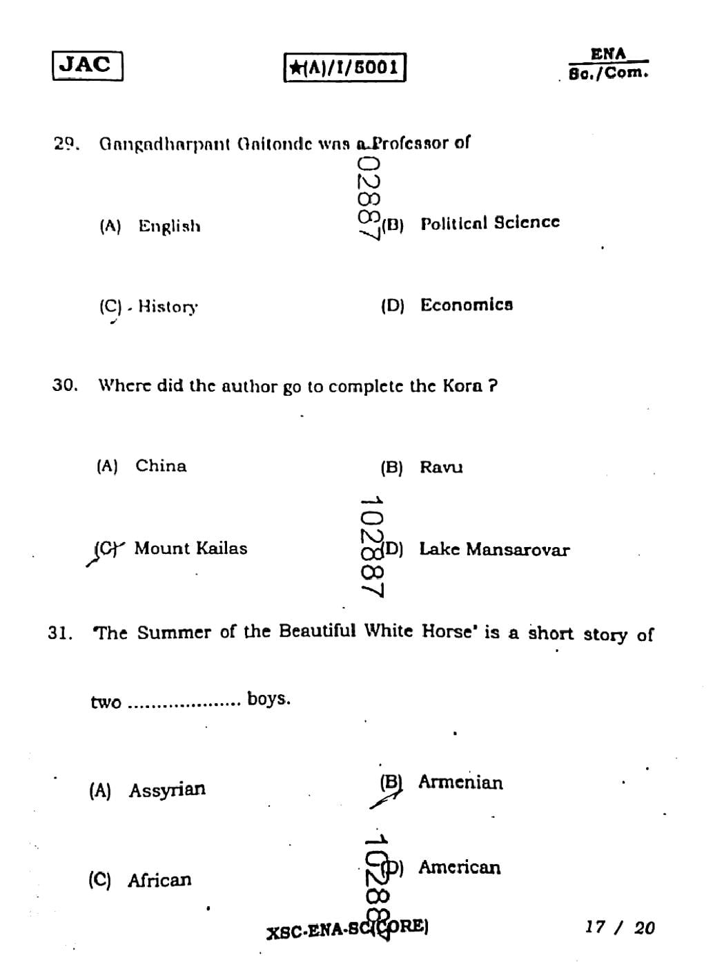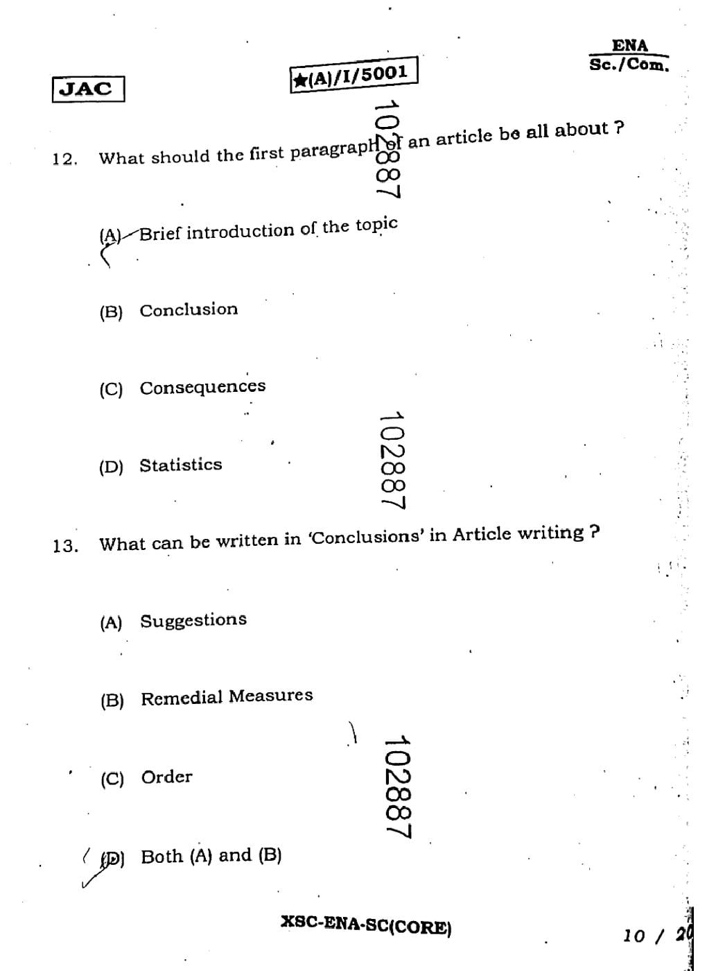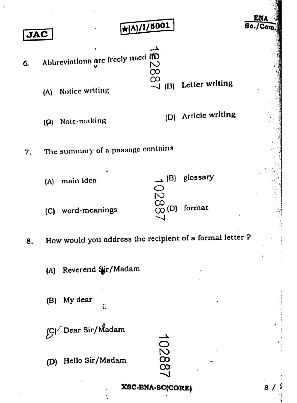 The JAC Board Previous Year Question Paper of Class 11 for English (Arts) is as follows.