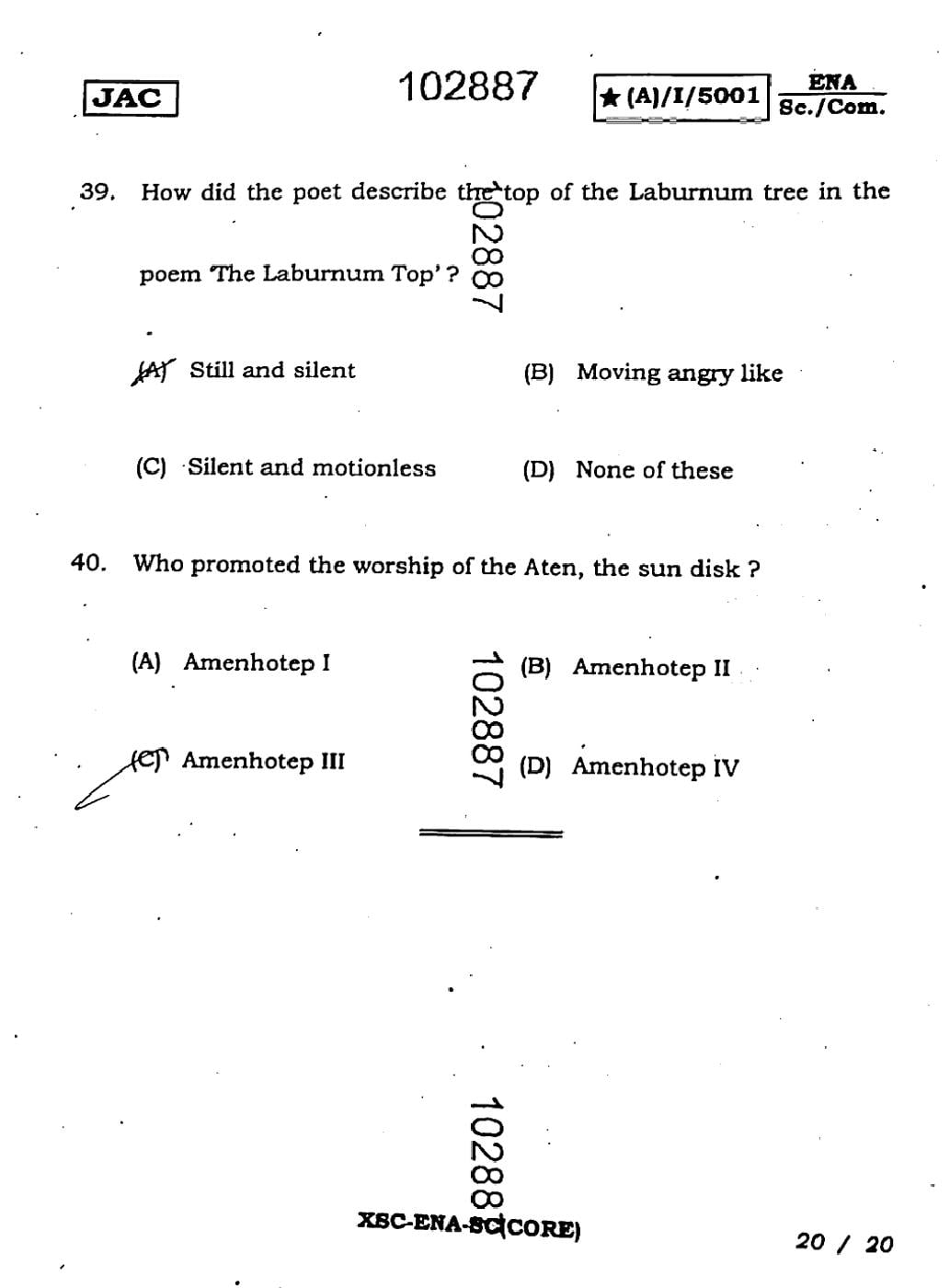 | English (Arts) Sample Papers | JAC Class 11th Model Question Paper |
