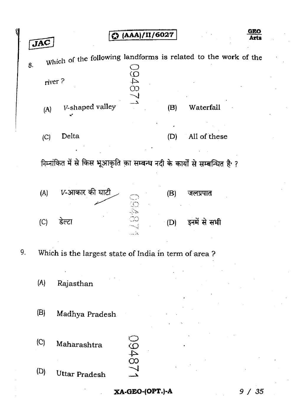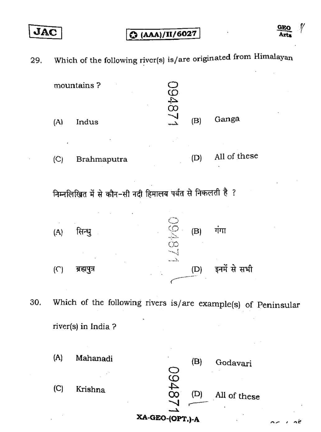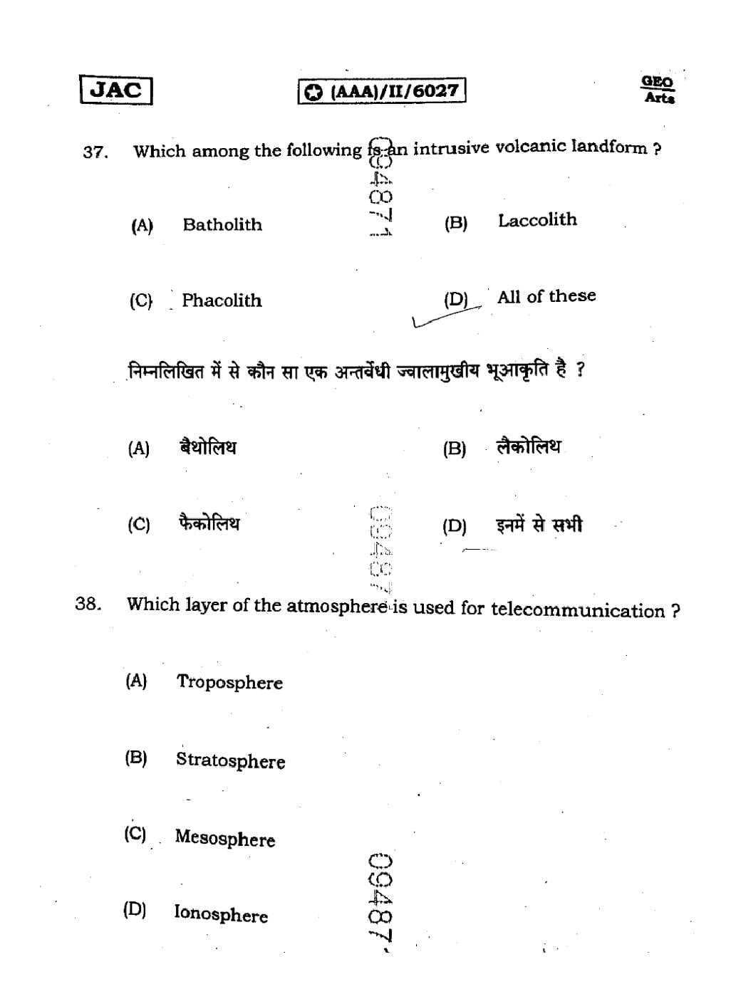 JAC Board Class 11 Geography Previous Year Question Paper