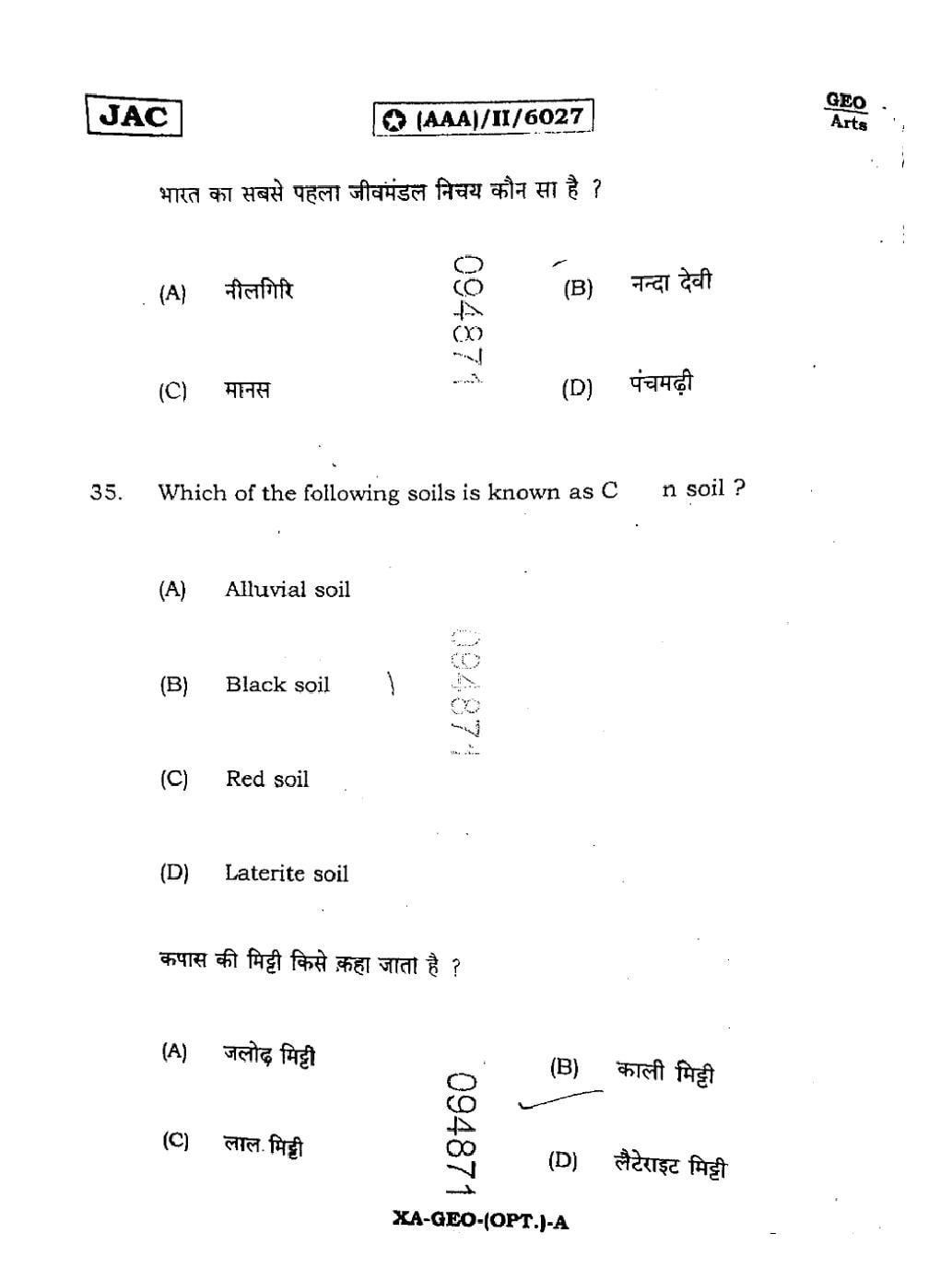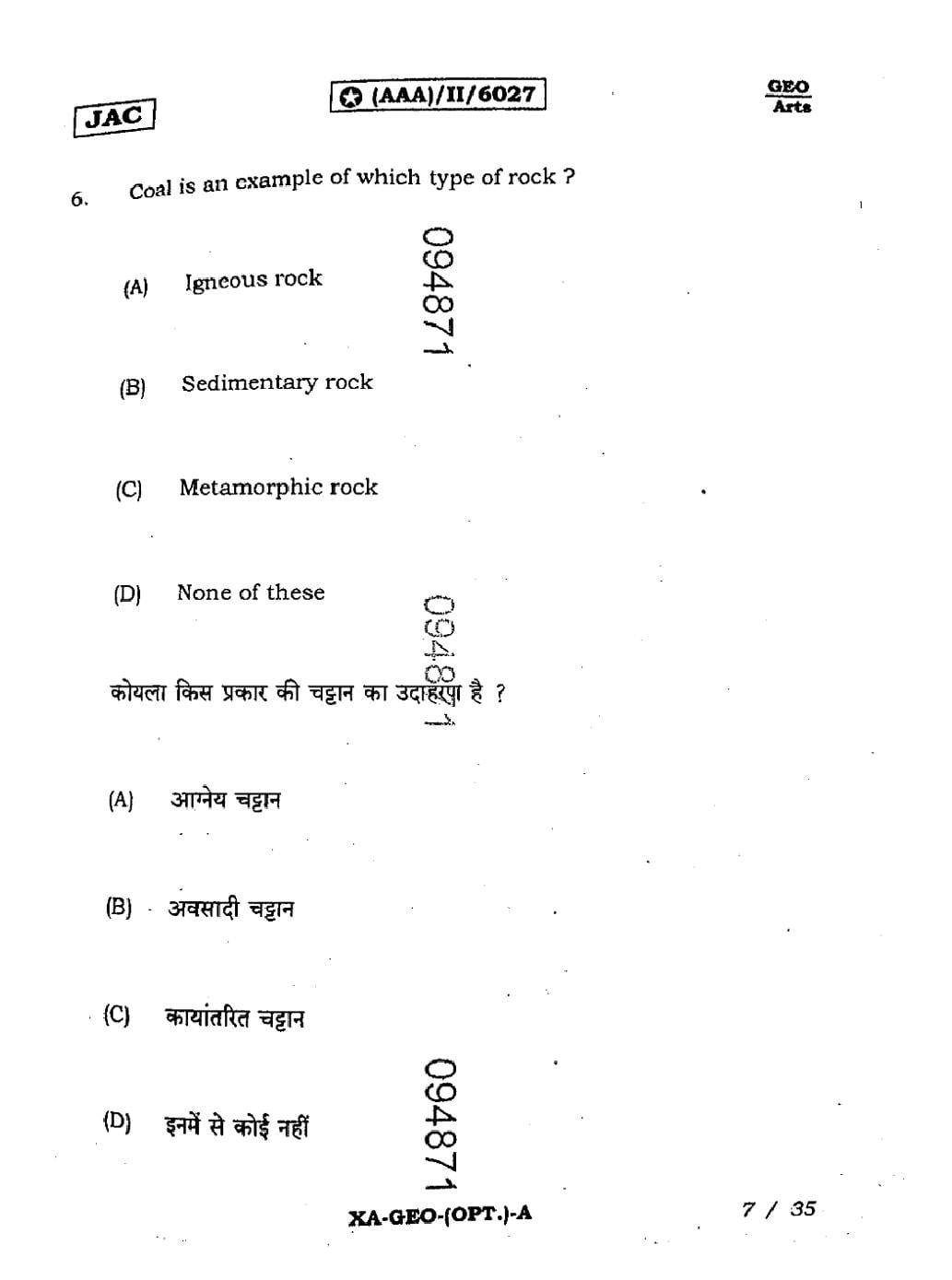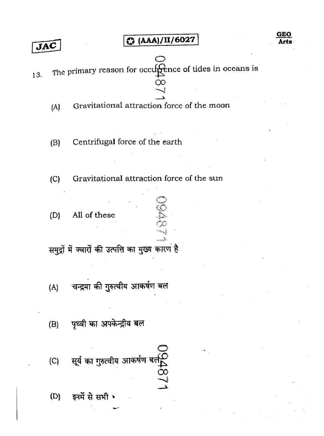 JAC Board Class 11 Geography Previous Year Question Paper