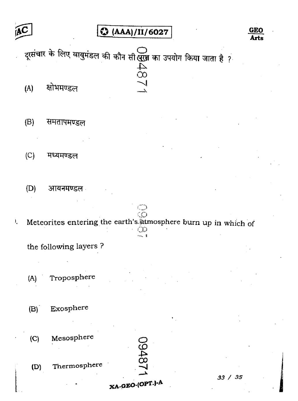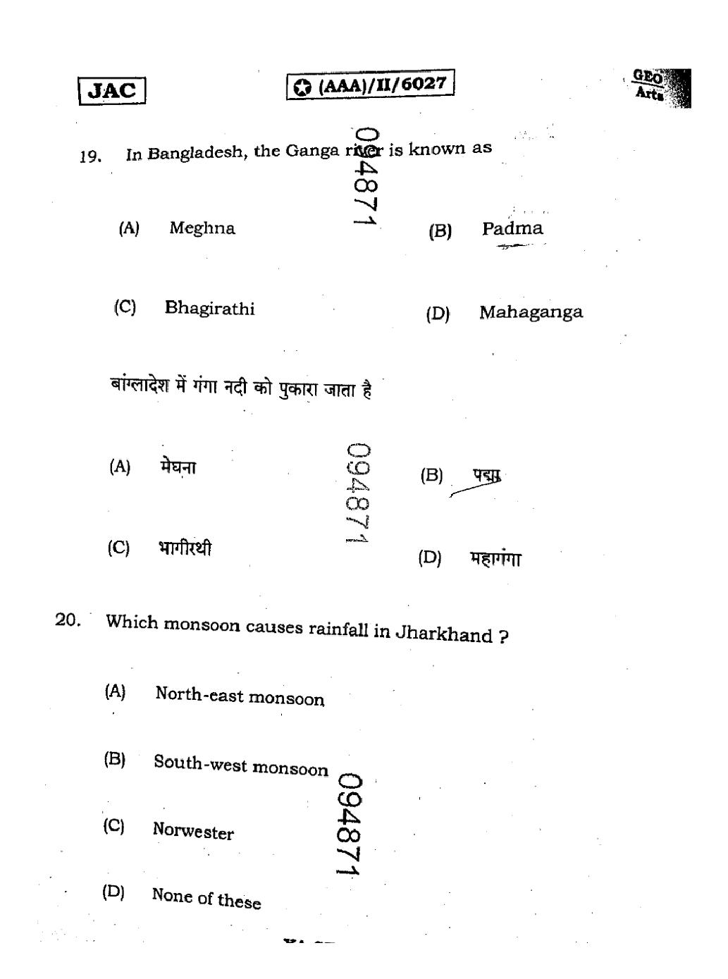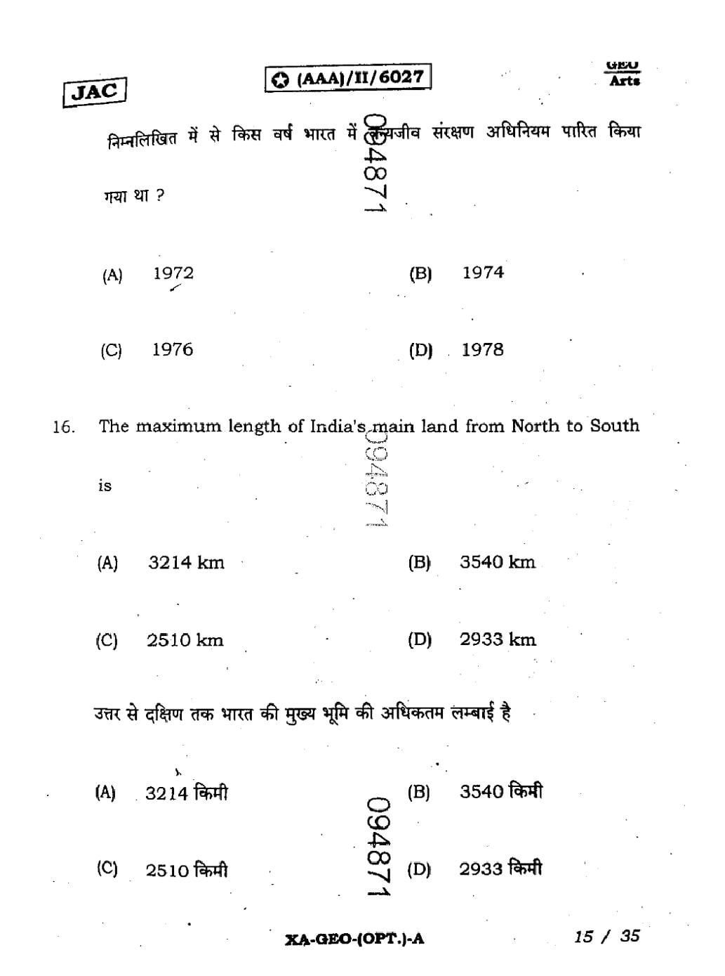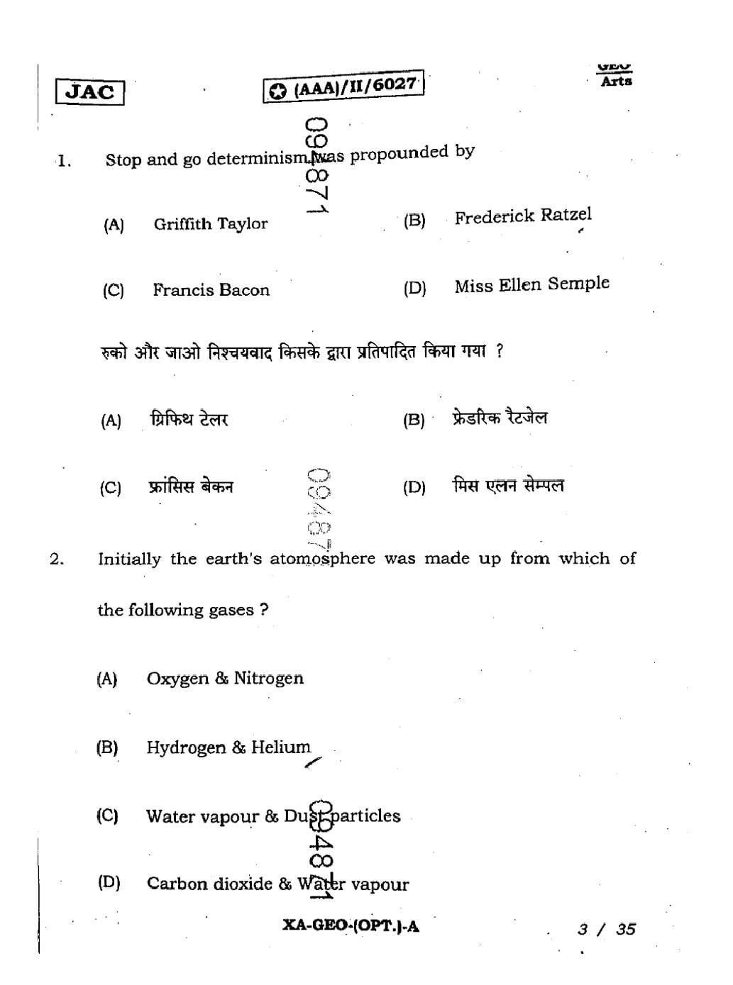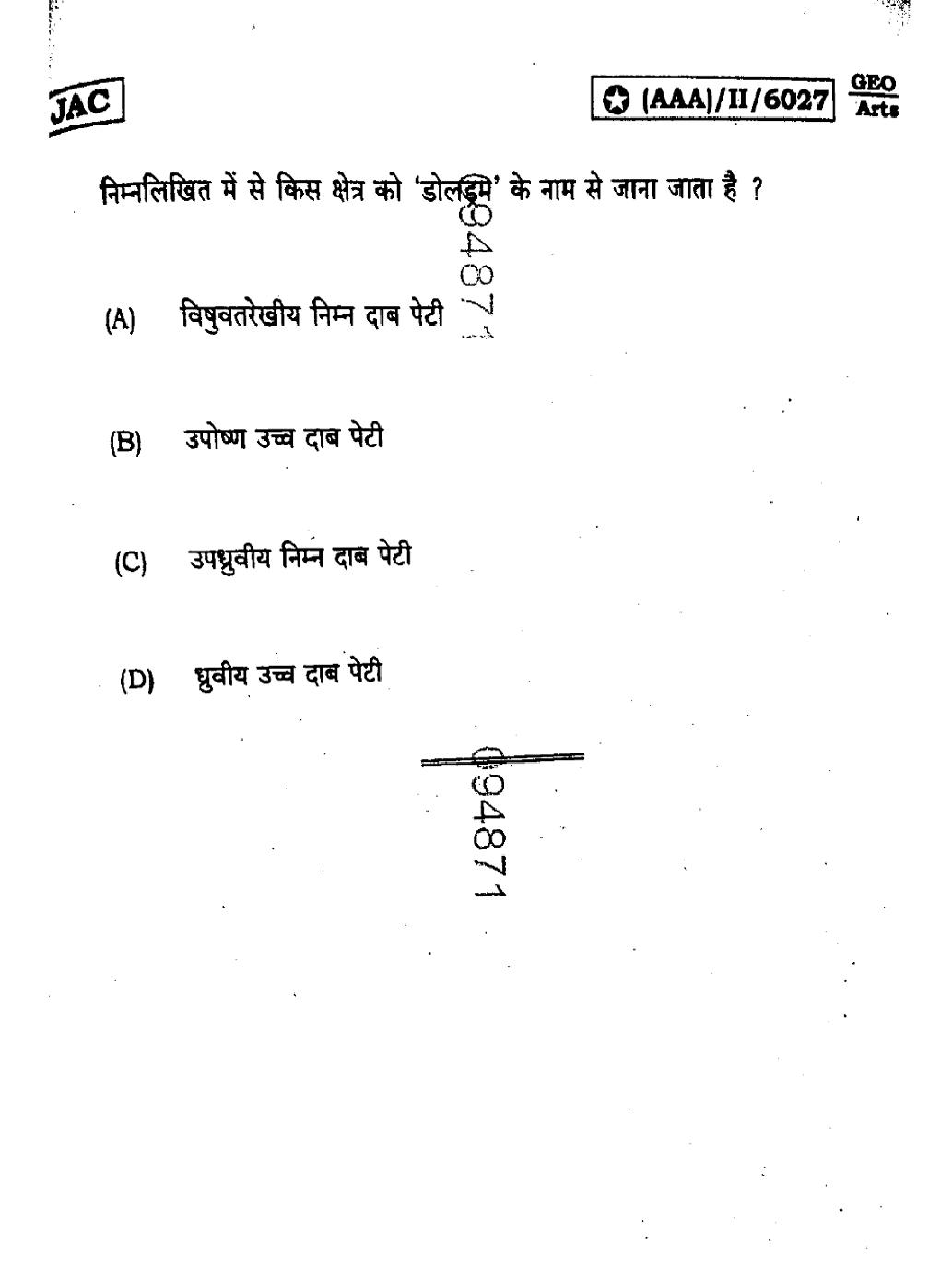 The JAC Board Previous Year Question Paper of Class 11 for Geography is as follows.