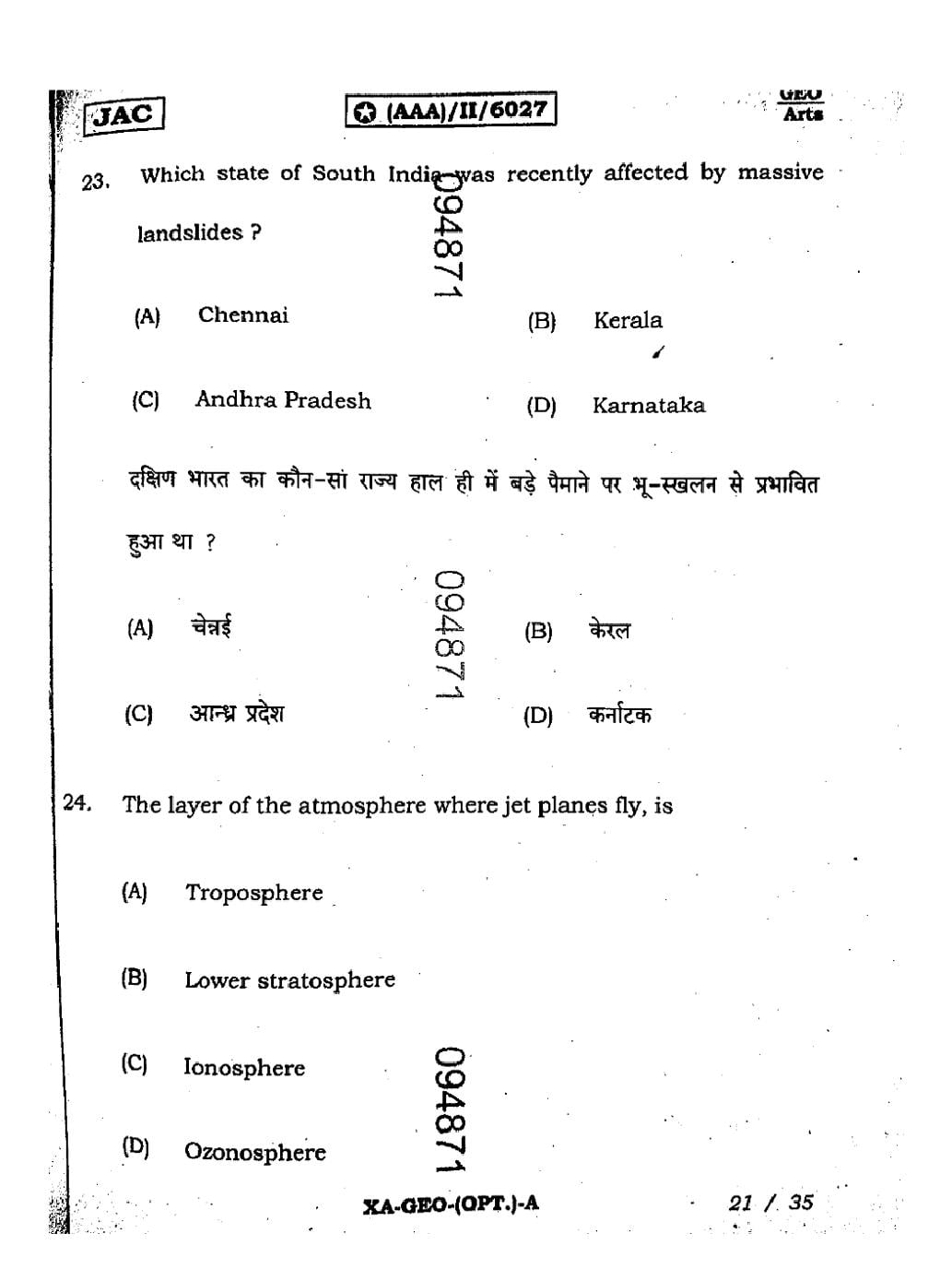 | Geography Sample Papers | JAC Class 11th Model Question Paper |
