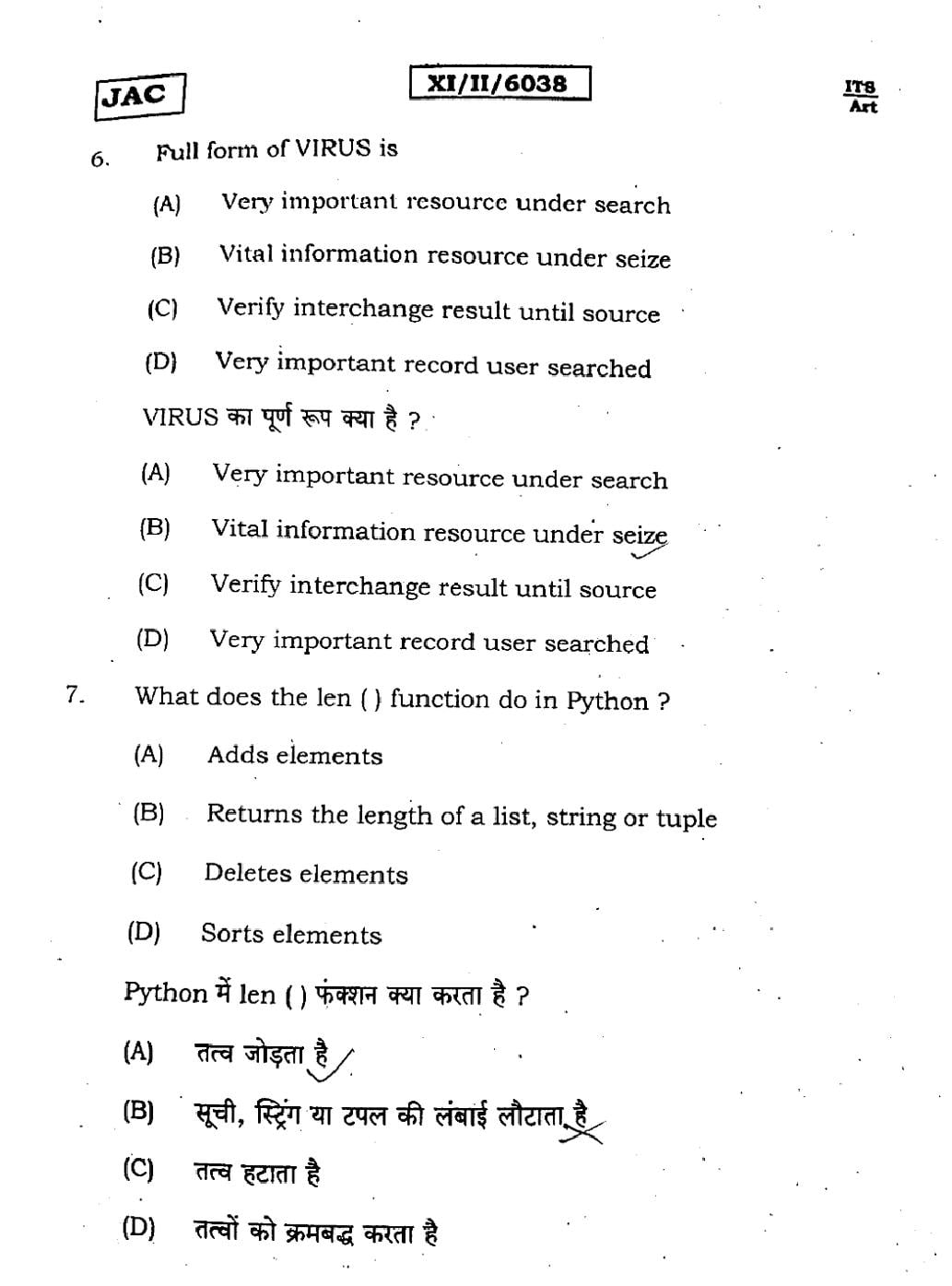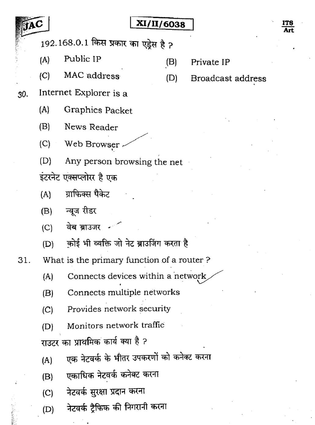 | IT ITES Sample Papers | JAC Class 11th Model Question Paper |