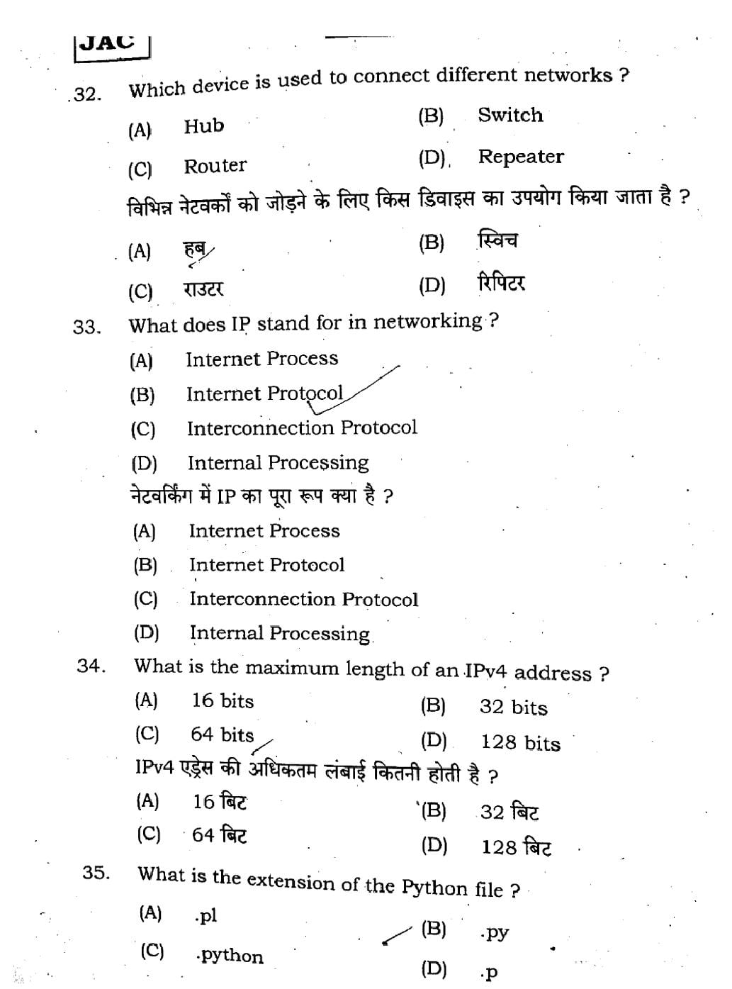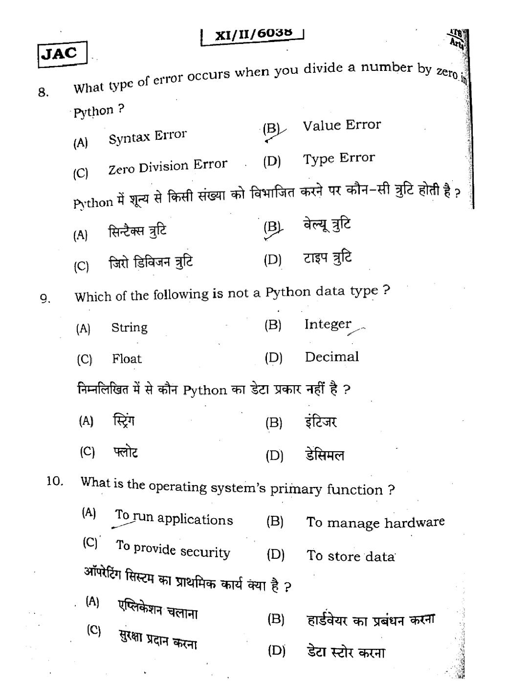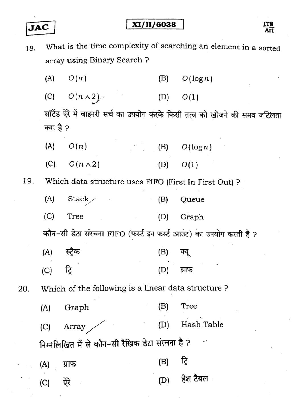 JAC Previous Year Question Papers