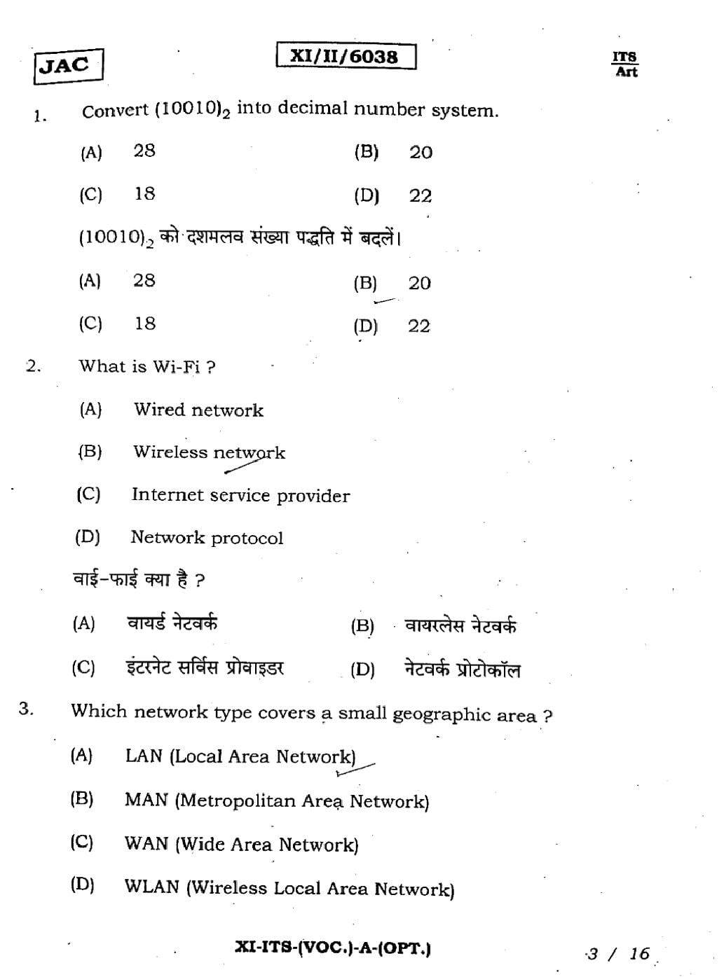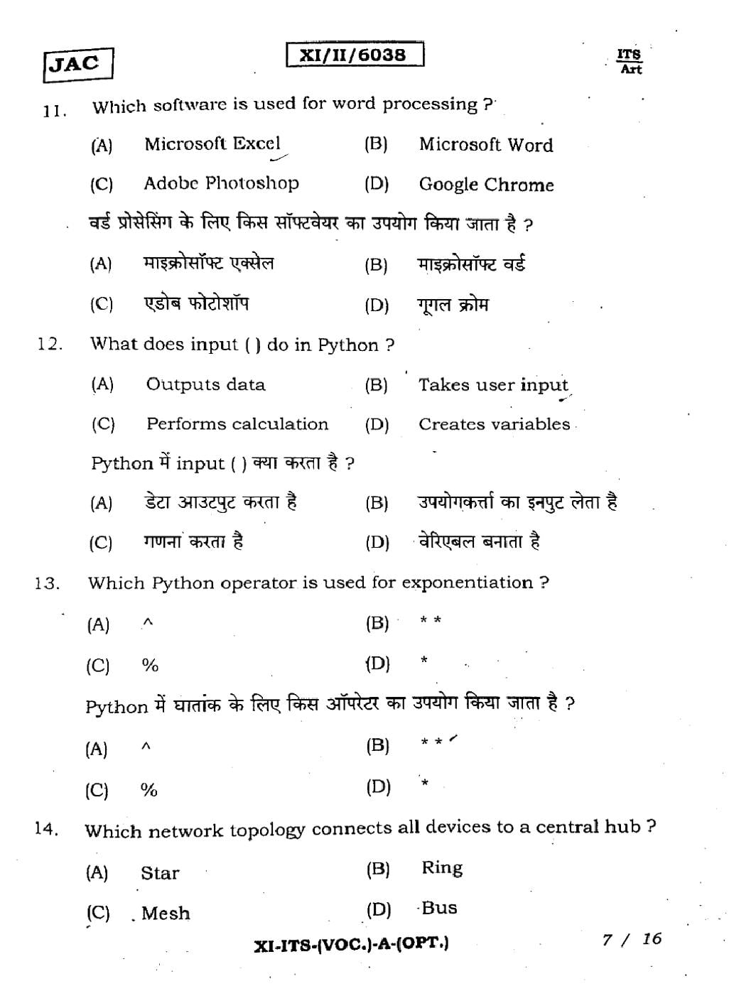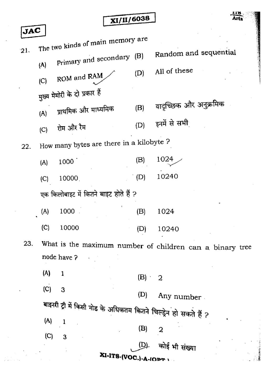 JAC Board Class 11 IT ITES Previous Year Question Paper