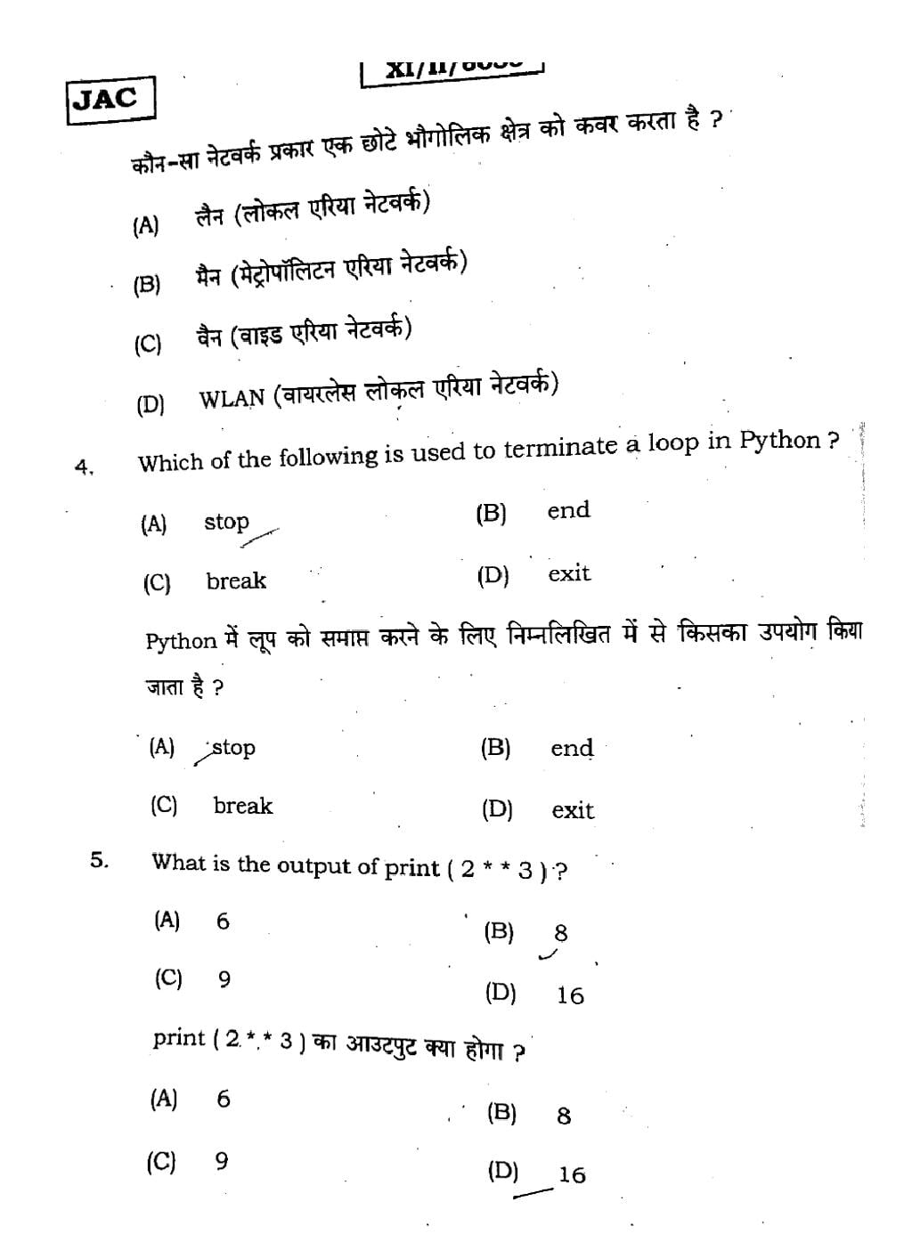- JAC Class 11 Previous Year Question Papers