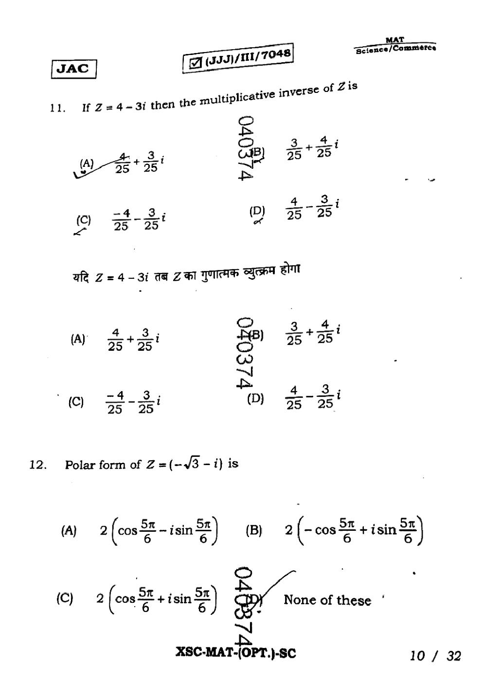 JAC Board Class 11 Question Paper 2025 Mathematics View Download