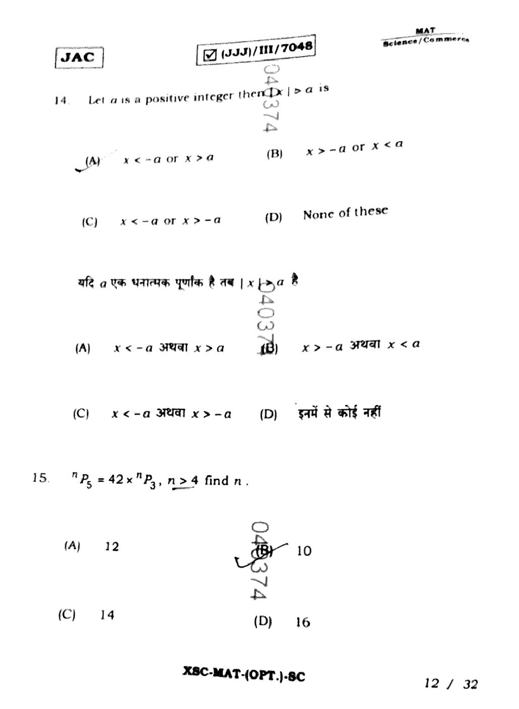JAC Board Class 11 Maths Previous Year Question Paper PDF