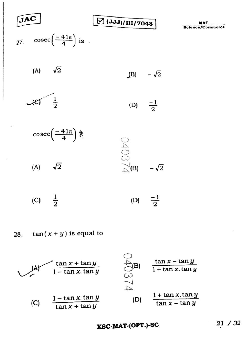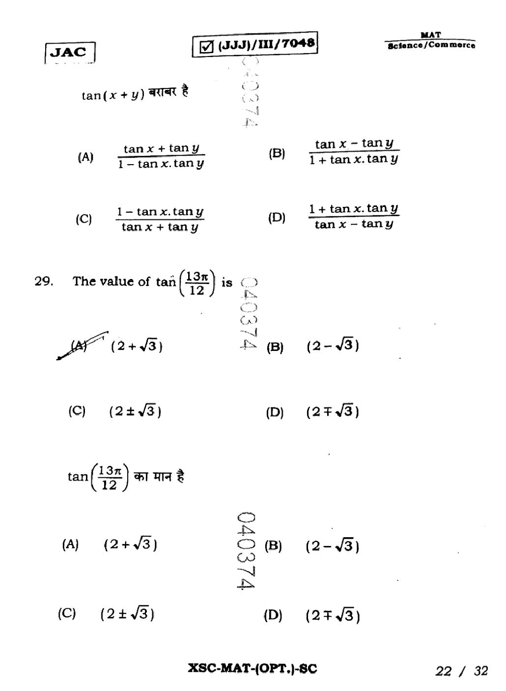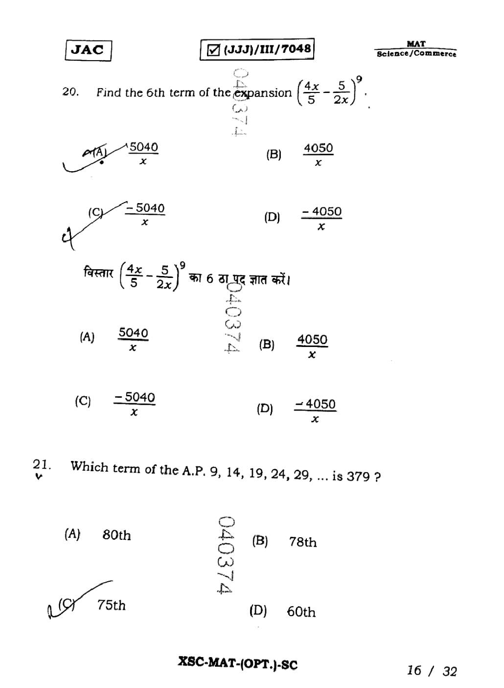 | Maths Sample Papers | JAC Class 11th Model Question Paper |