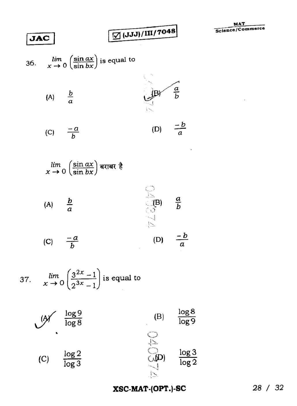 The JAC Board Previous Year Question Paper of Class 11 for Maths is as follows.