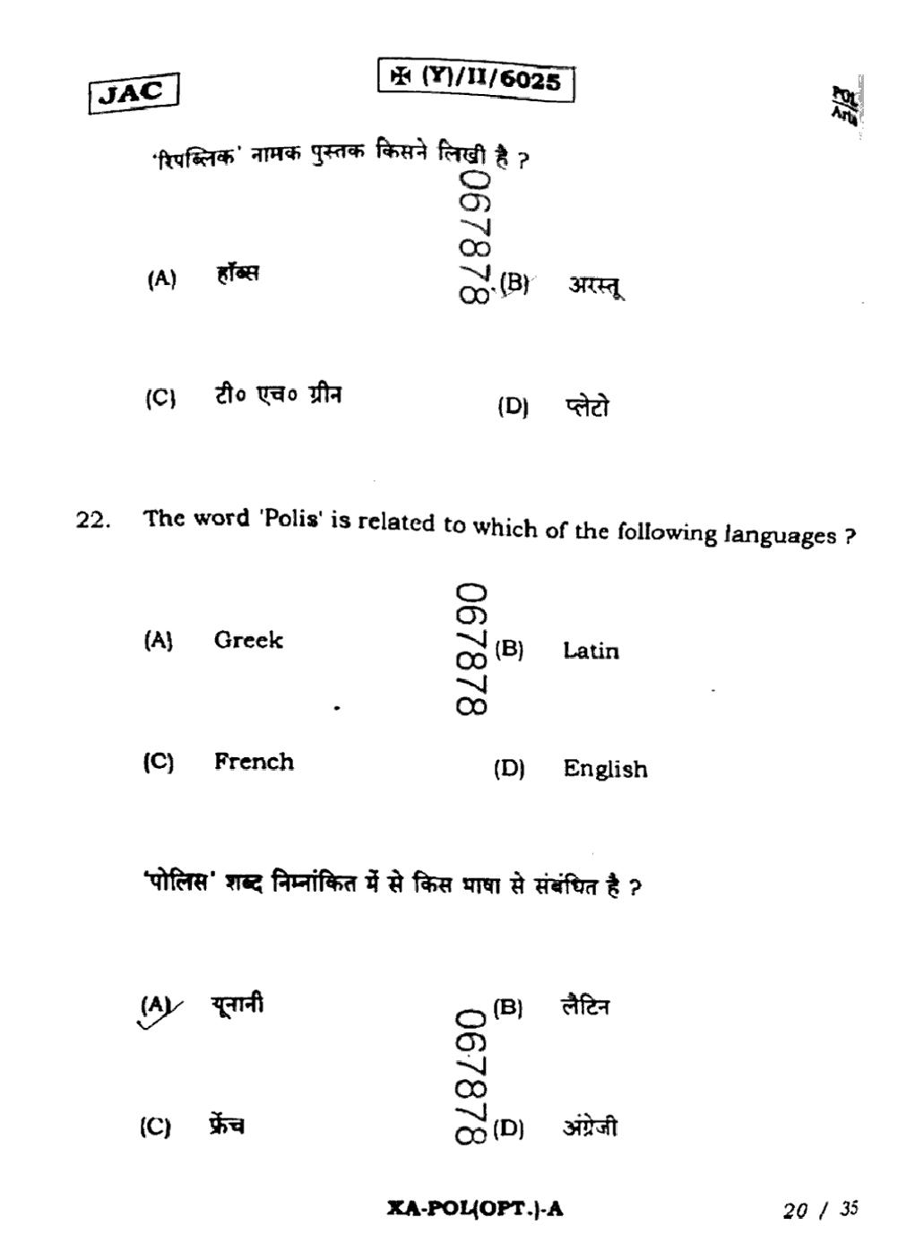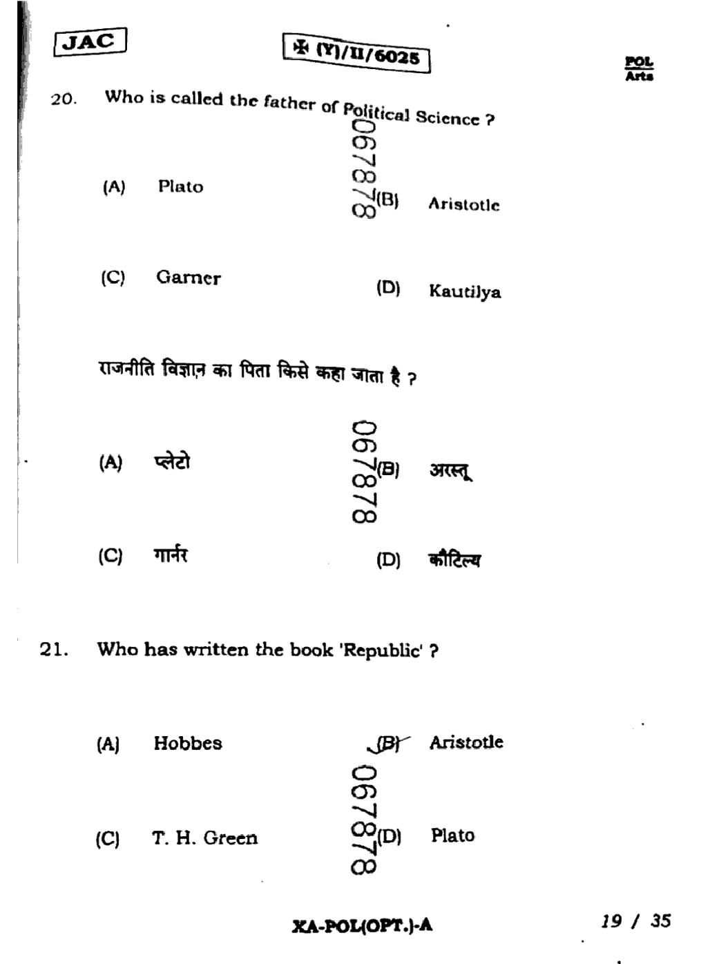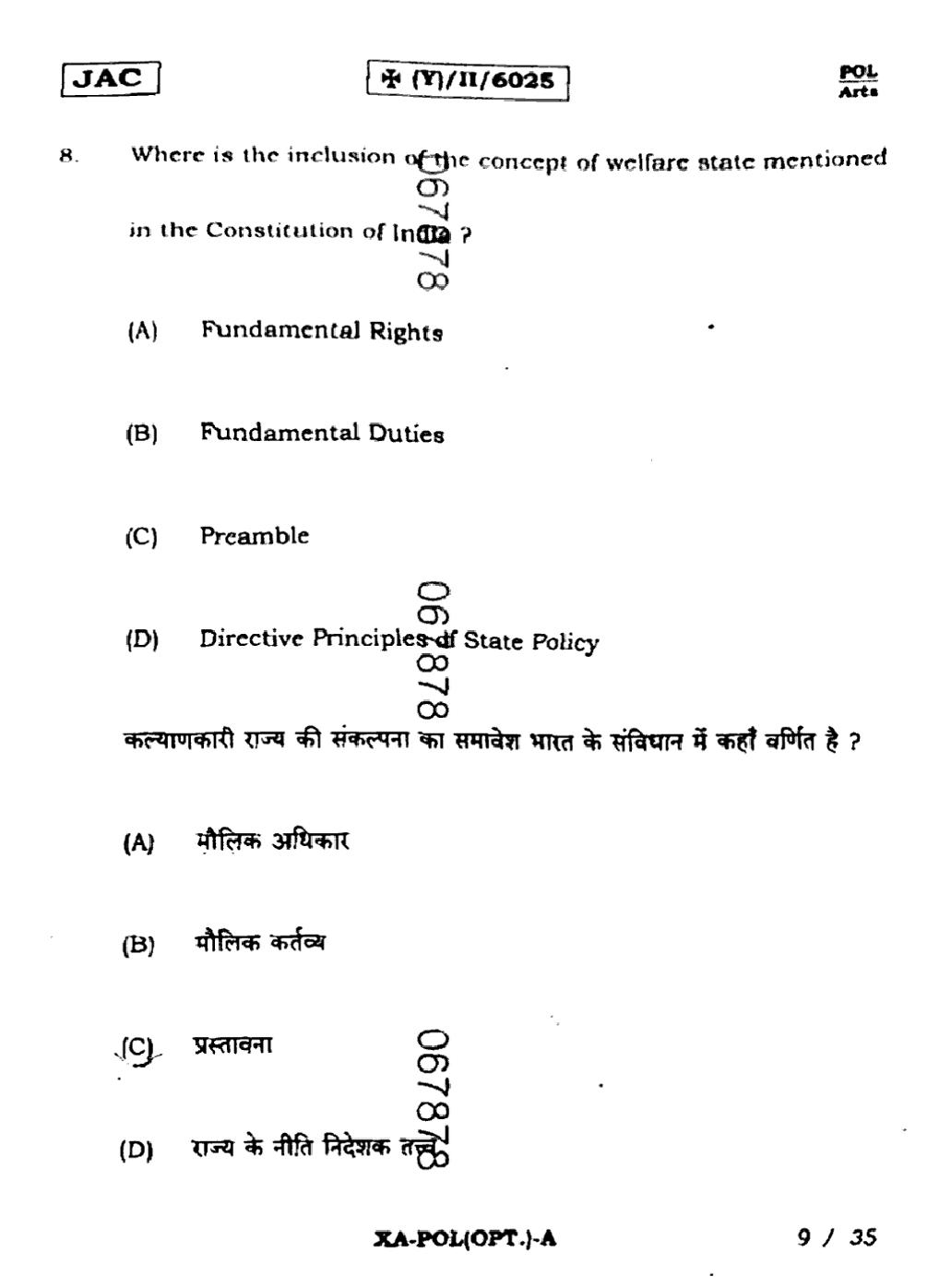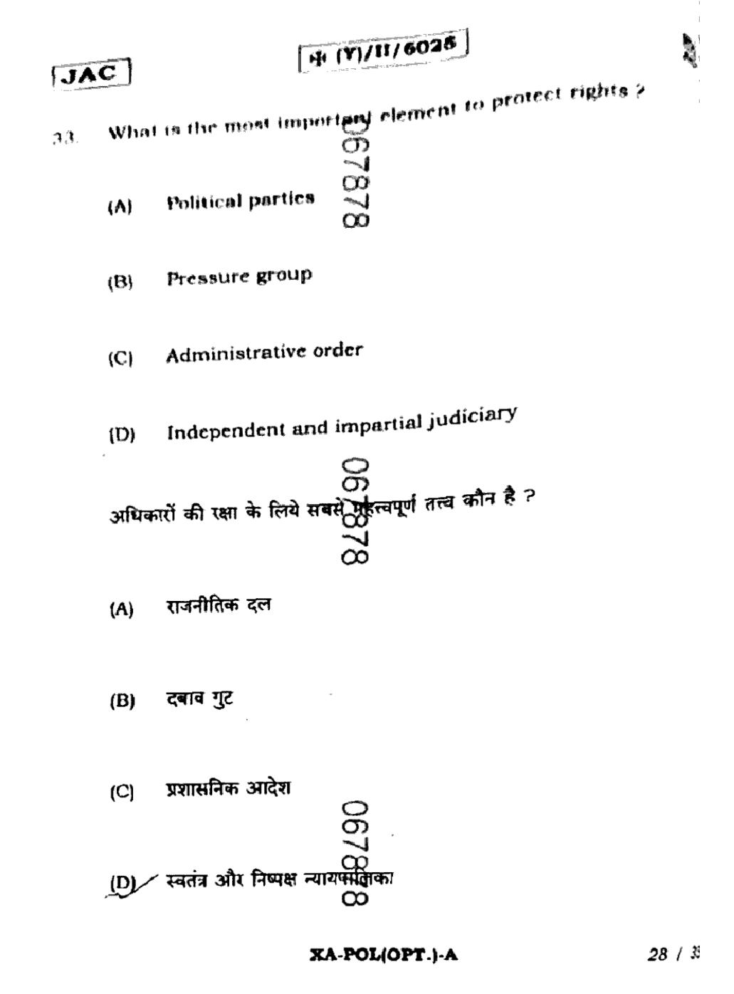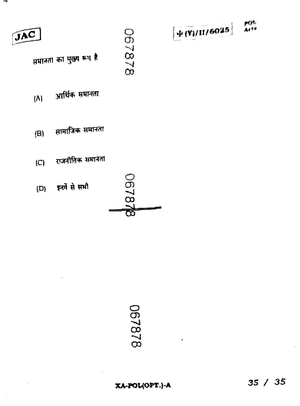 JAC Board Class 11 Political Science Previous Year Question Paper