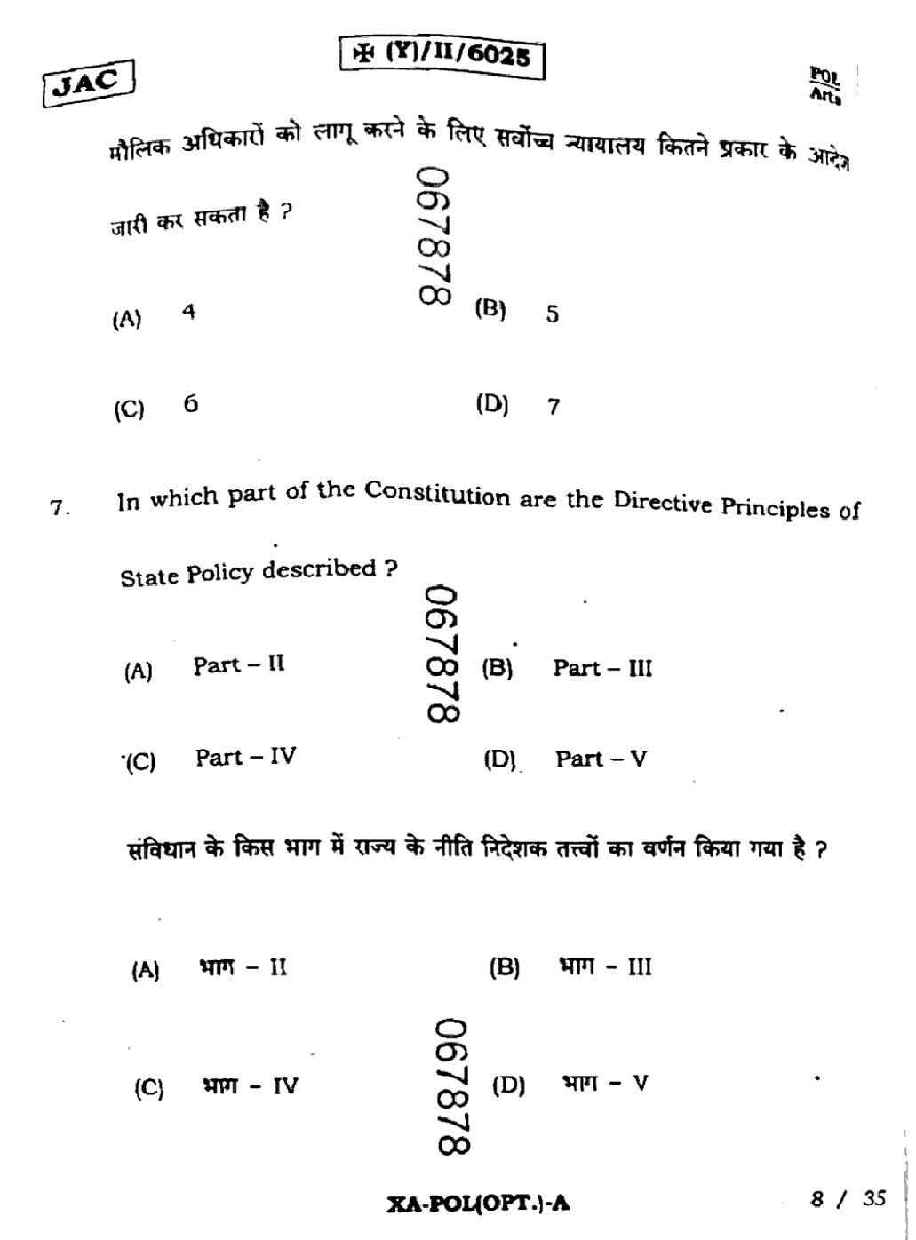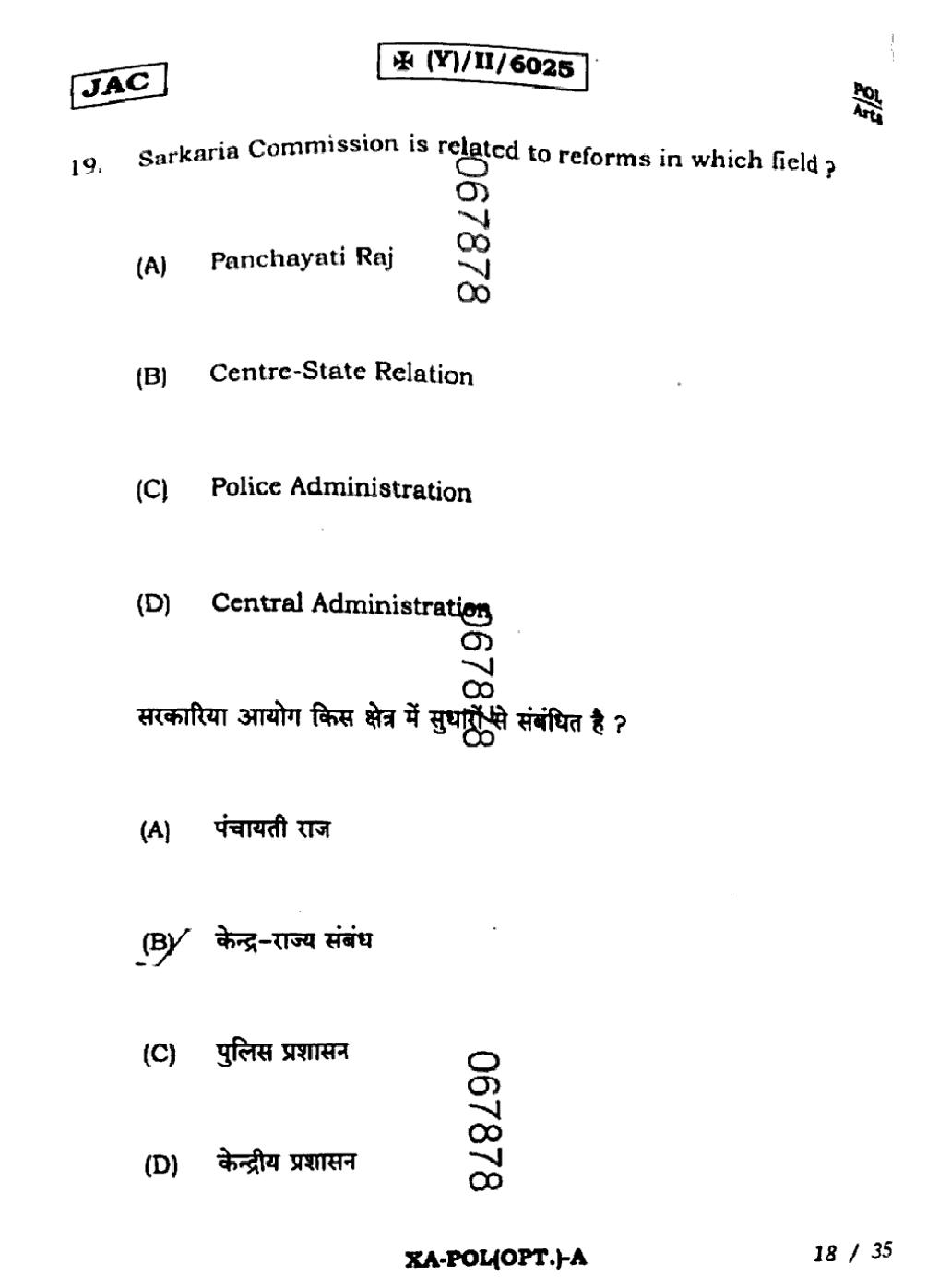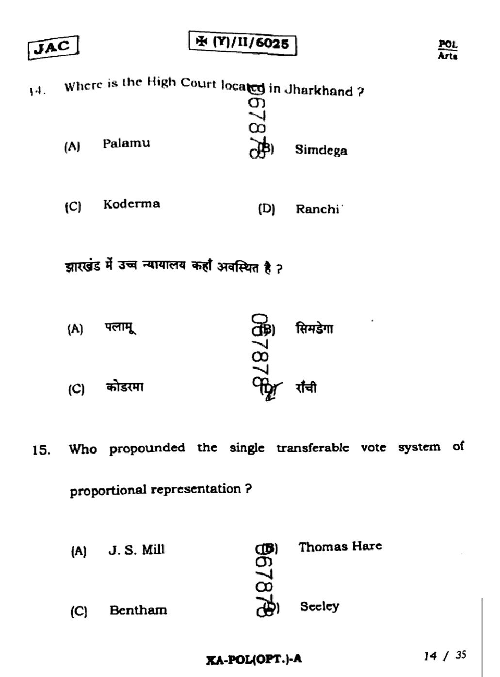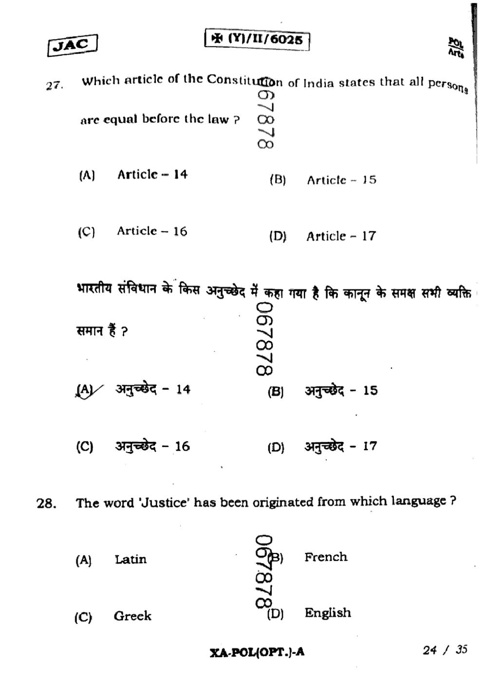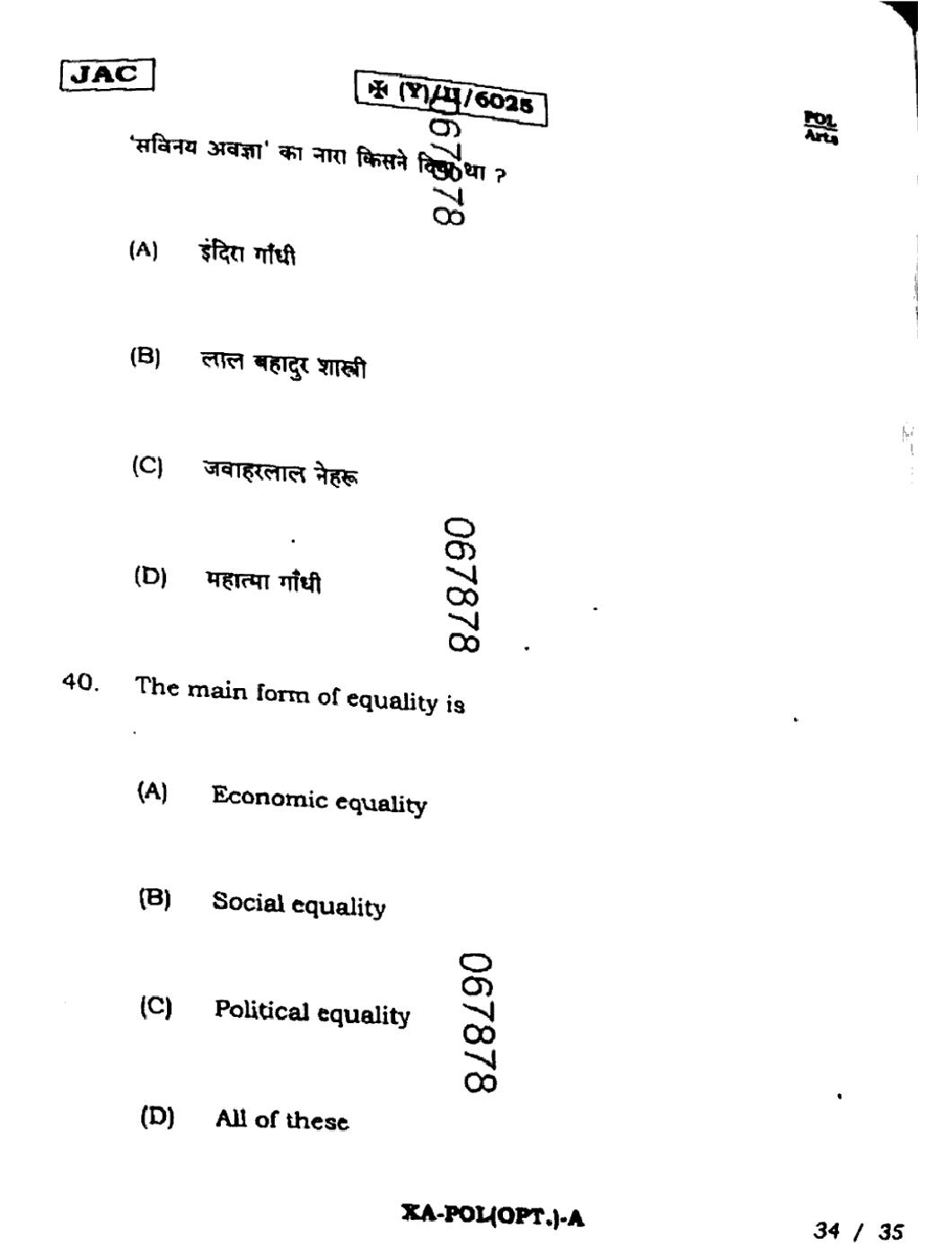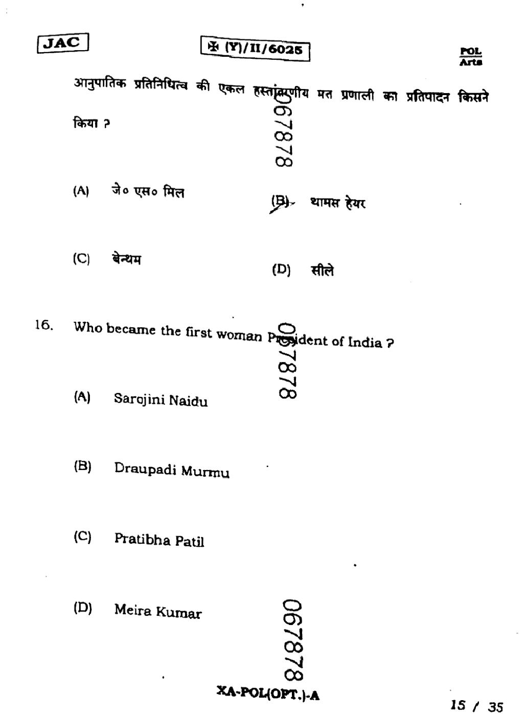JAC Board Class 11 Political Science Previous Year Question Paper