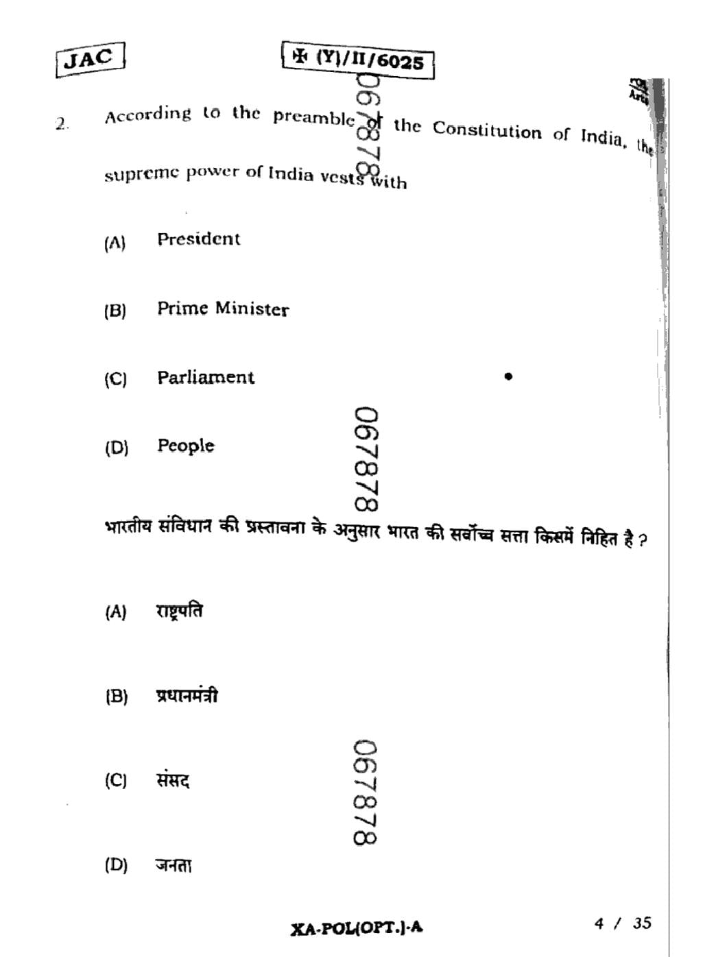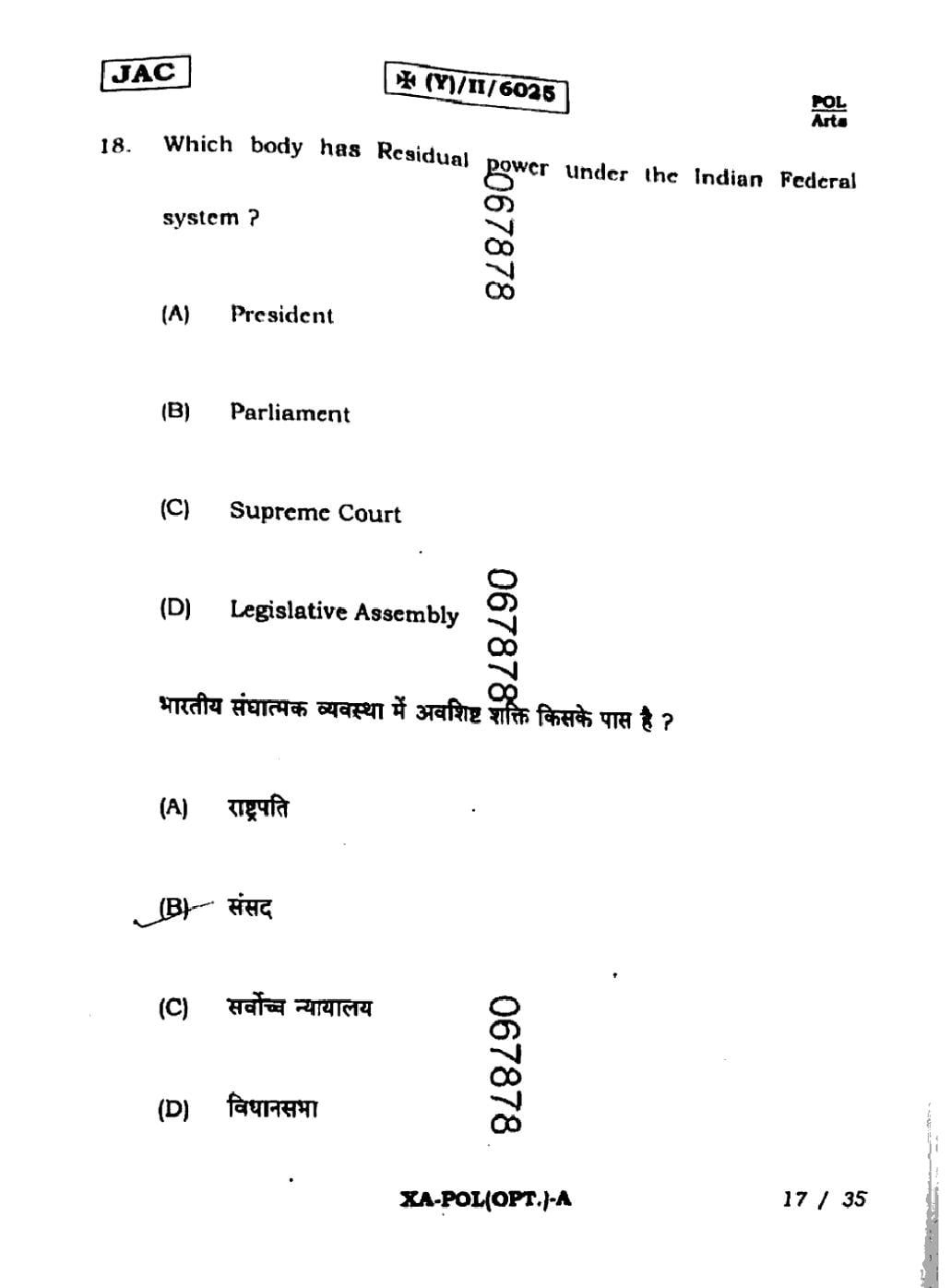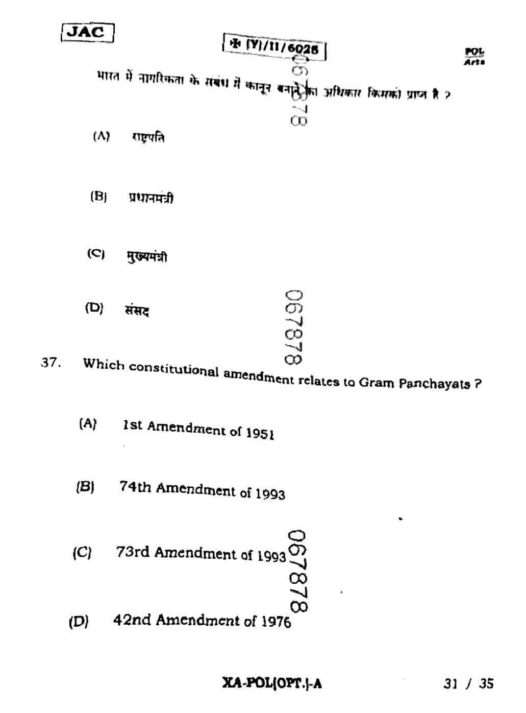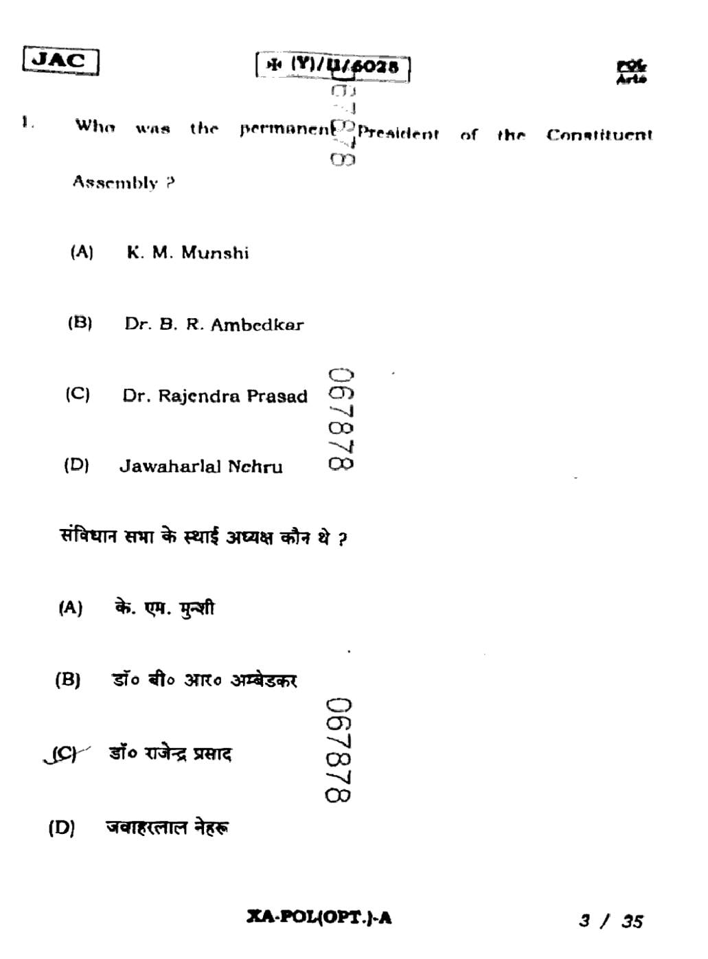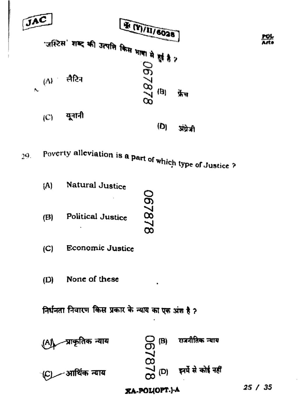 JAC Board Class 11 Political Science Previous Year Question Paper