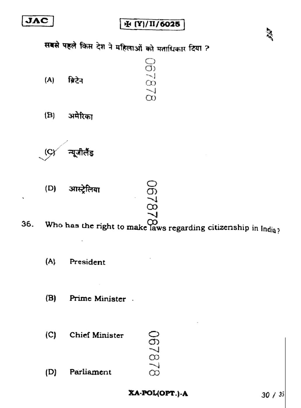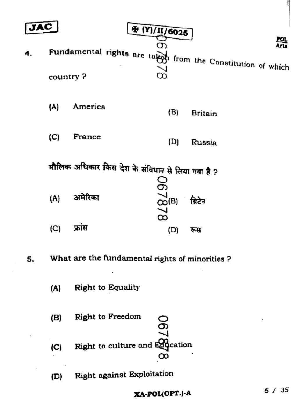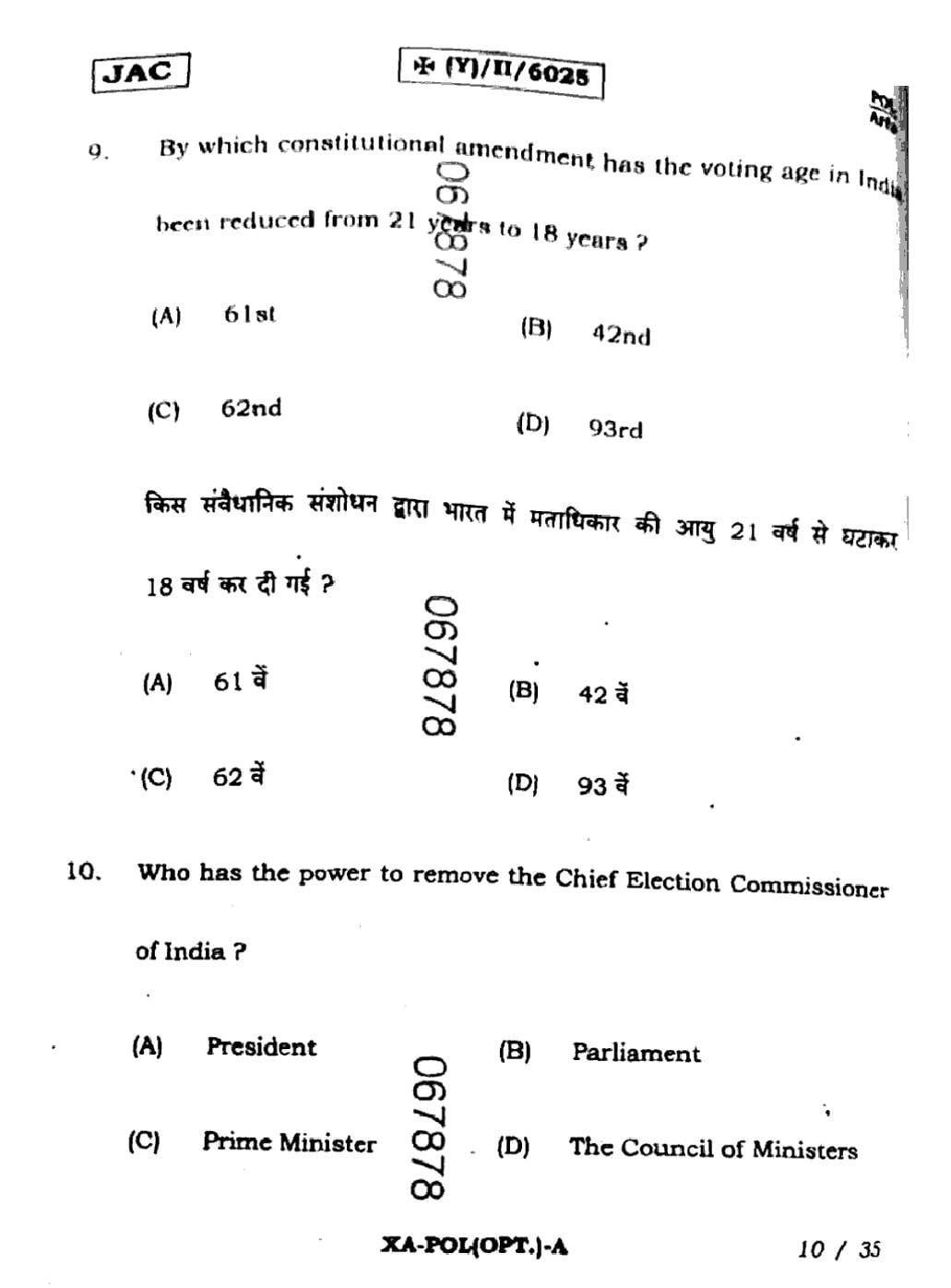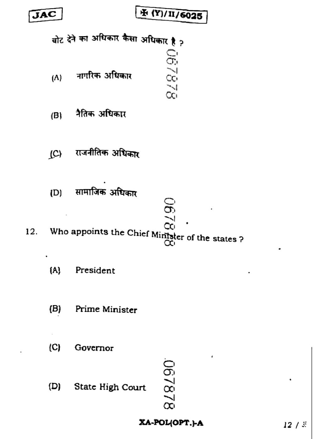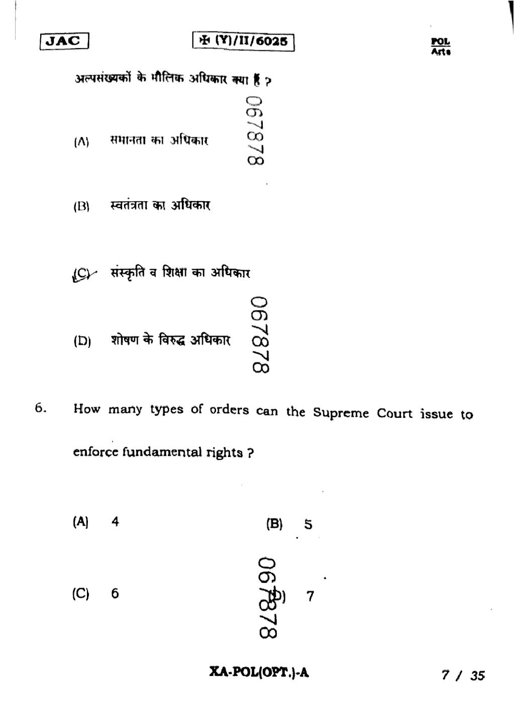 JAC Board Class 11 Political Science Previous Year Question Paper