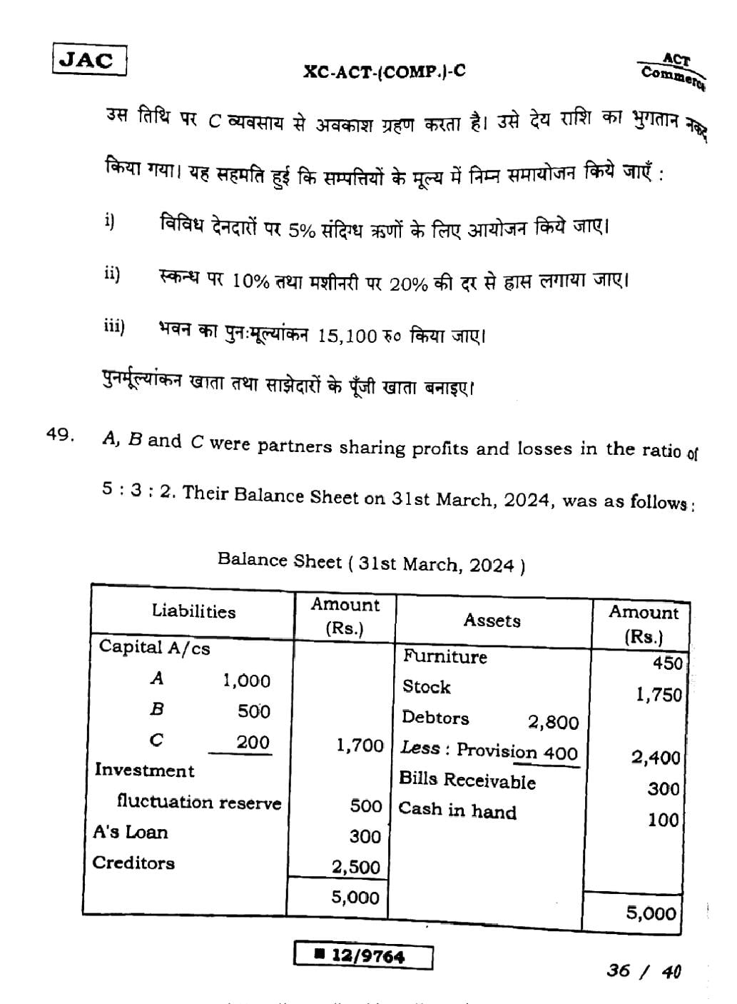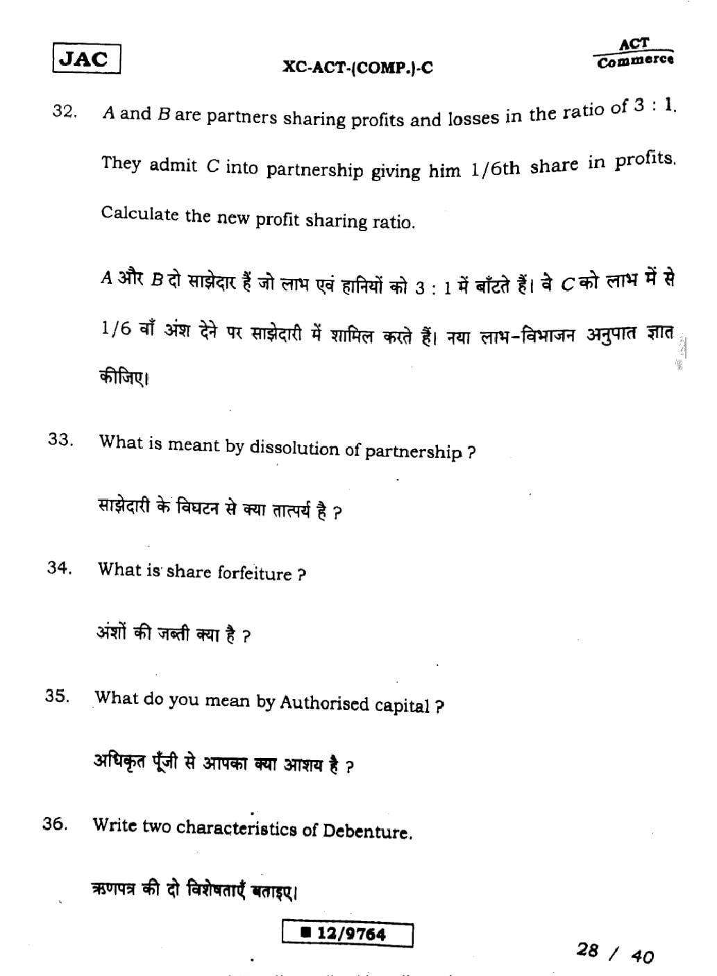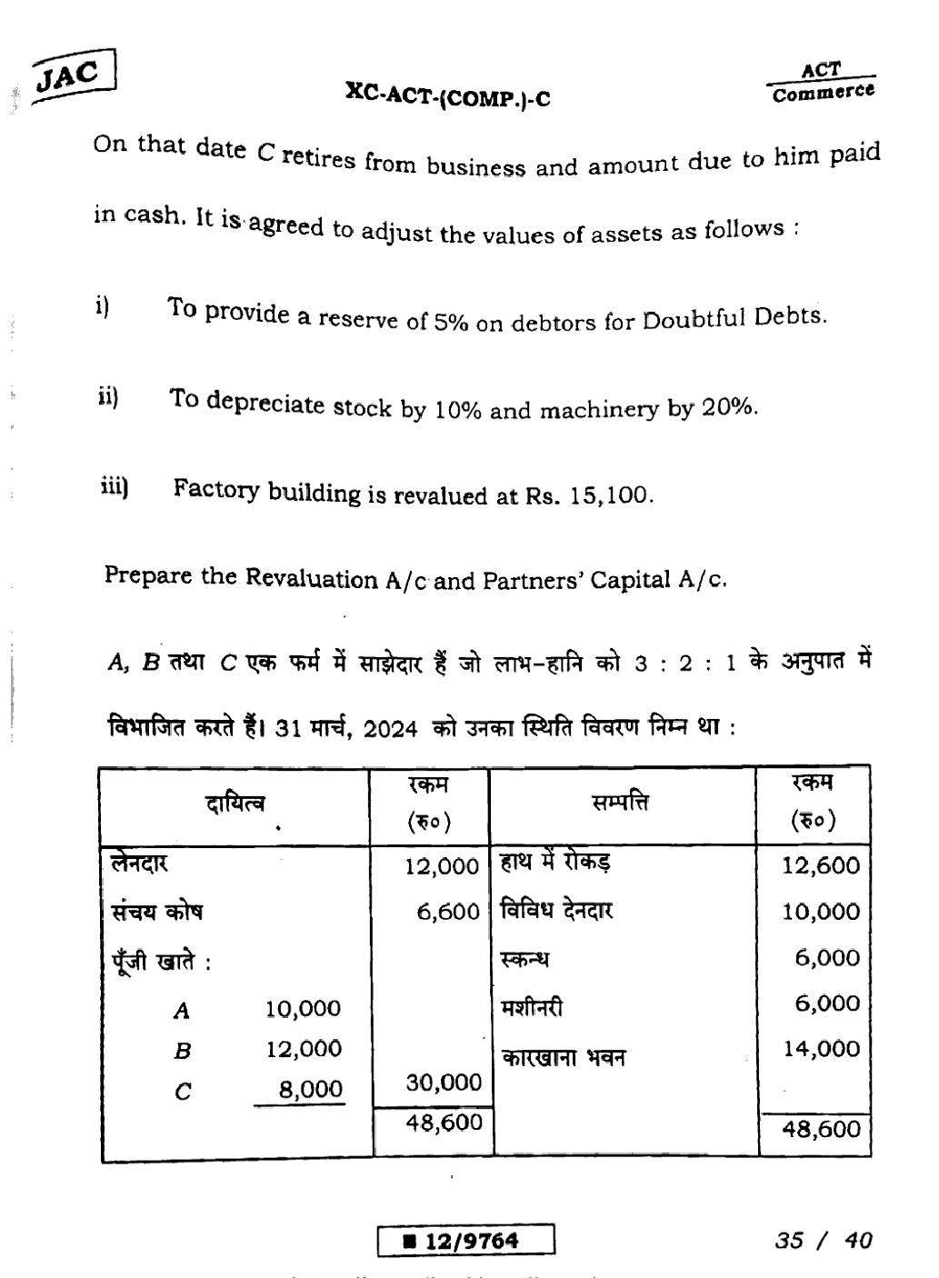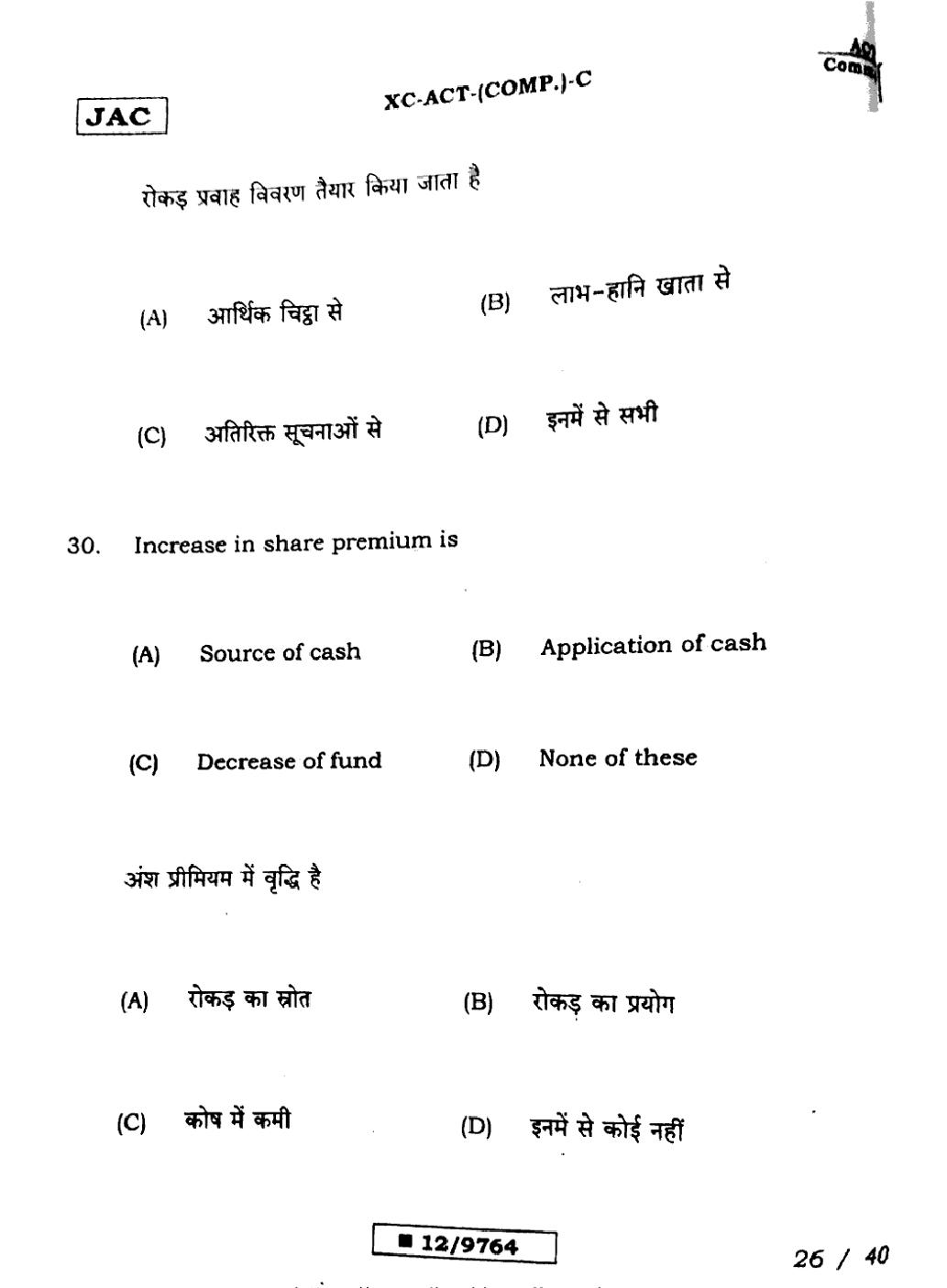 JAC Board Class 12 Accountancy Previous Year Question Paper