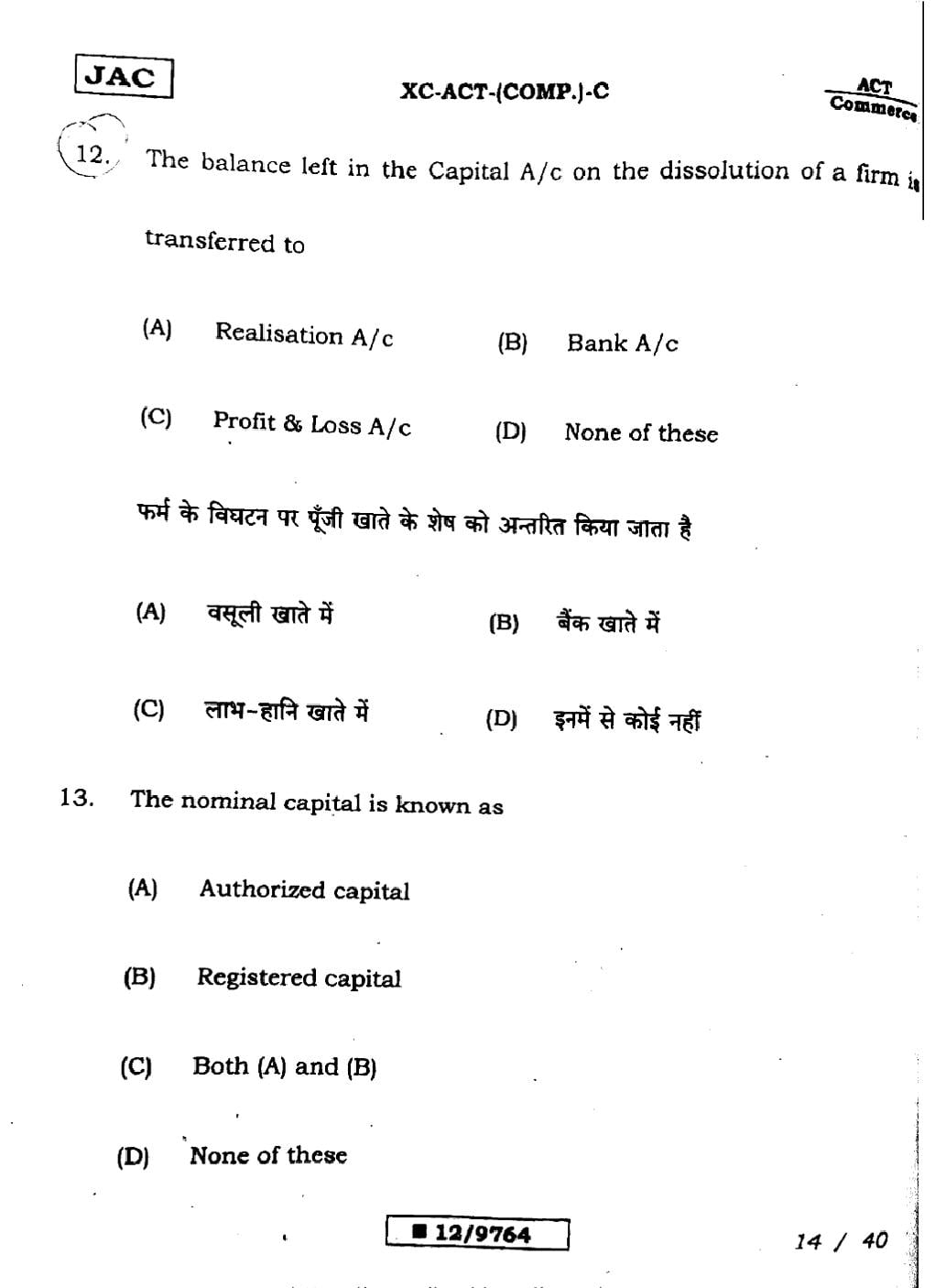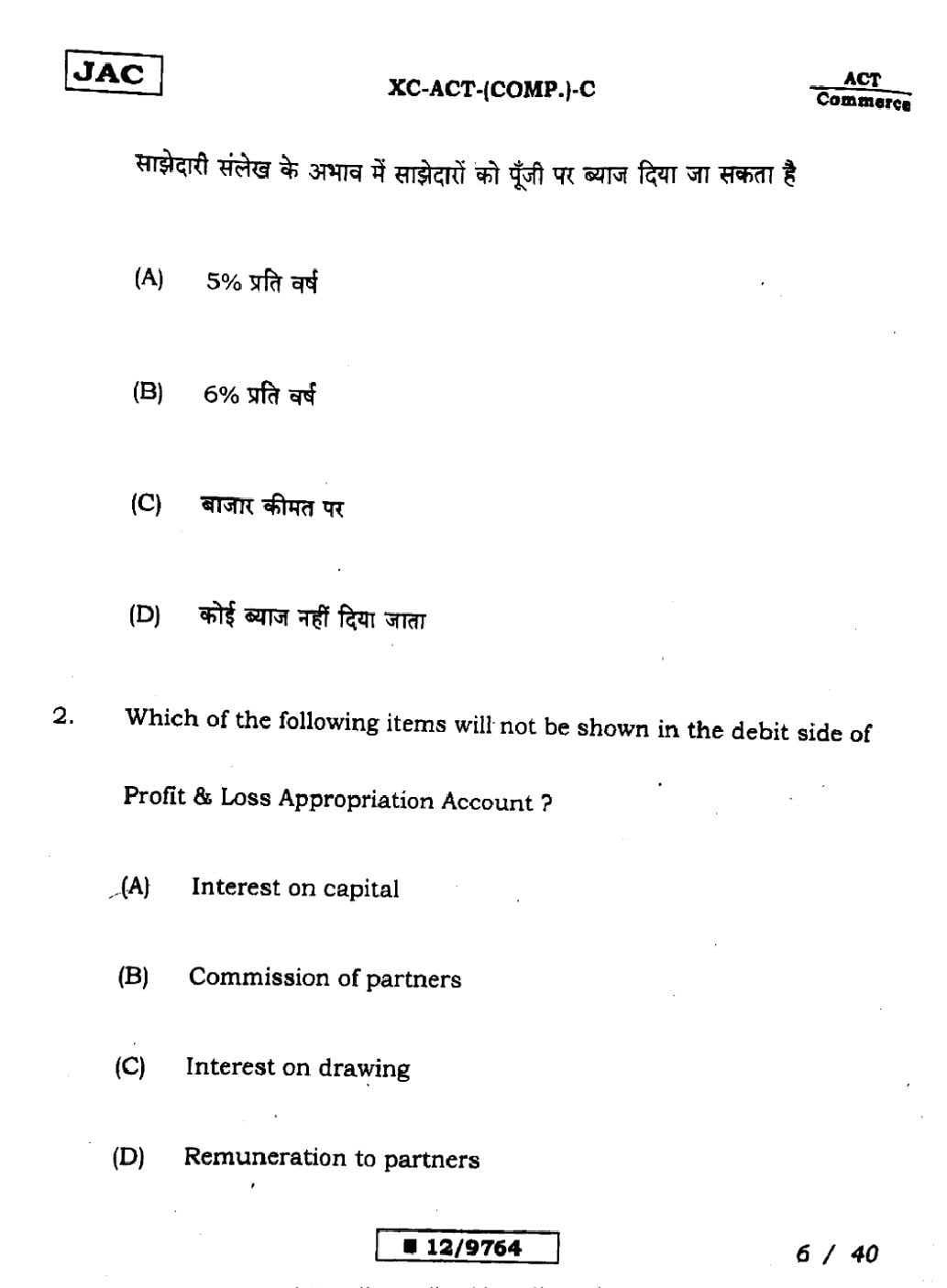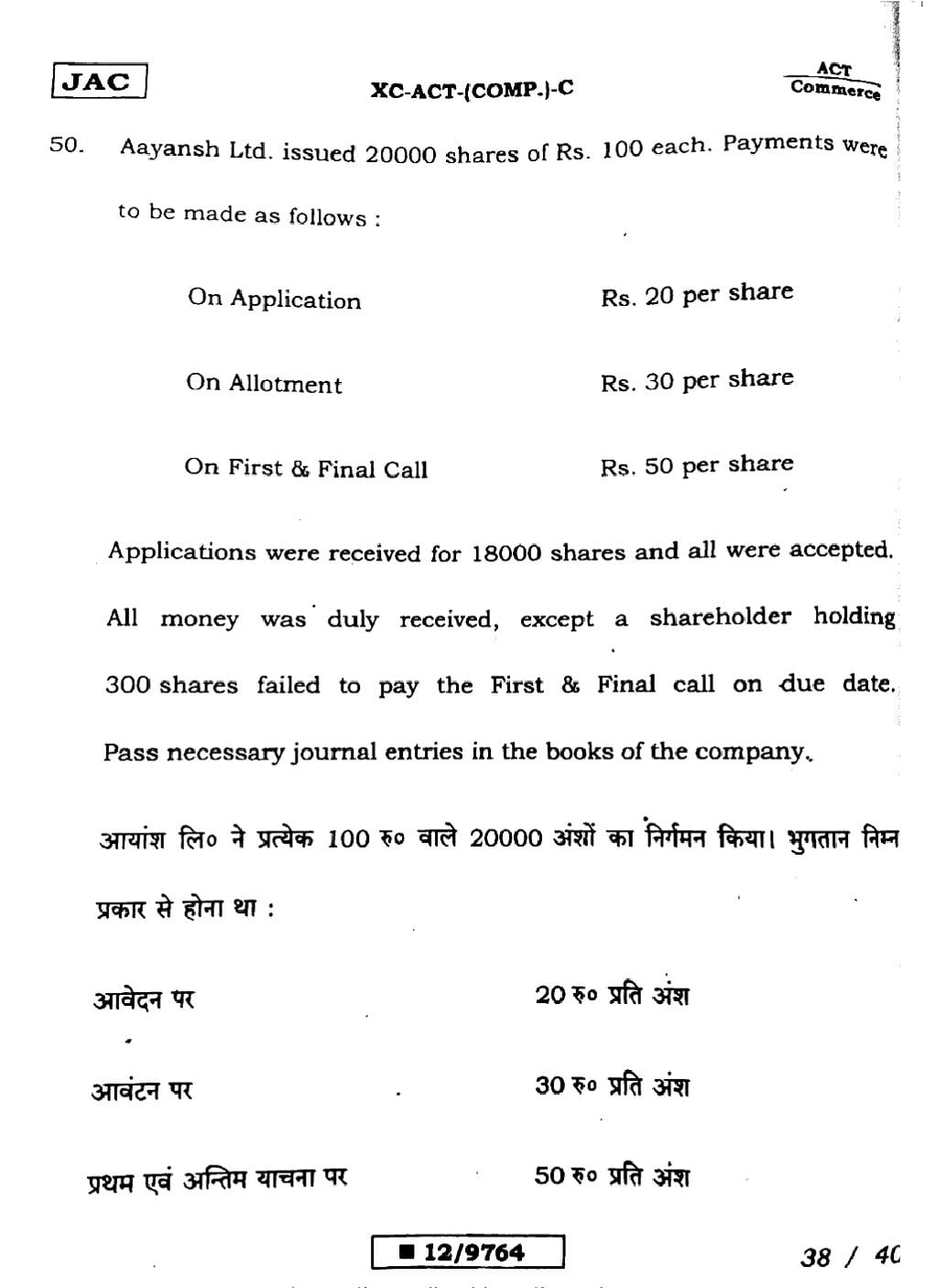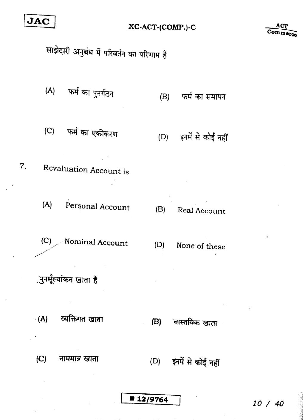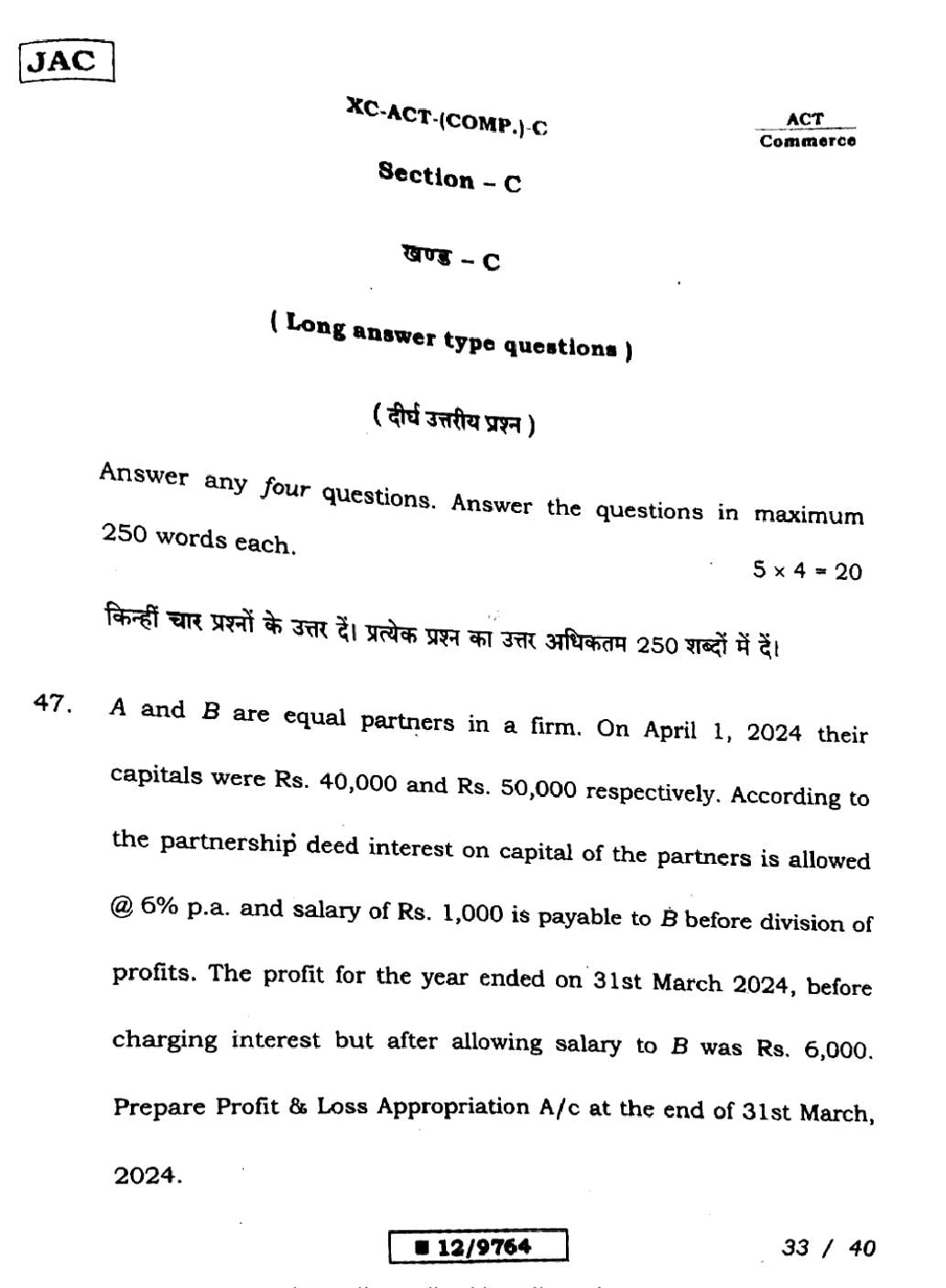JAC Board Class 12 Accountancy Previous Year Question Paper