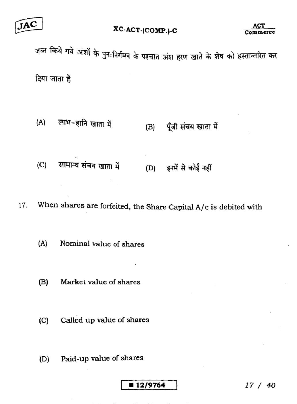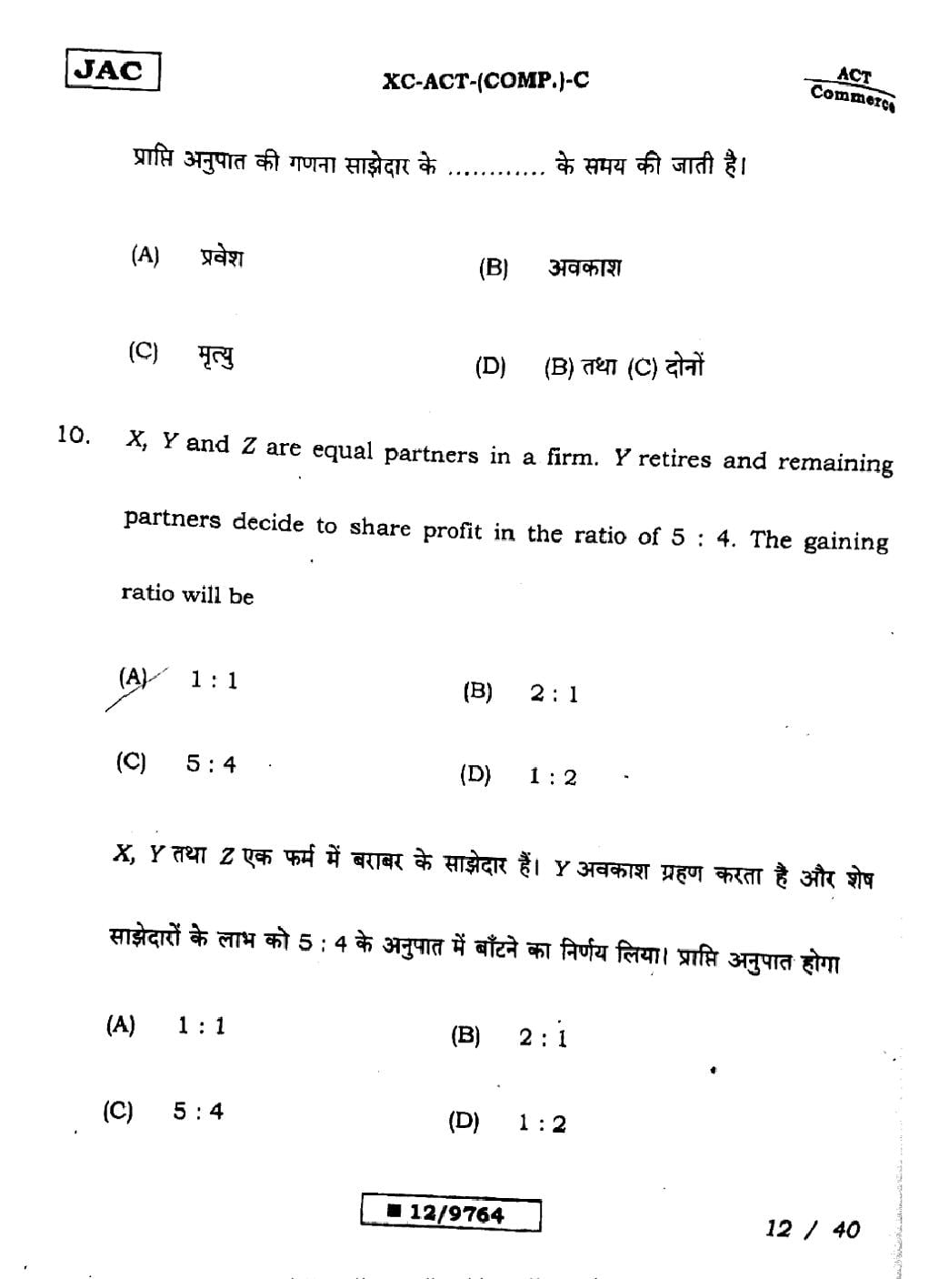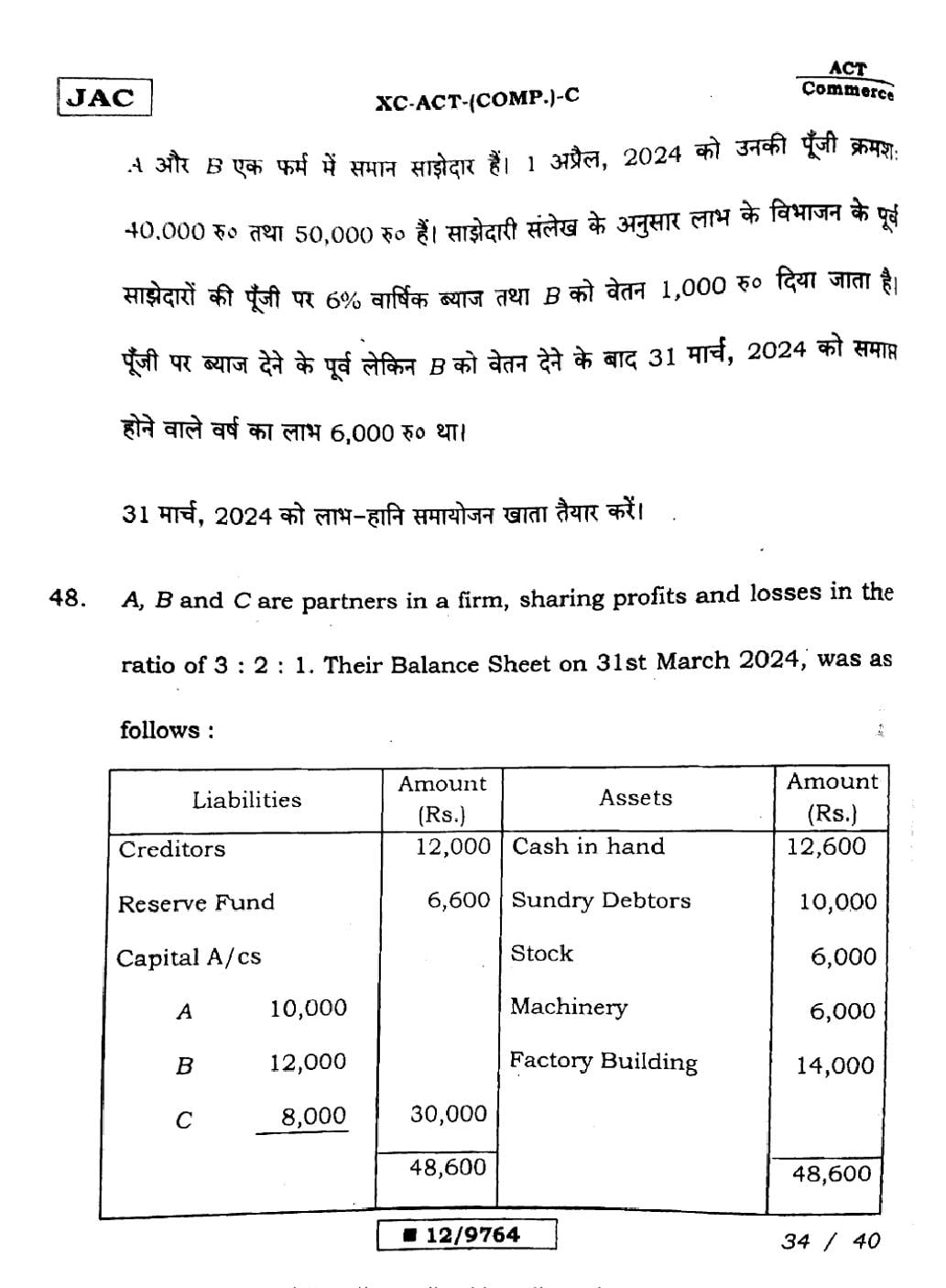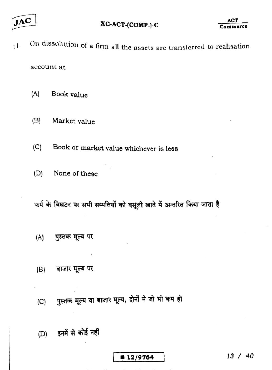 JAC Board Class 12 Accountancy Previous Year Question Paper