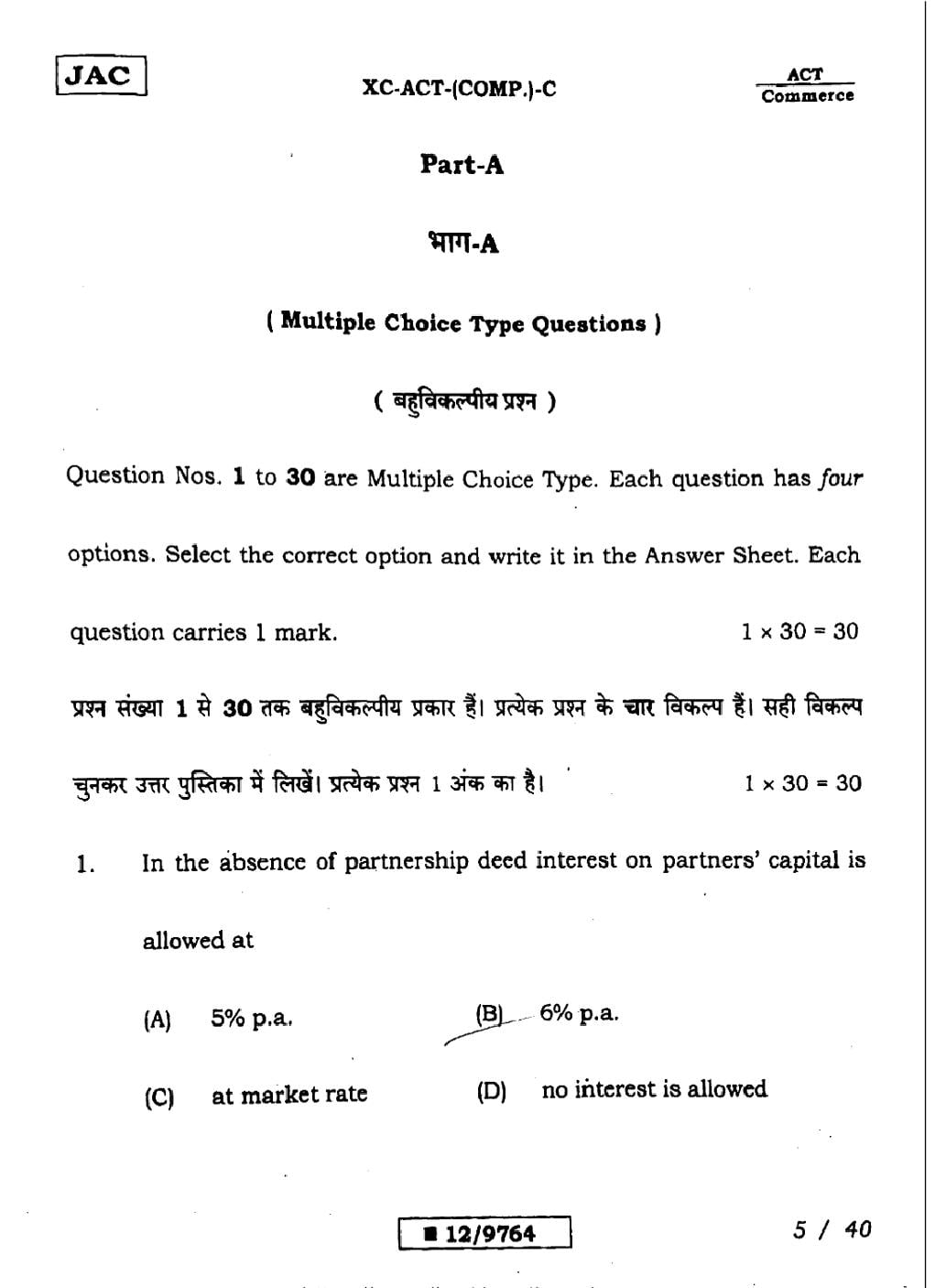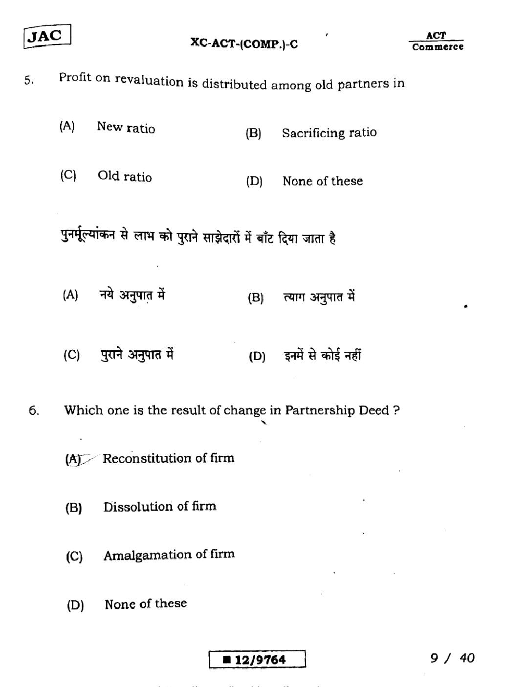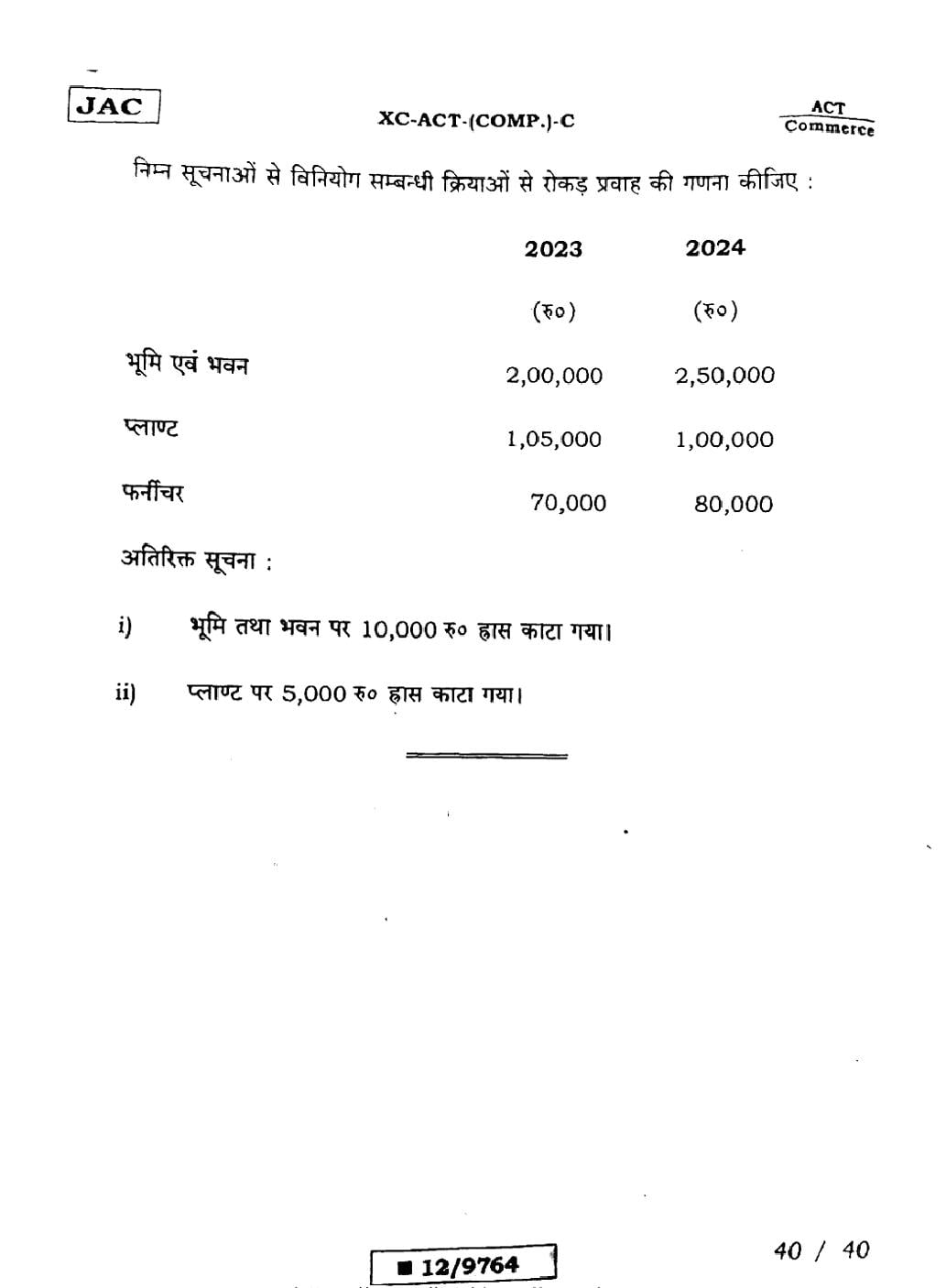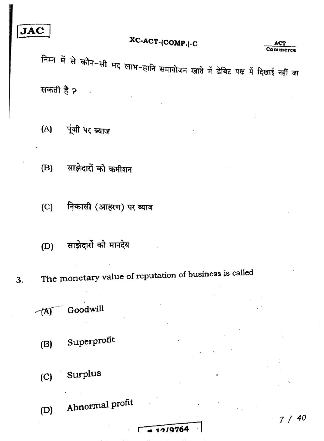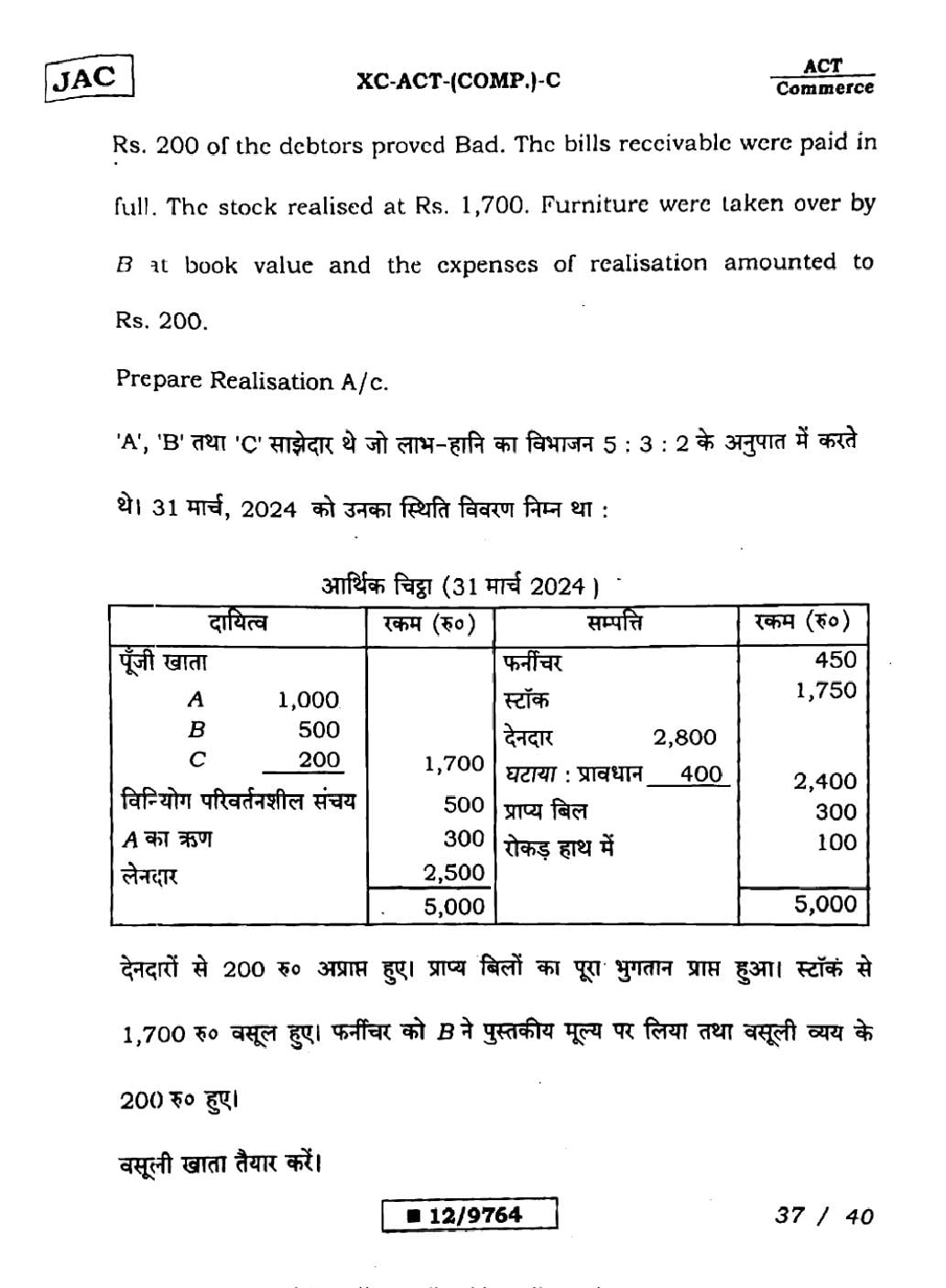 JAC Board Class 12 Accountancy Previous Year Question Paper