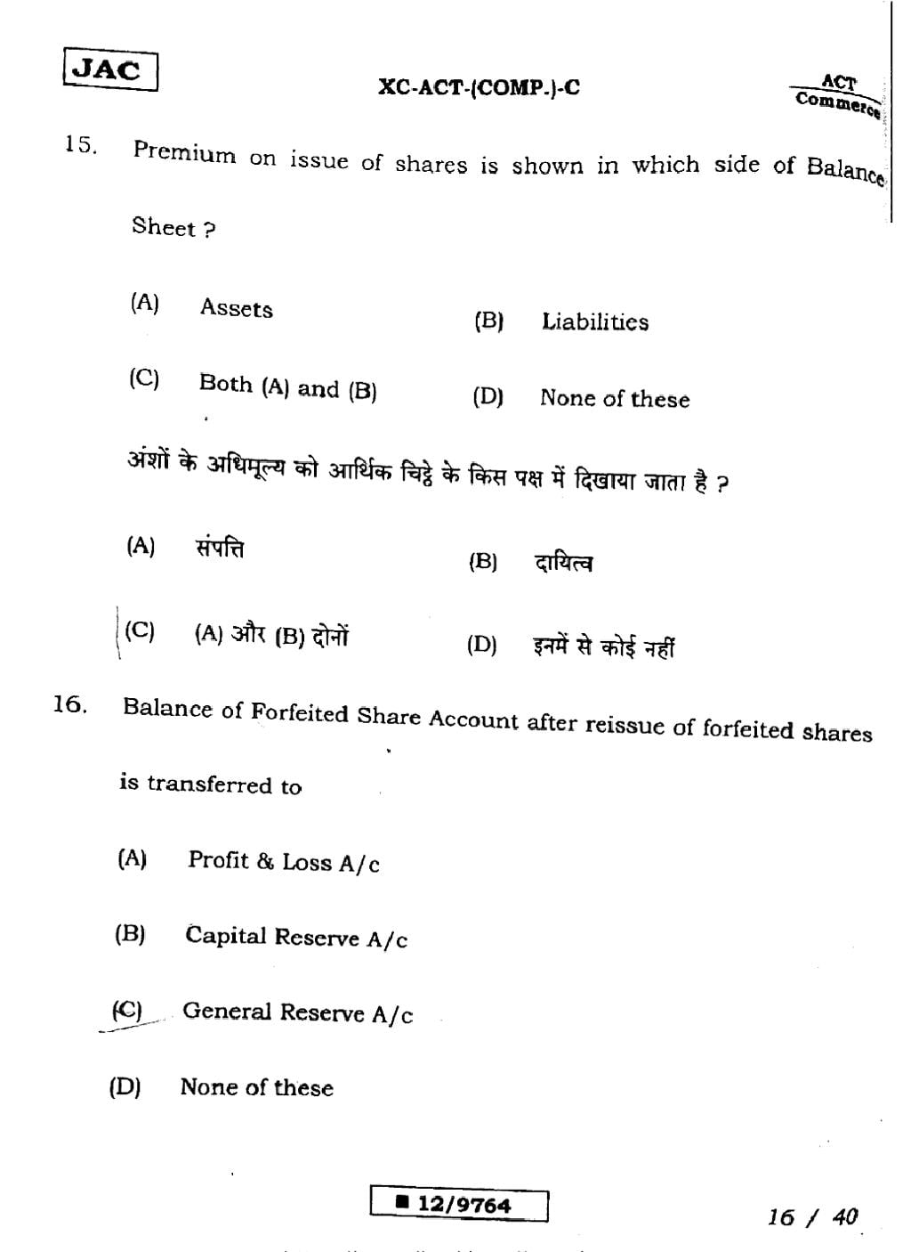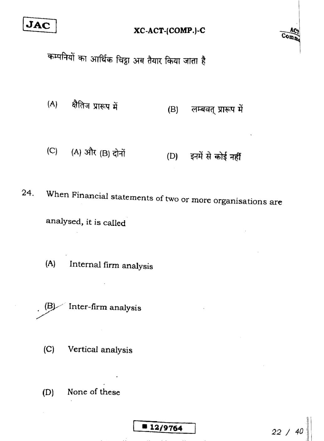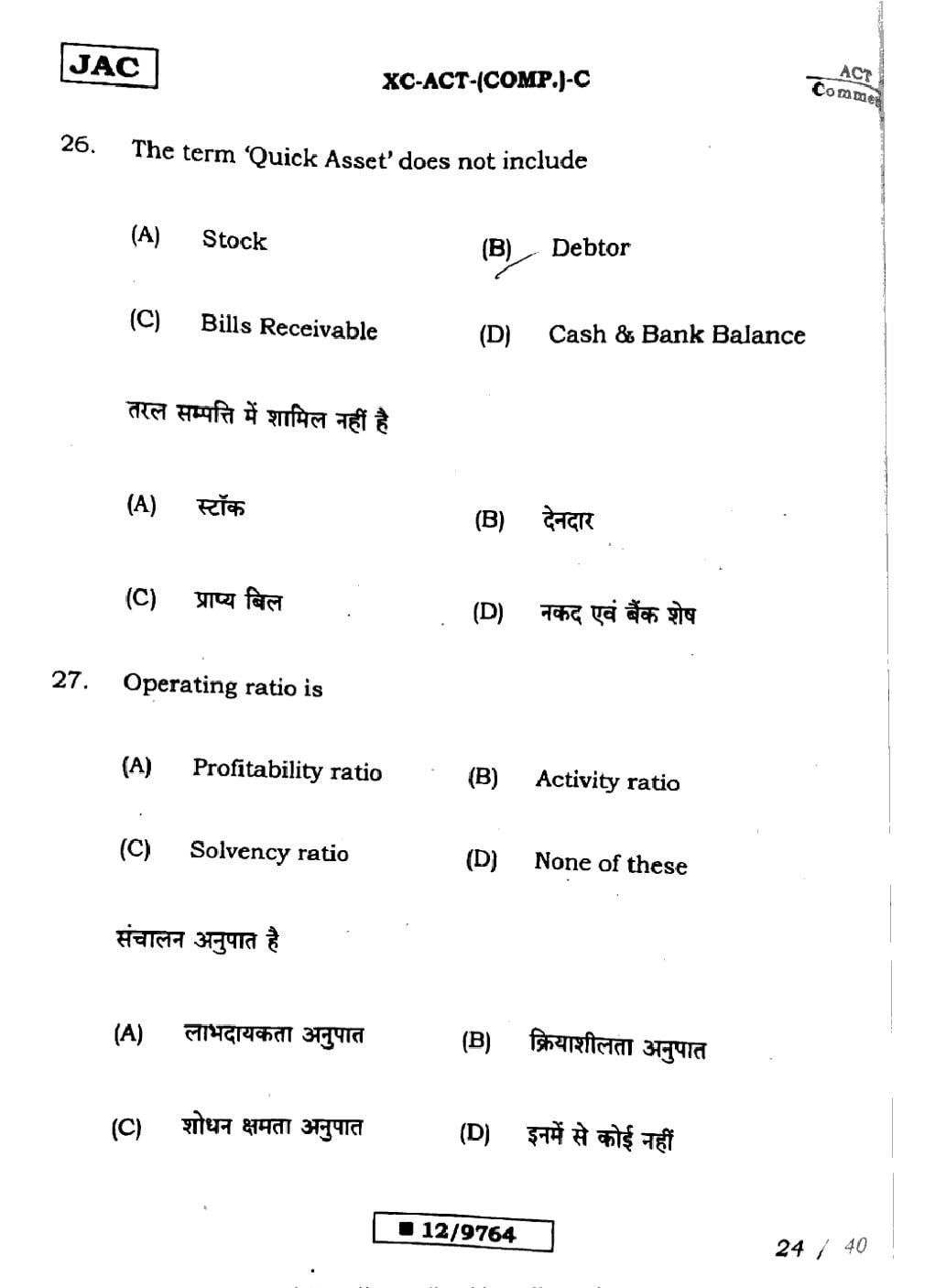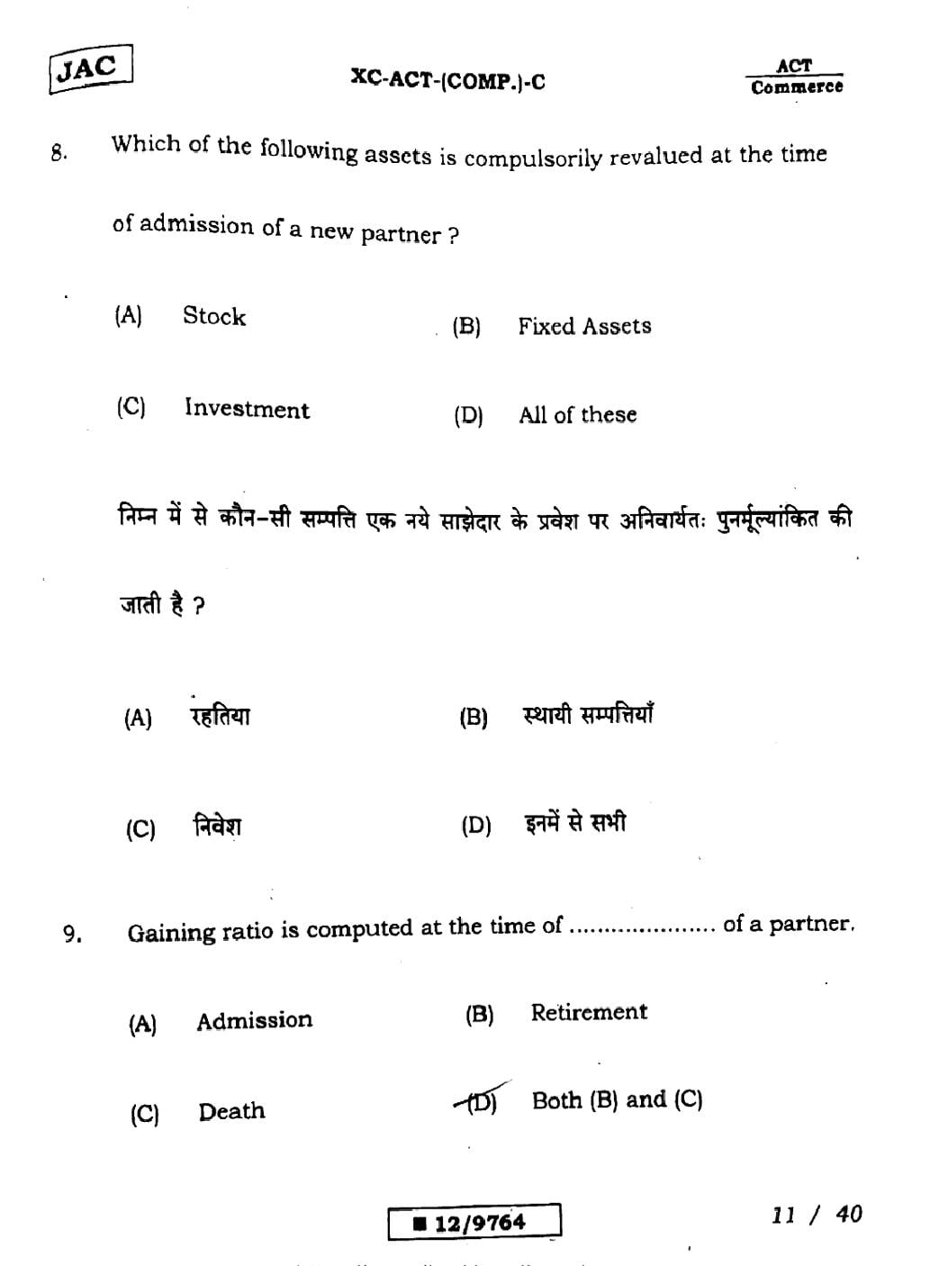 JAC Board Class 12 Accountancy Previous Year Question Paper