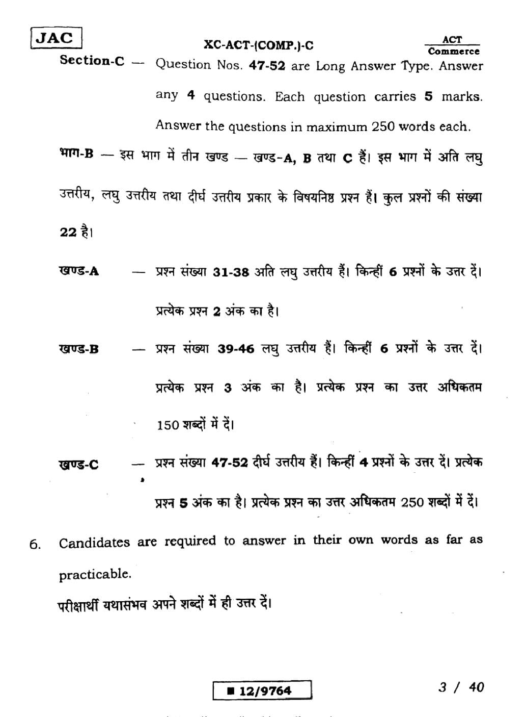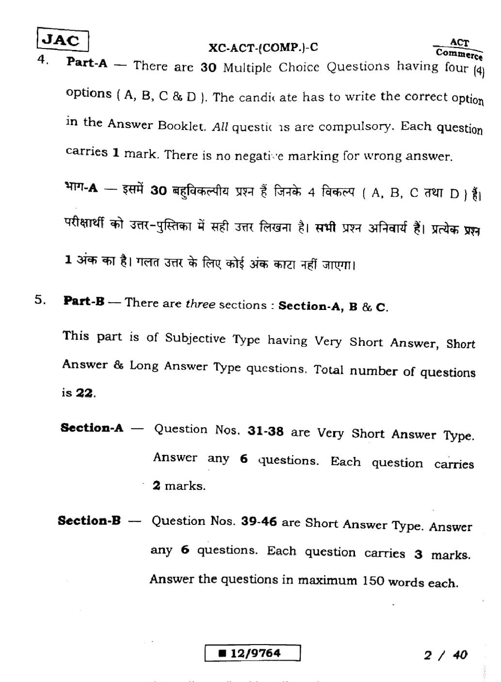 - JAC Class 12 Previous Year Question Papers