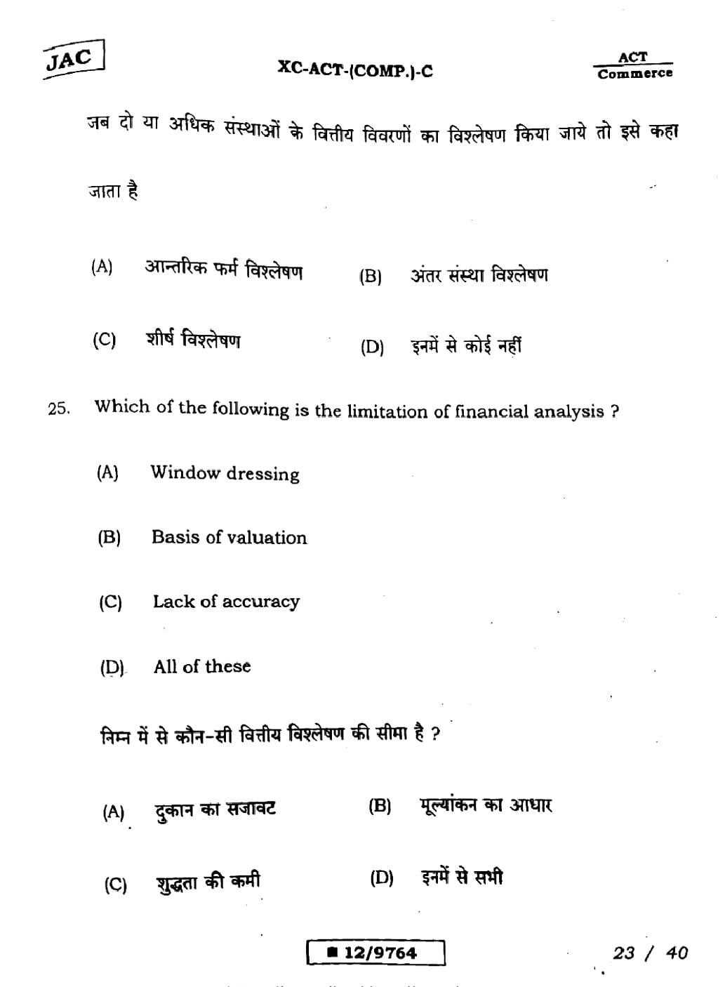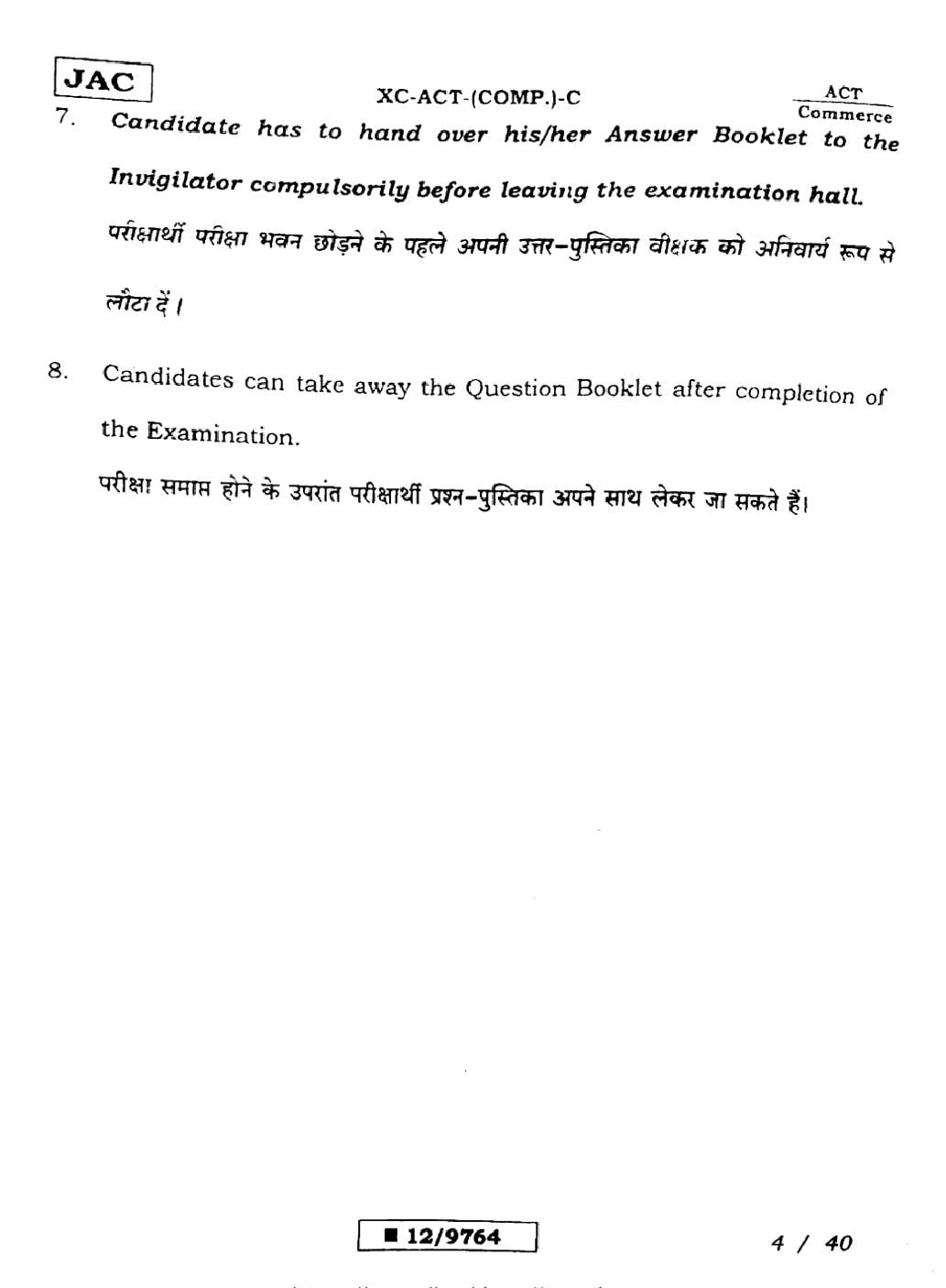 JAC Previous Year Question Papers