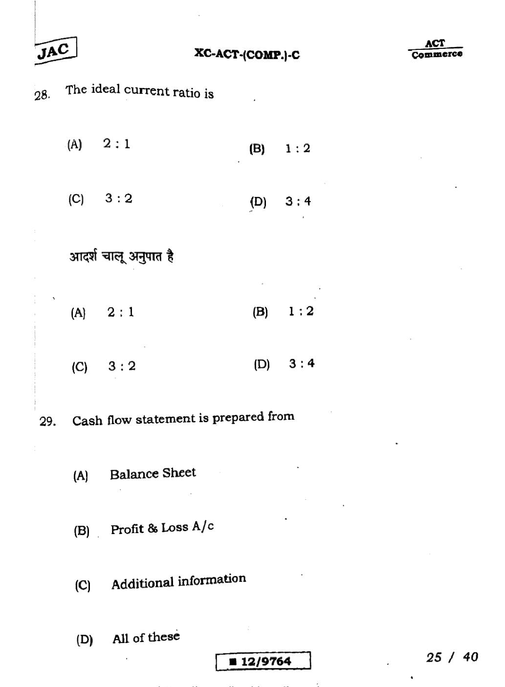 JAC Board Class 12 Question Paper 2025 Accountancy View Download