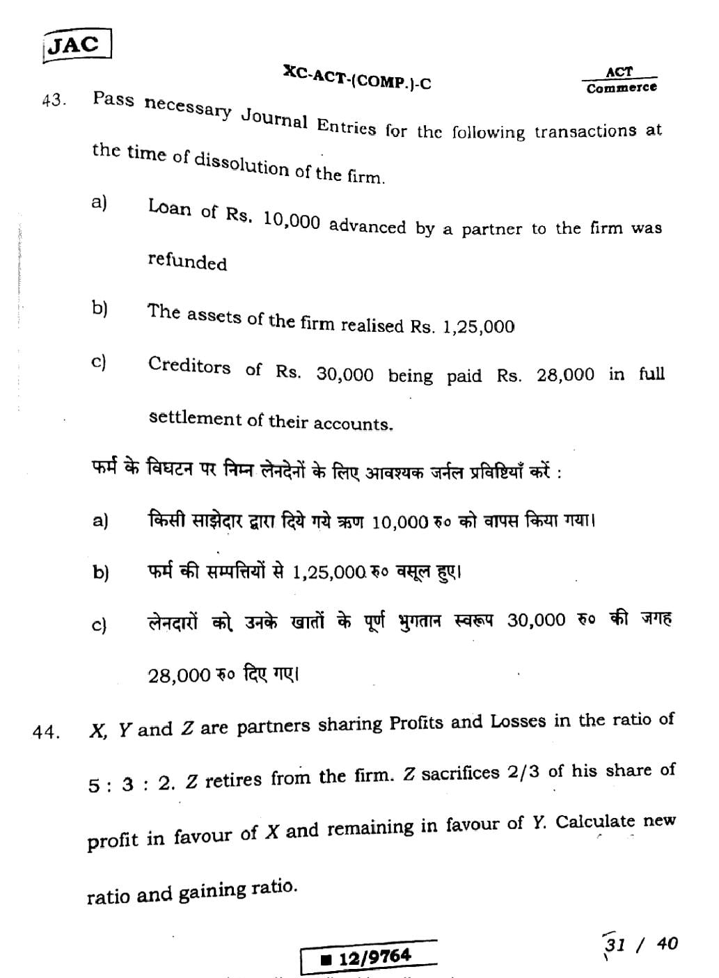 | Accountancy Sample Papers | JAC Class 12th Model Question Paper |