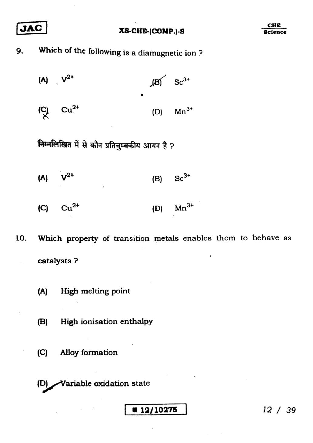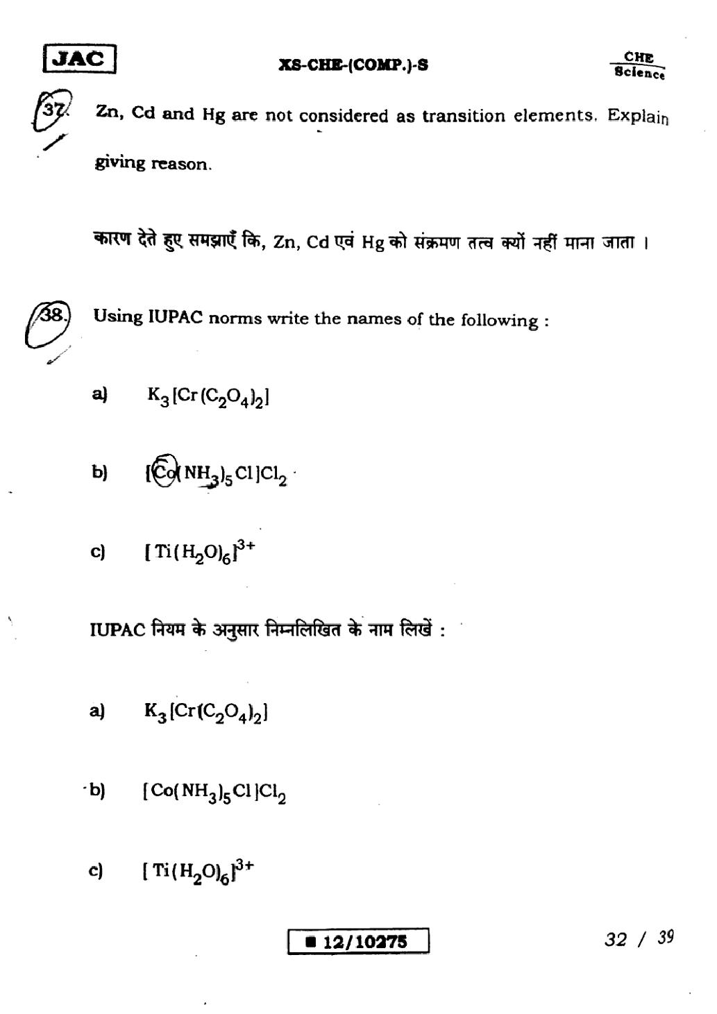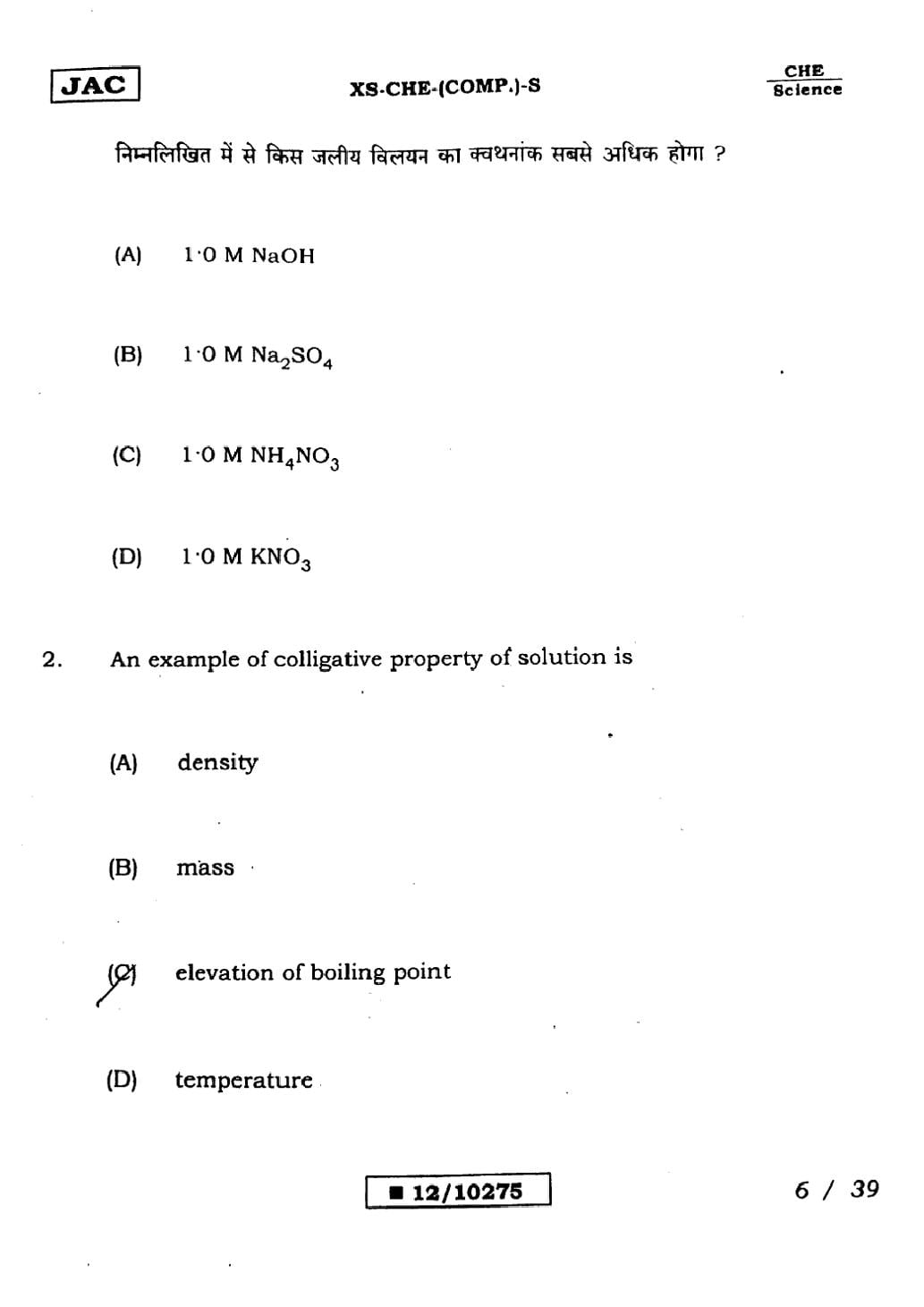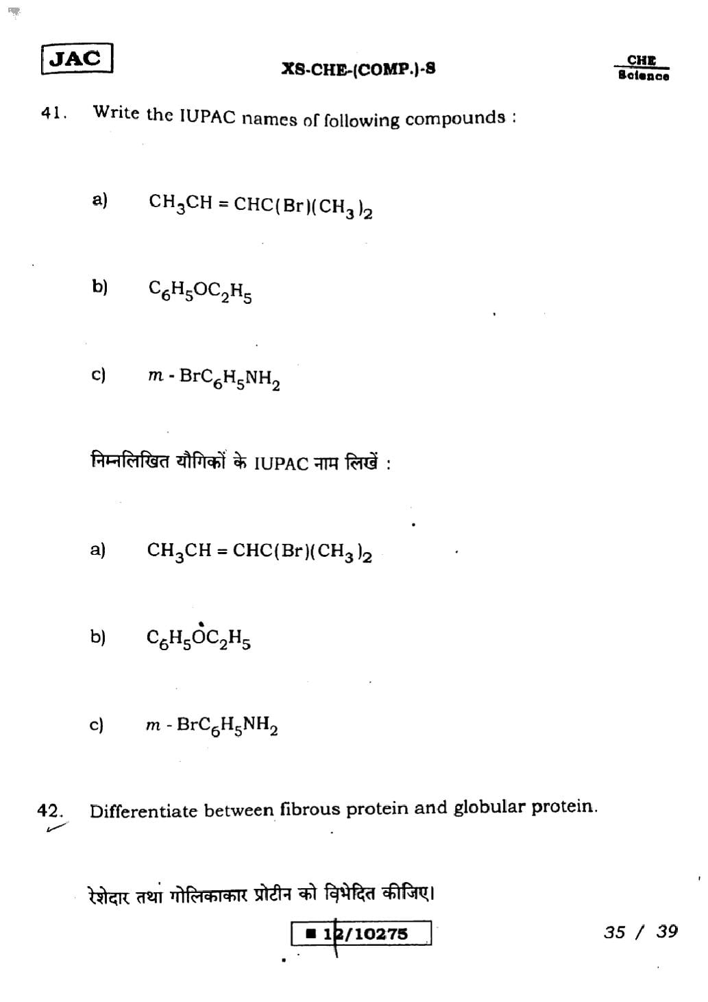 The JAC Board Previous Year Question Paper of Class 12 for Chemistry is as follows.