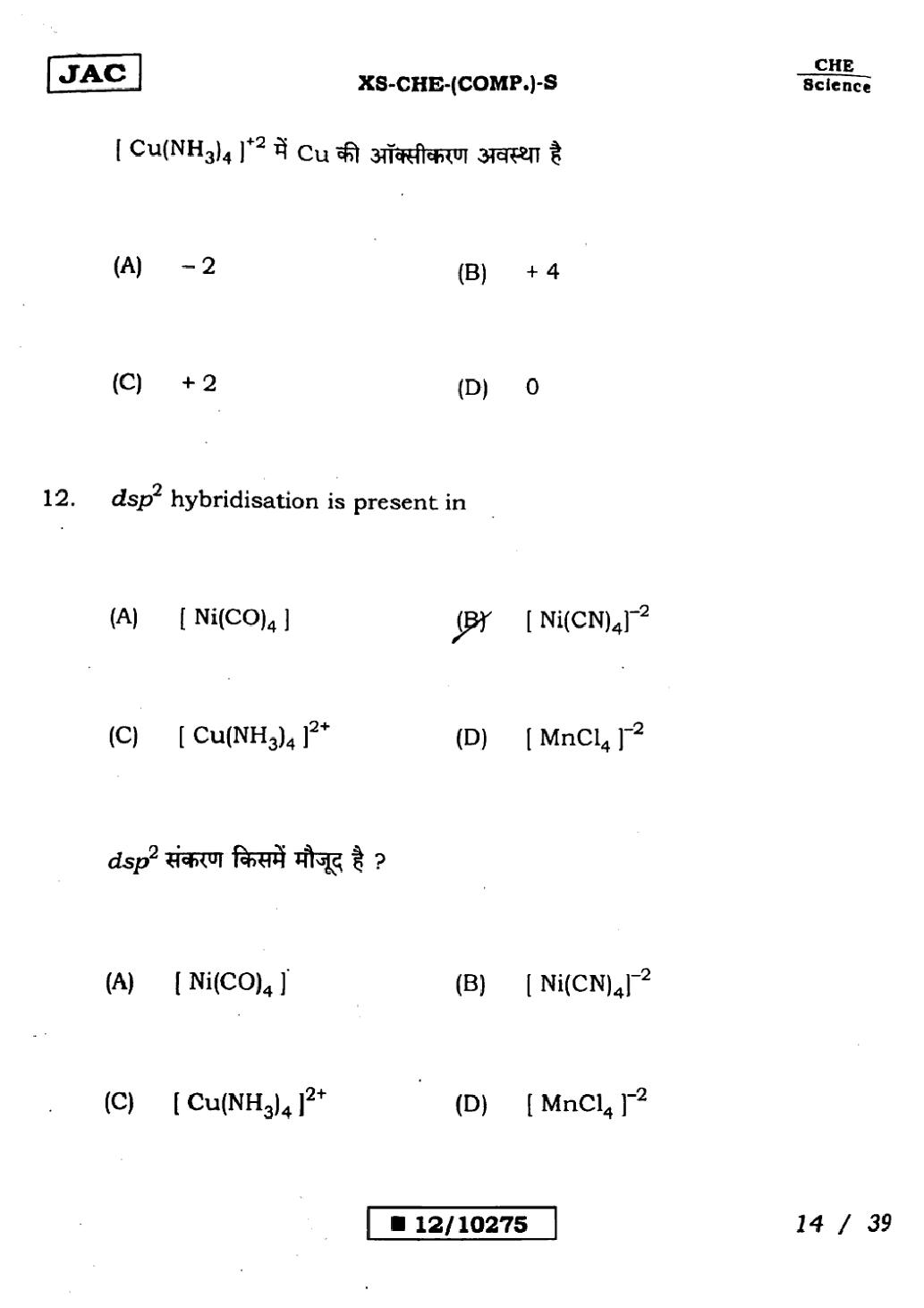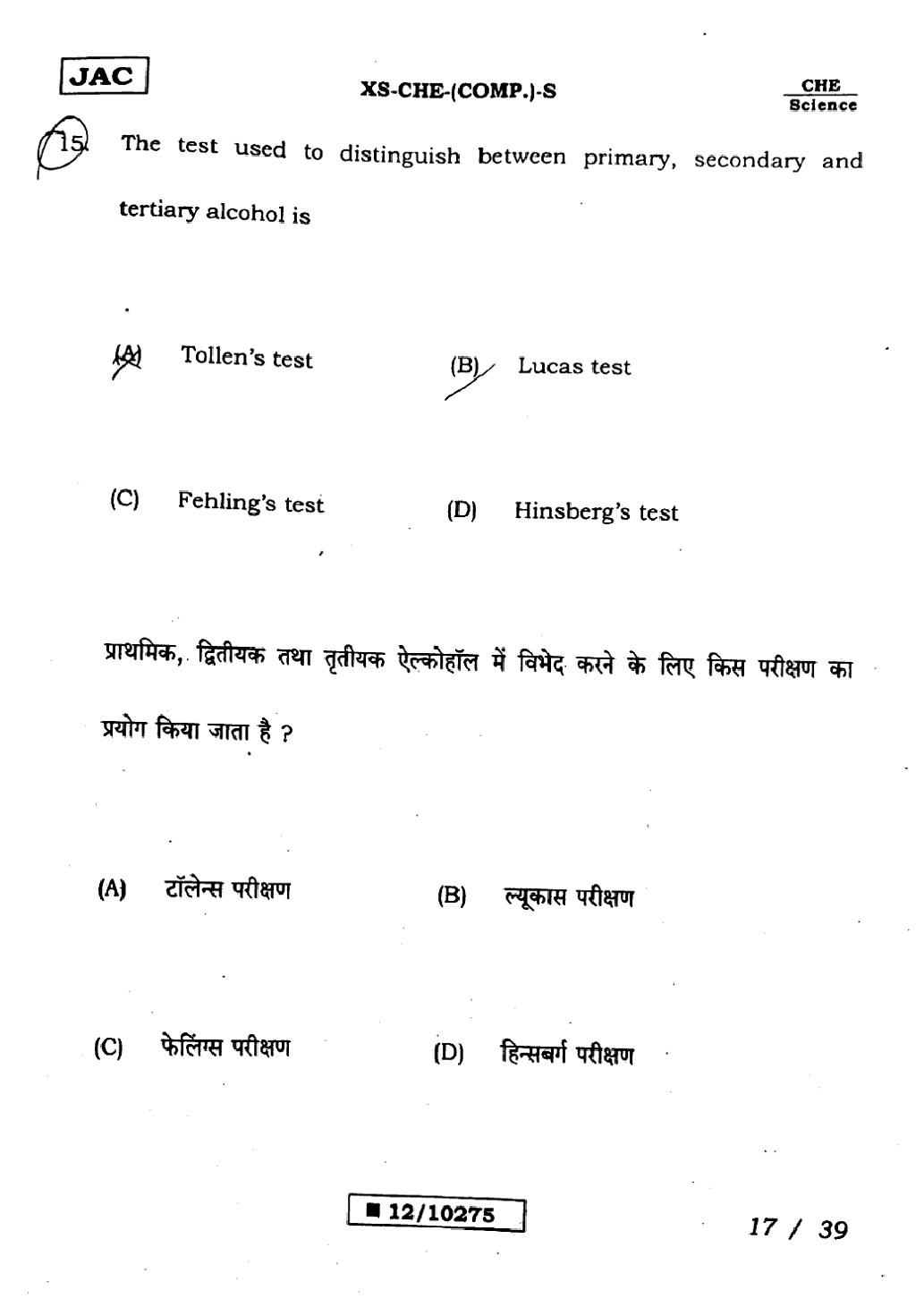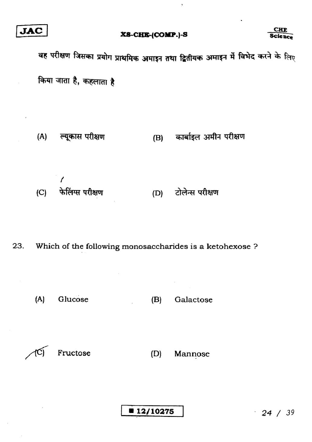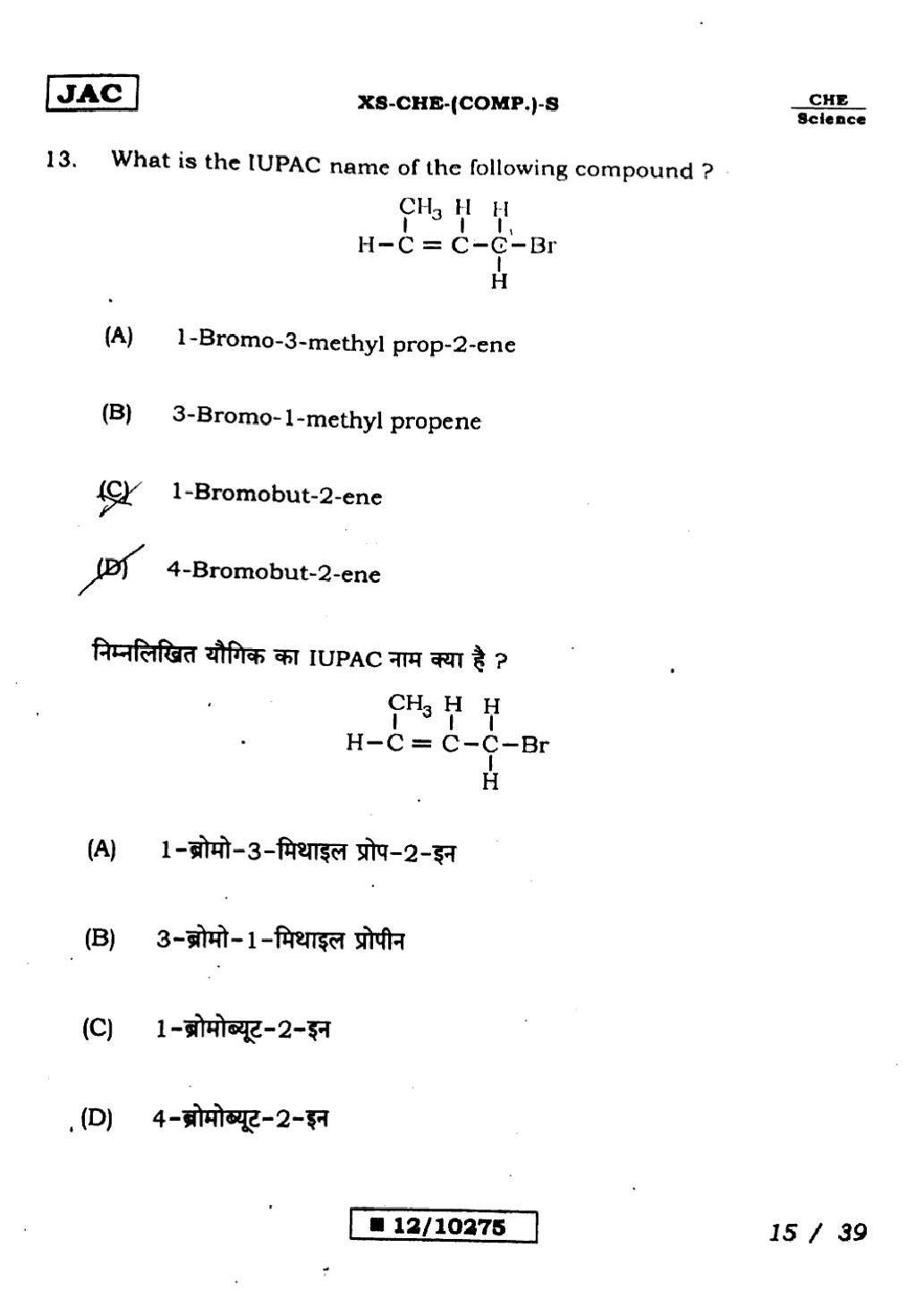 The JAC Board Previous Year Question Paper of Class 12 for Chemistry is as follows.