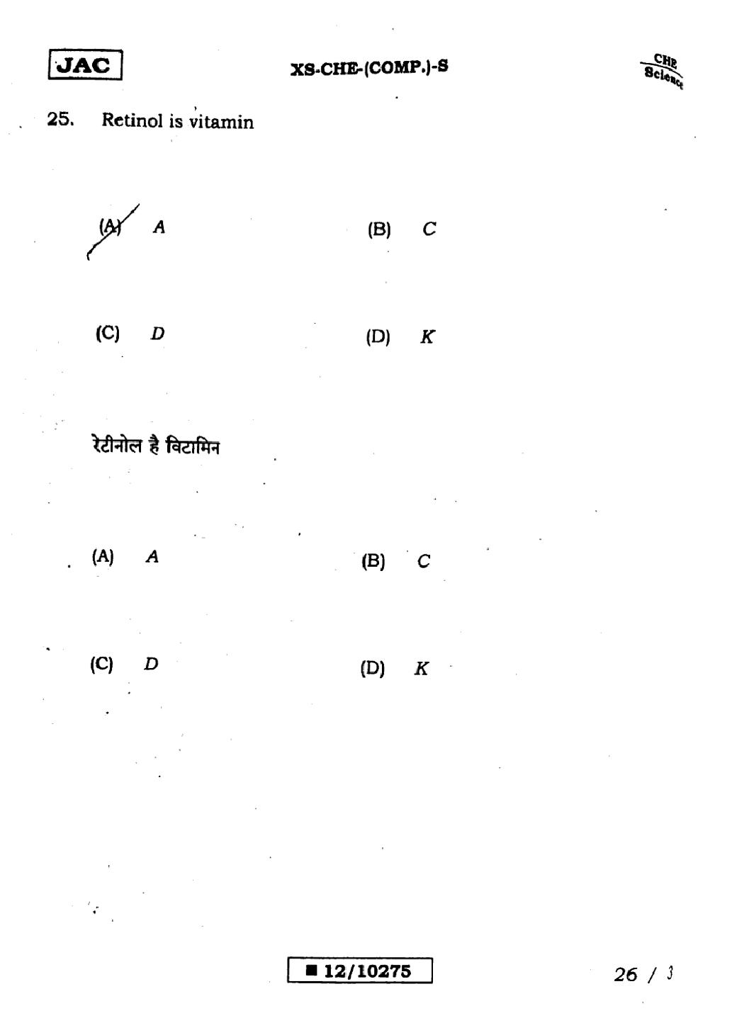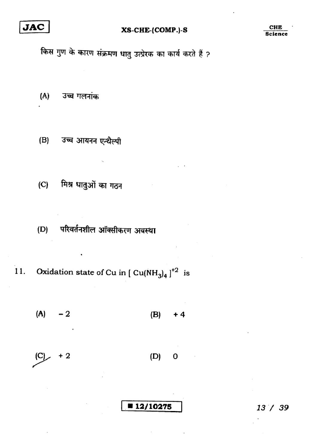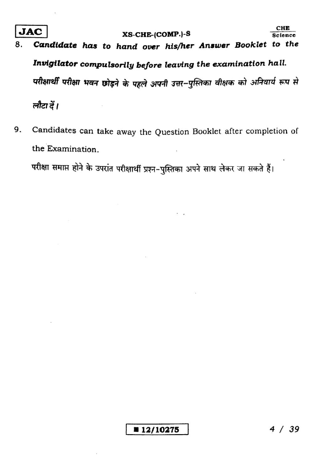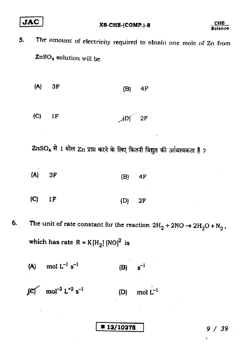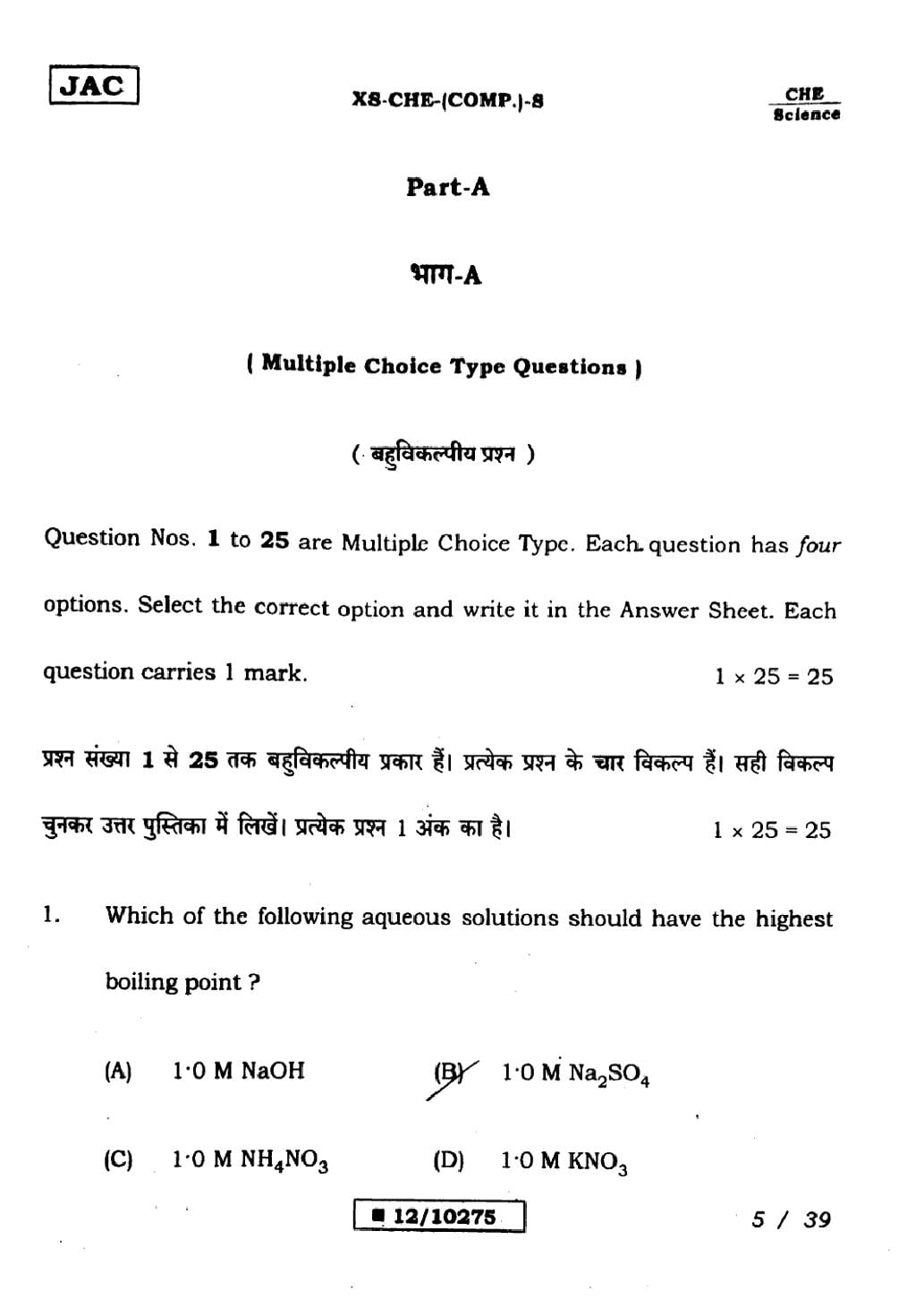 JAC Board Class 12 Question Paper 2025 Chemistry View Download