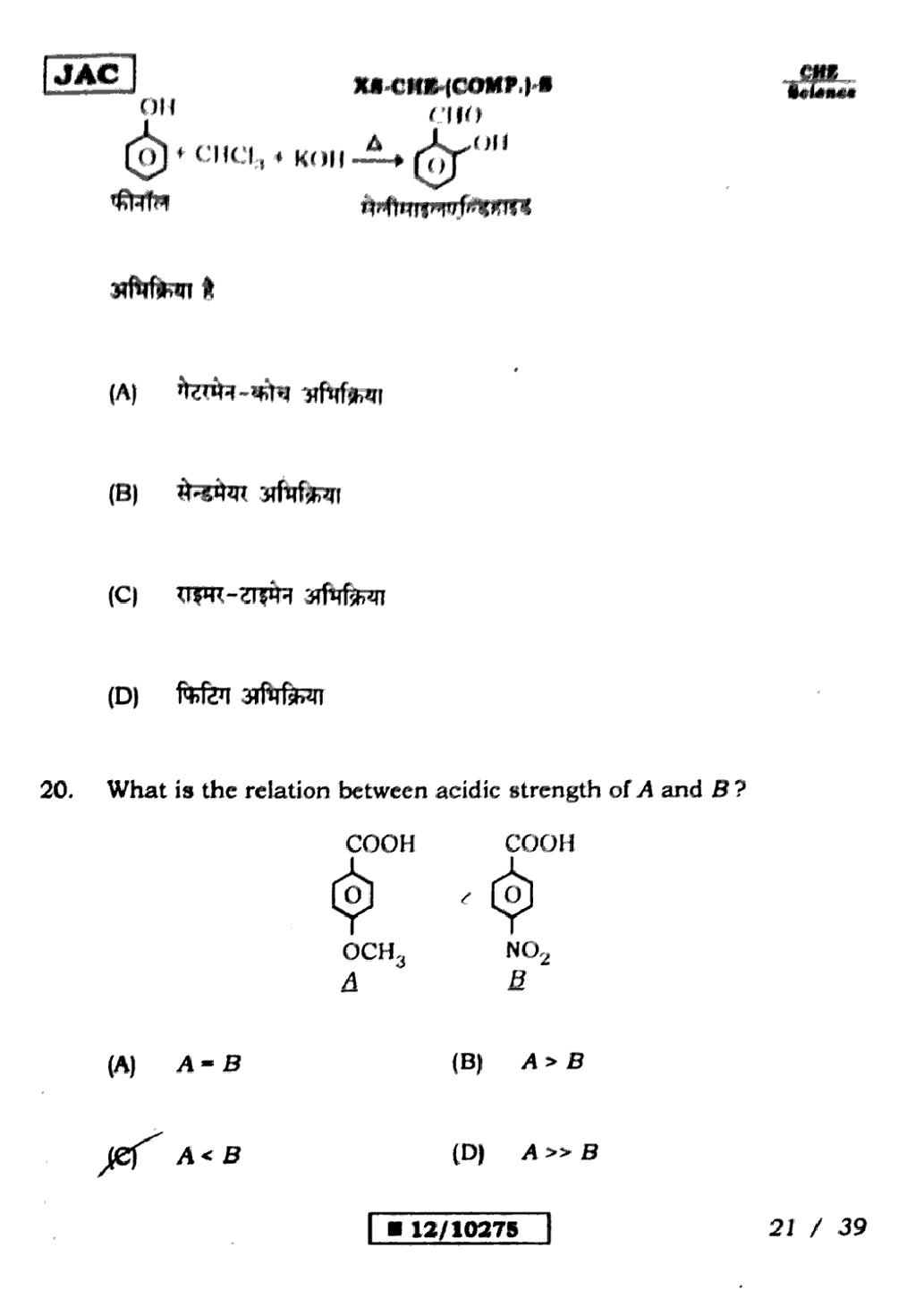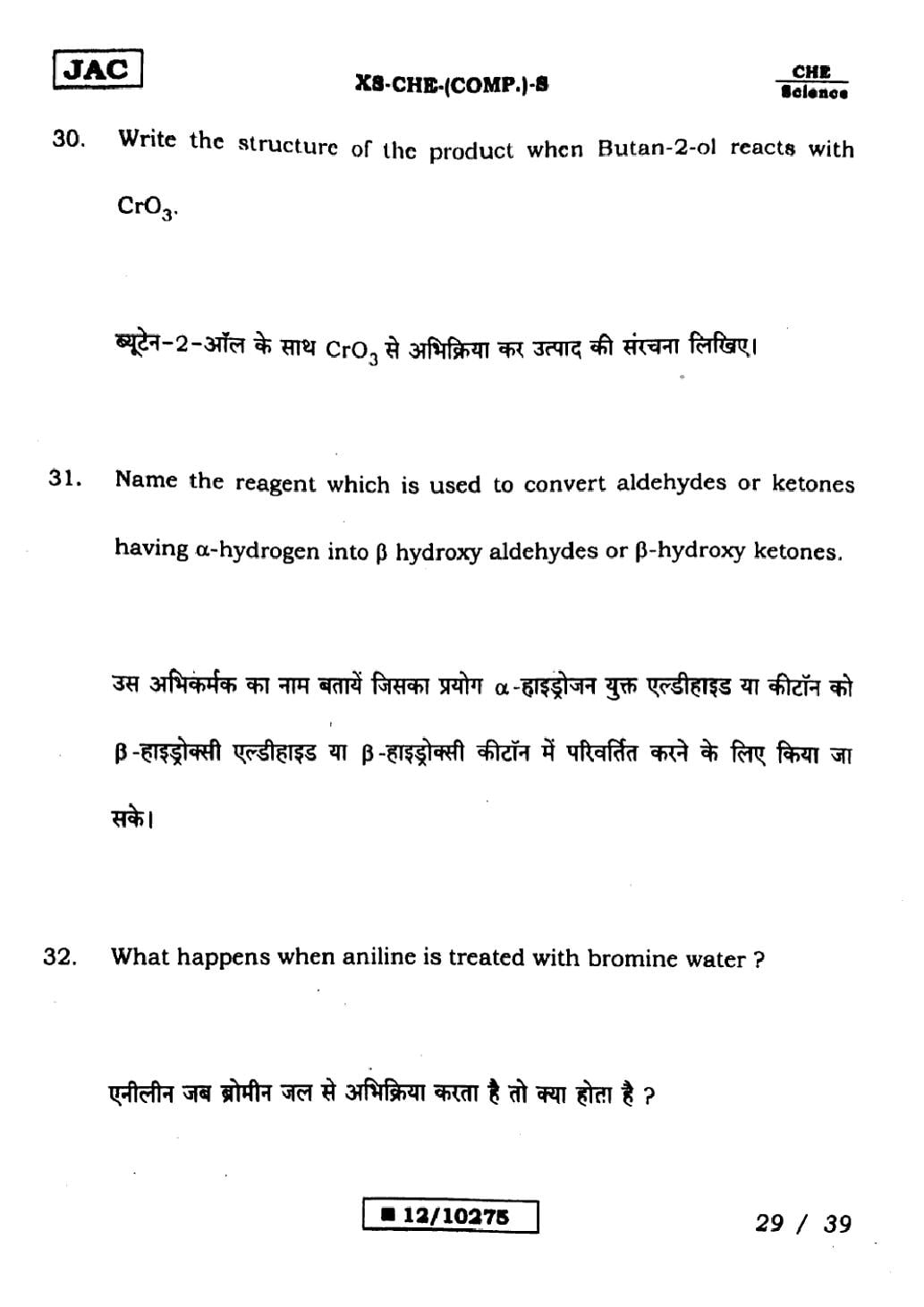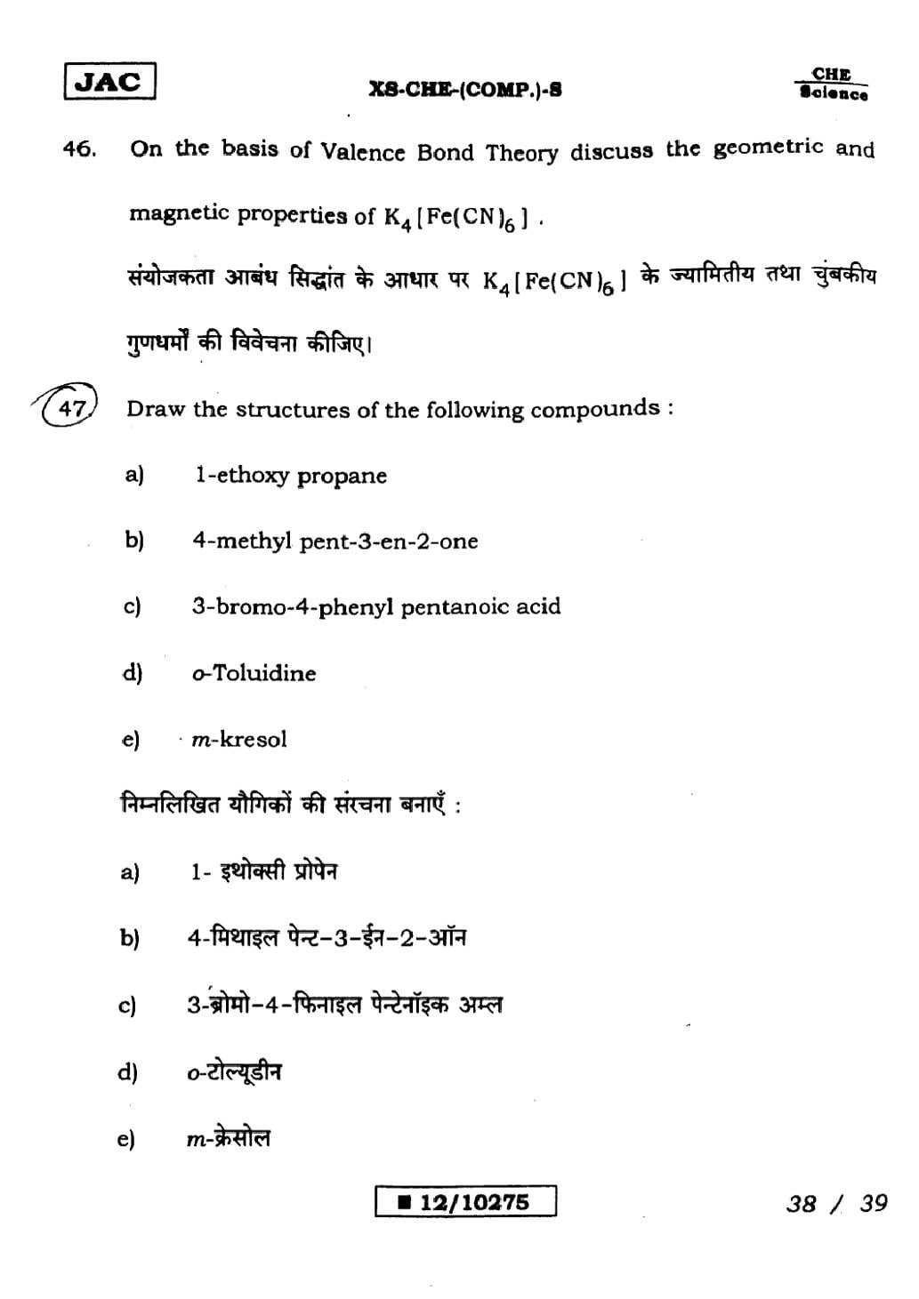 JAC Board Class 12 Chemistry Previous Year Question Paper