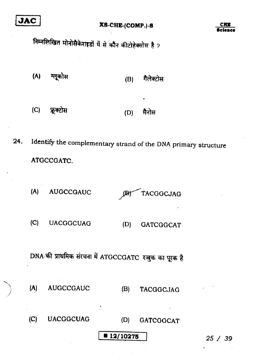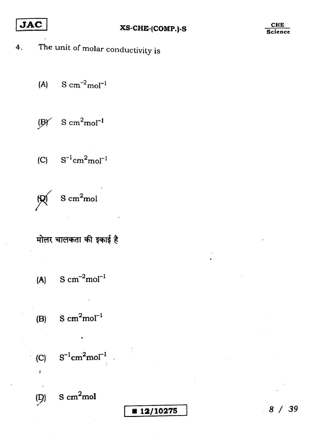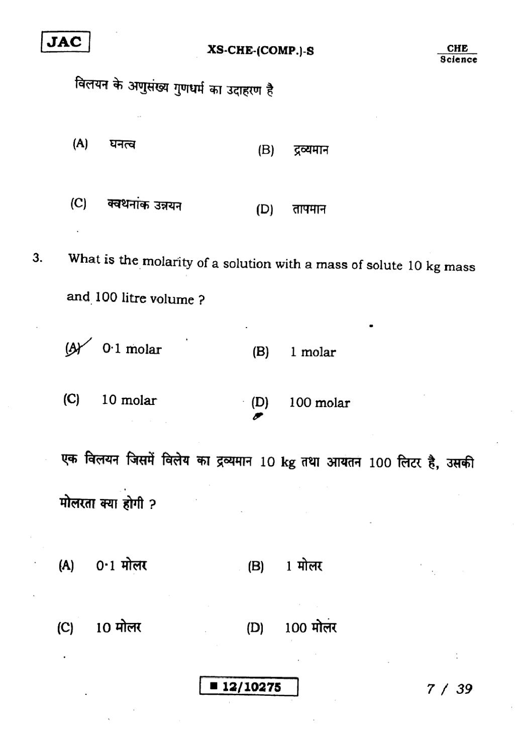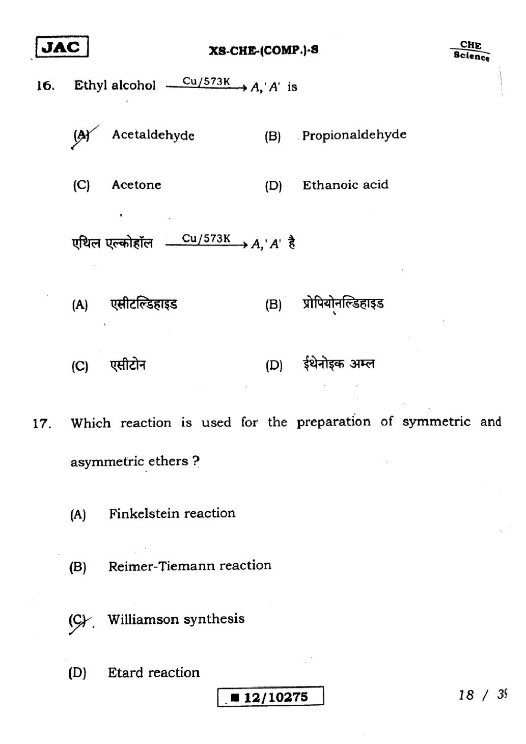 JAC Board Class 12 Chemistry Previous Year Question Paper