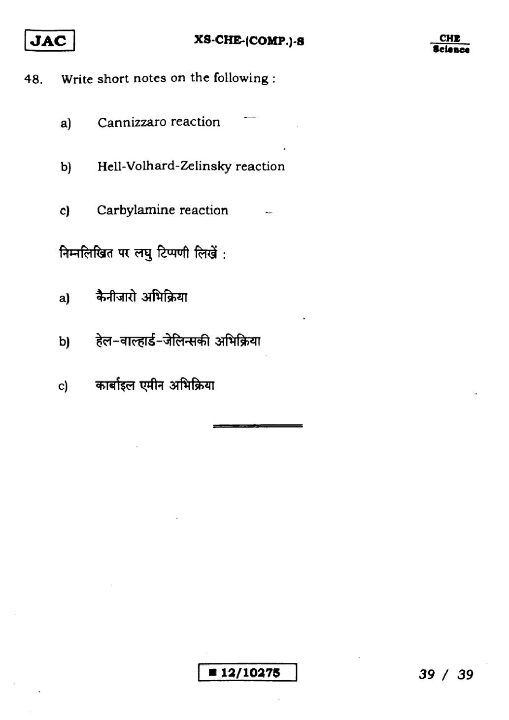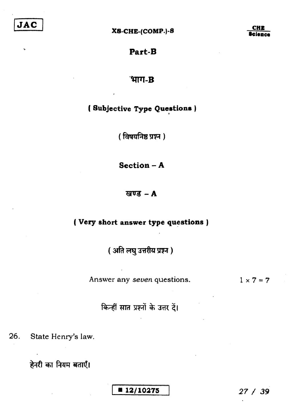 | Chemistry Sample Papers | JAC Class 12th Model Question Paper |
