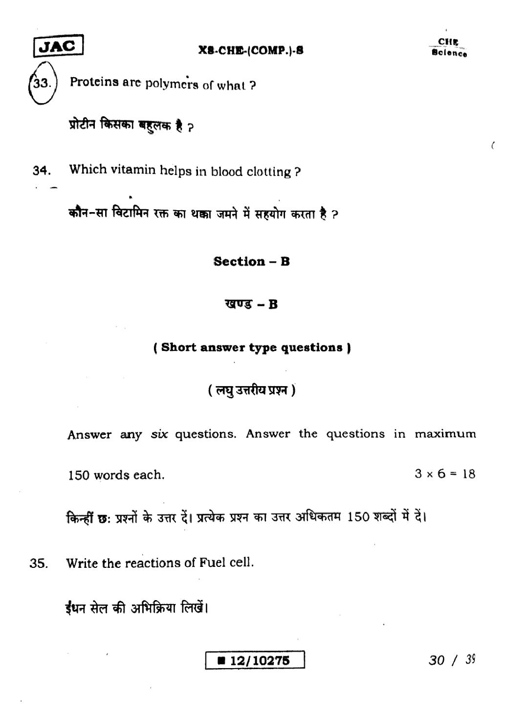 JAC Board Class 12 Chemistry Previous Year Question Paper PDF