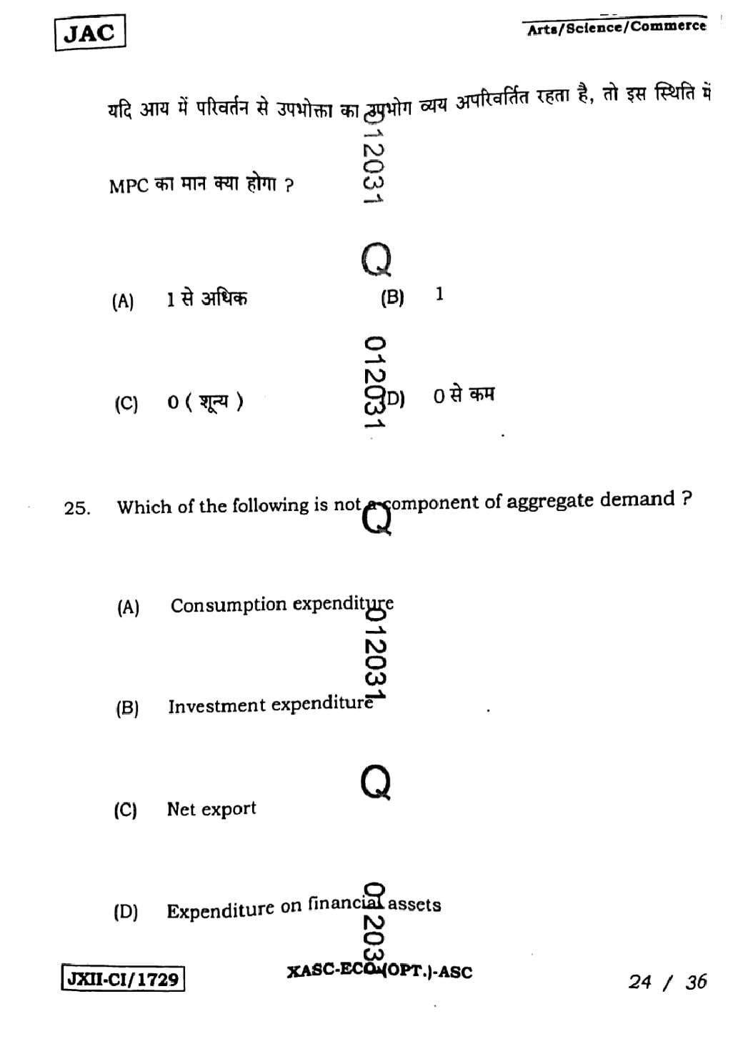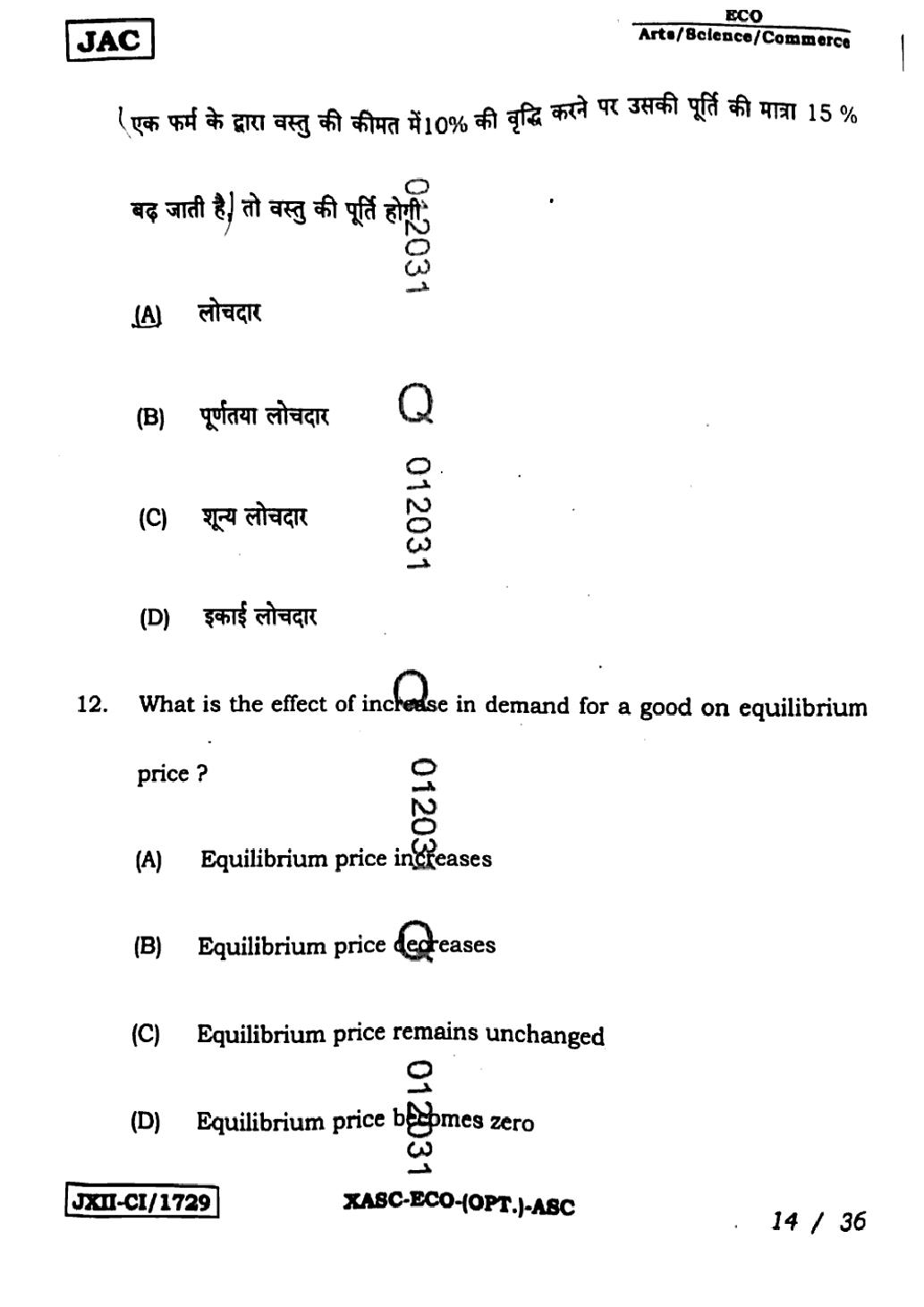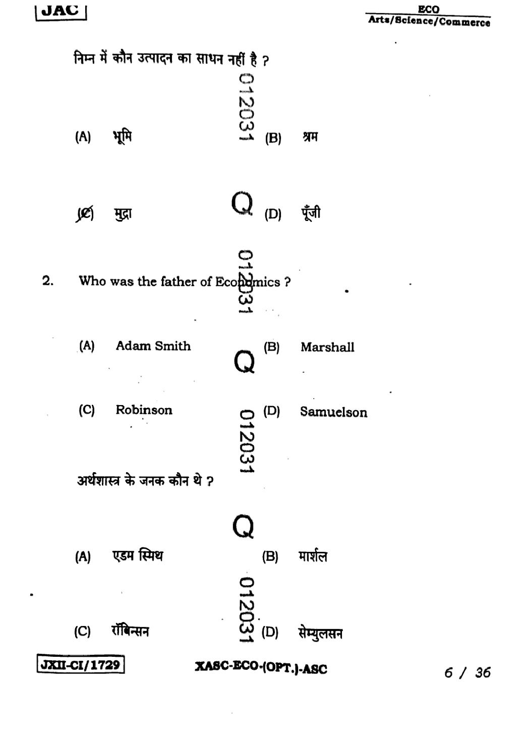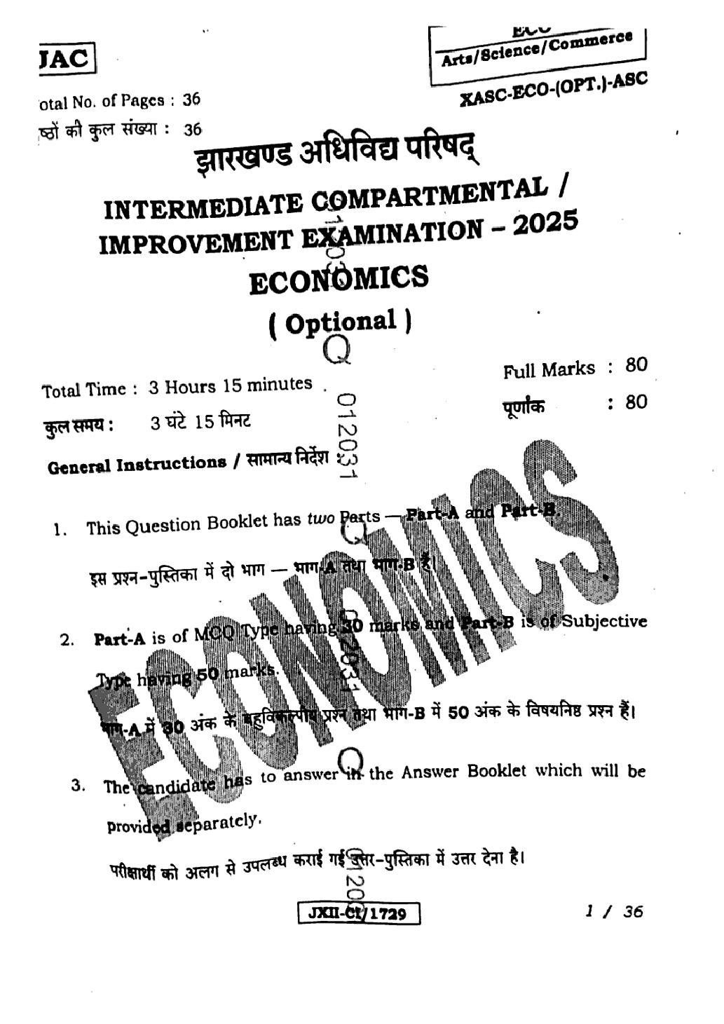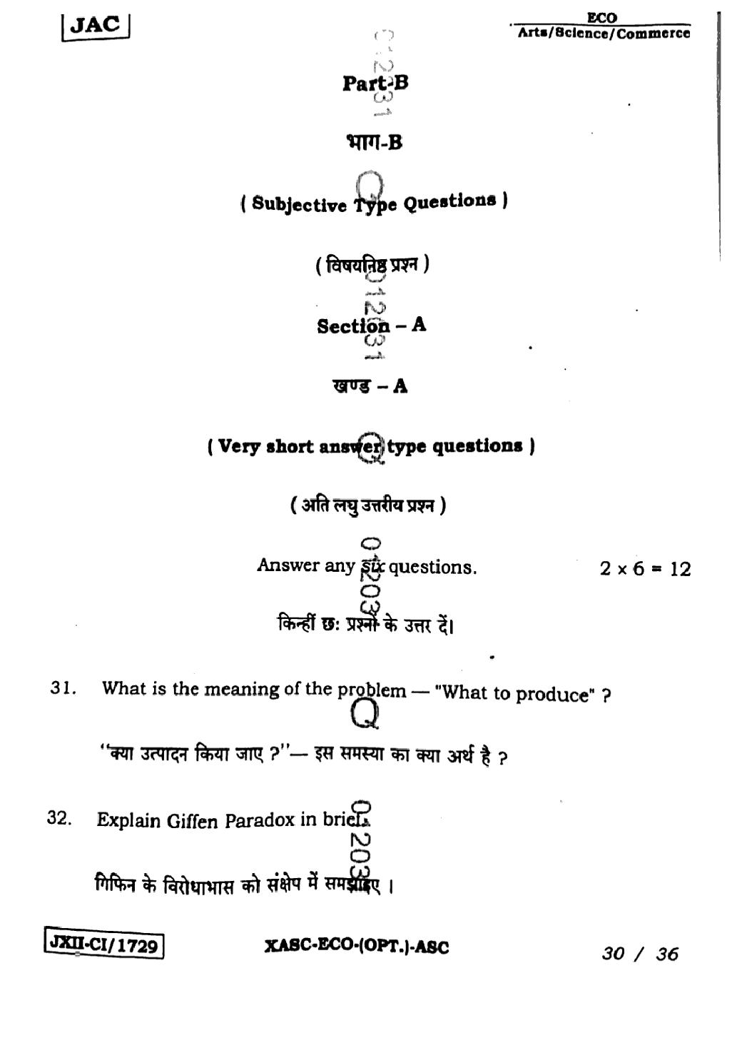 JAC Board Class 12 Question Paper 2025 Economics View Download
