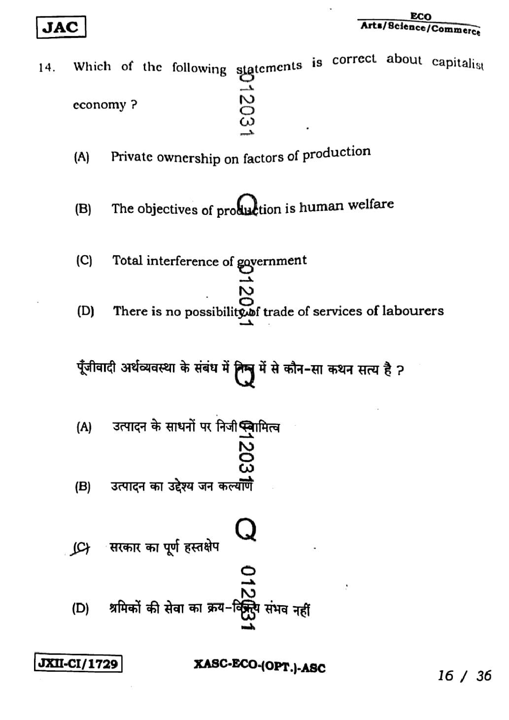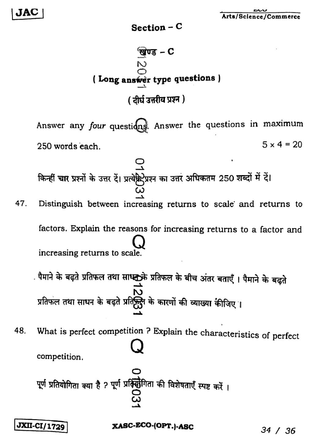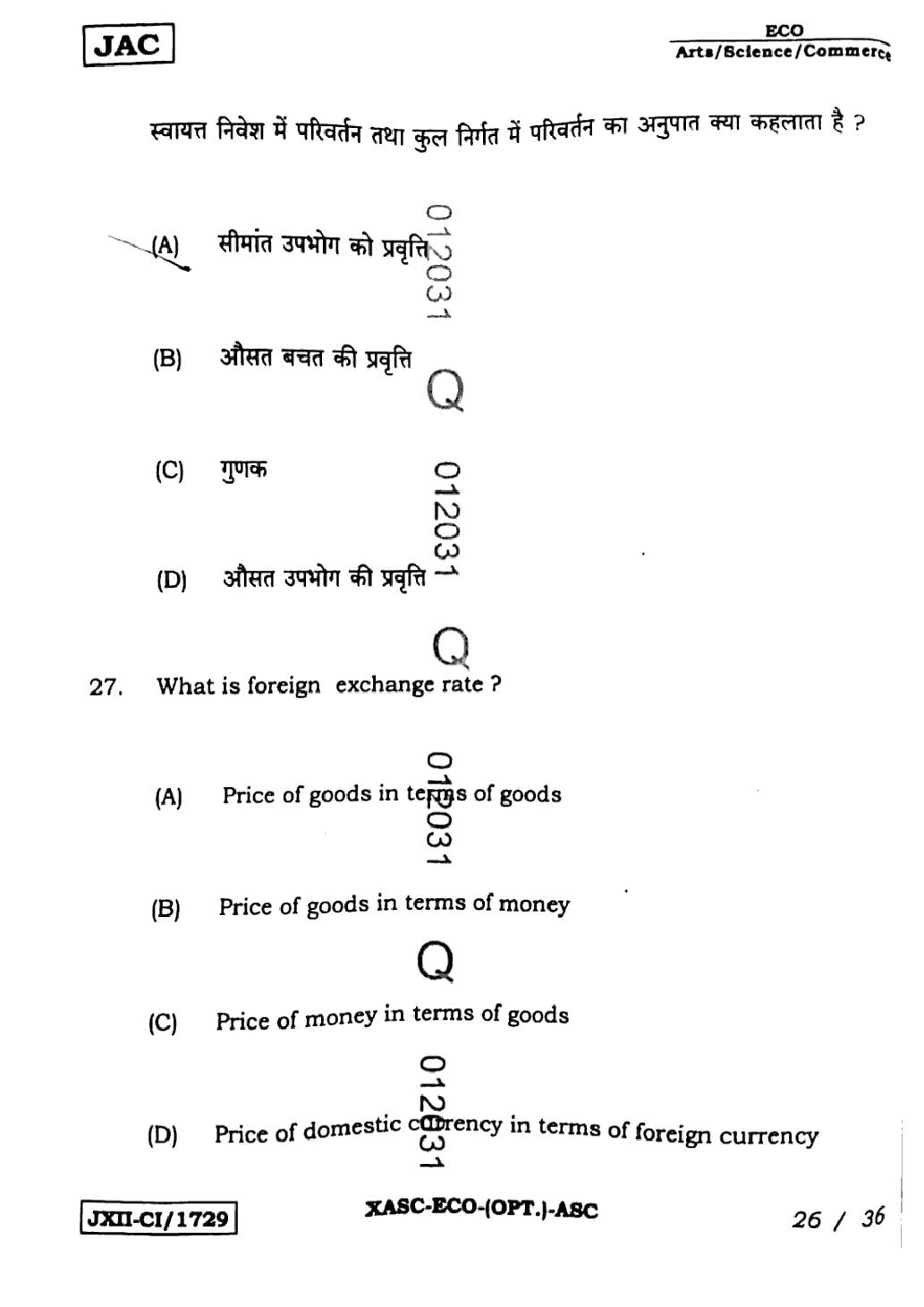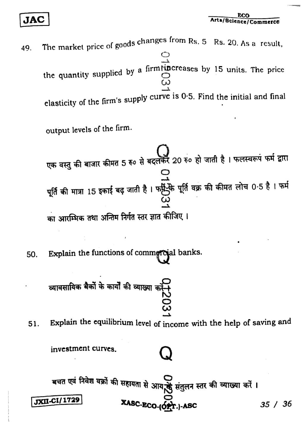 The JAC Board Previous Year Question Paper of Class 12 for Economics is as follows.