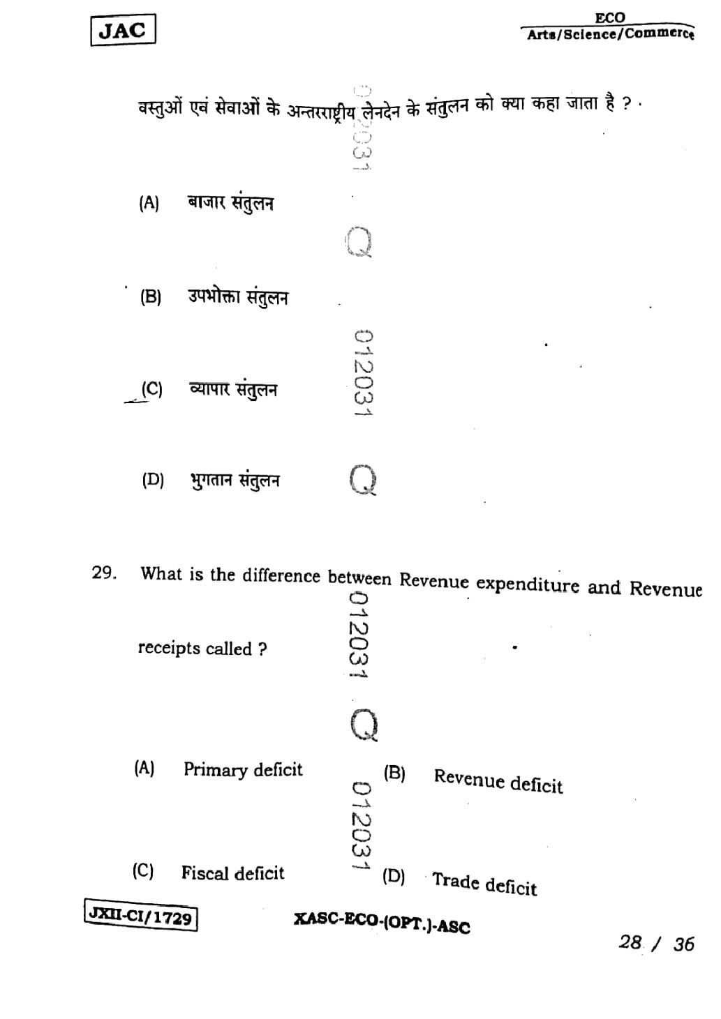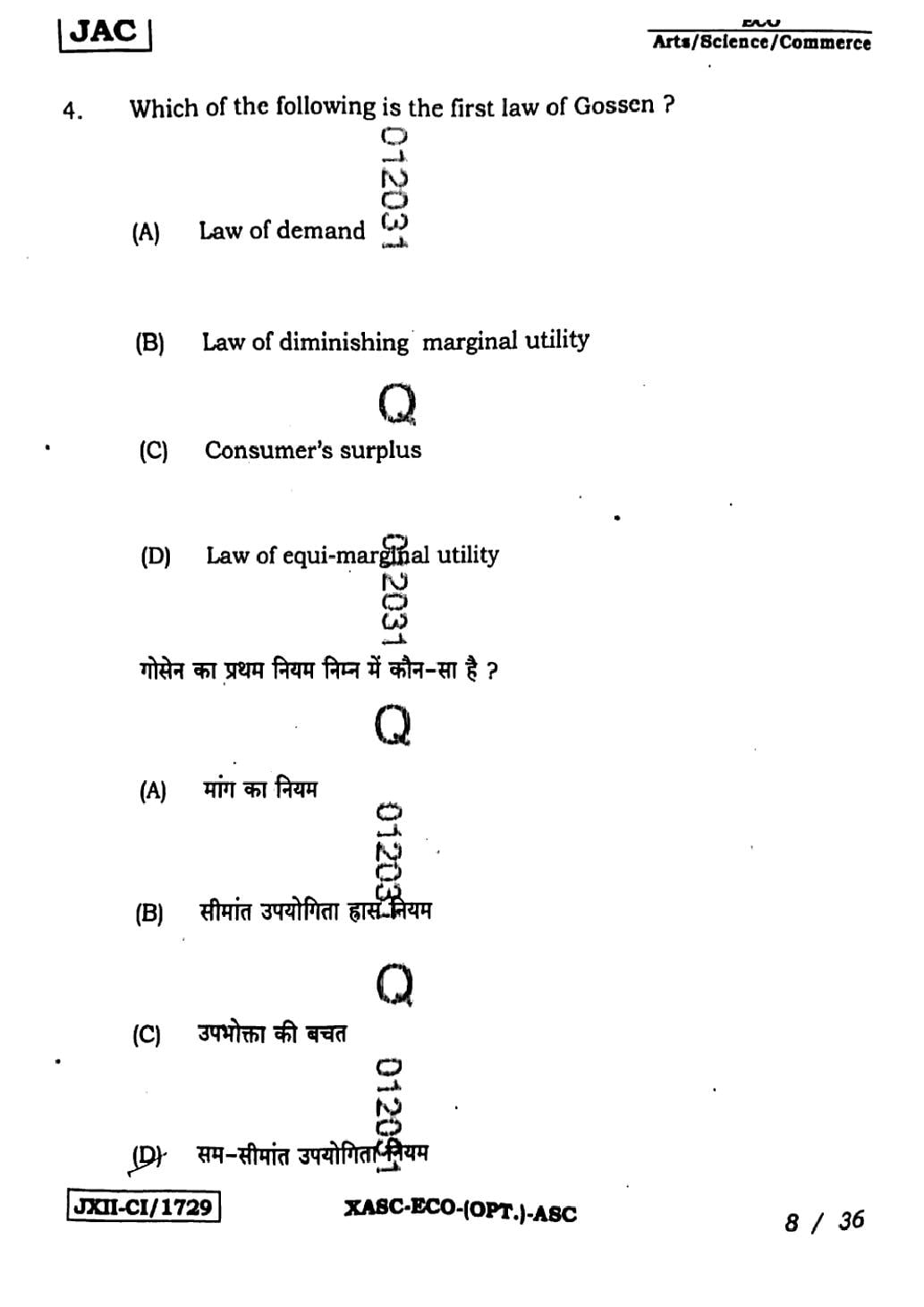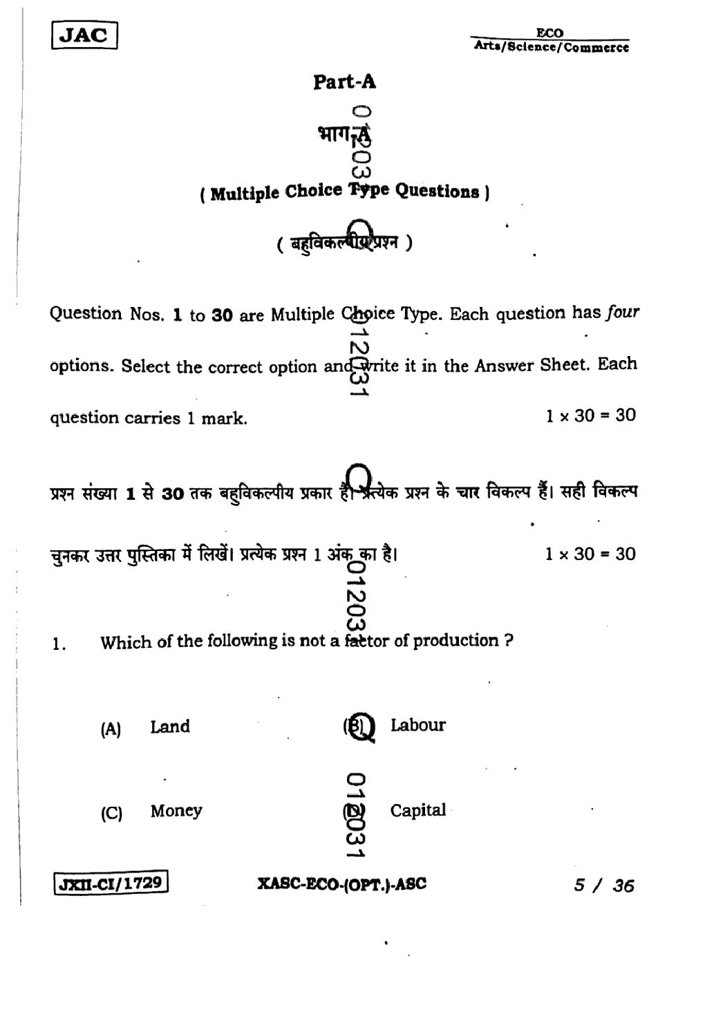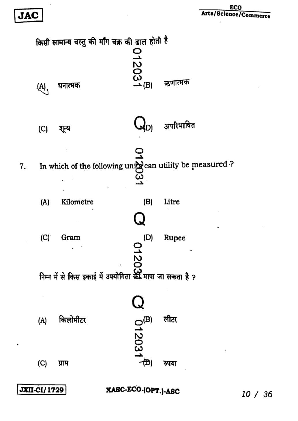 The JAC Board Previous Year Question Paper of Class 12 for Economics is as follows.