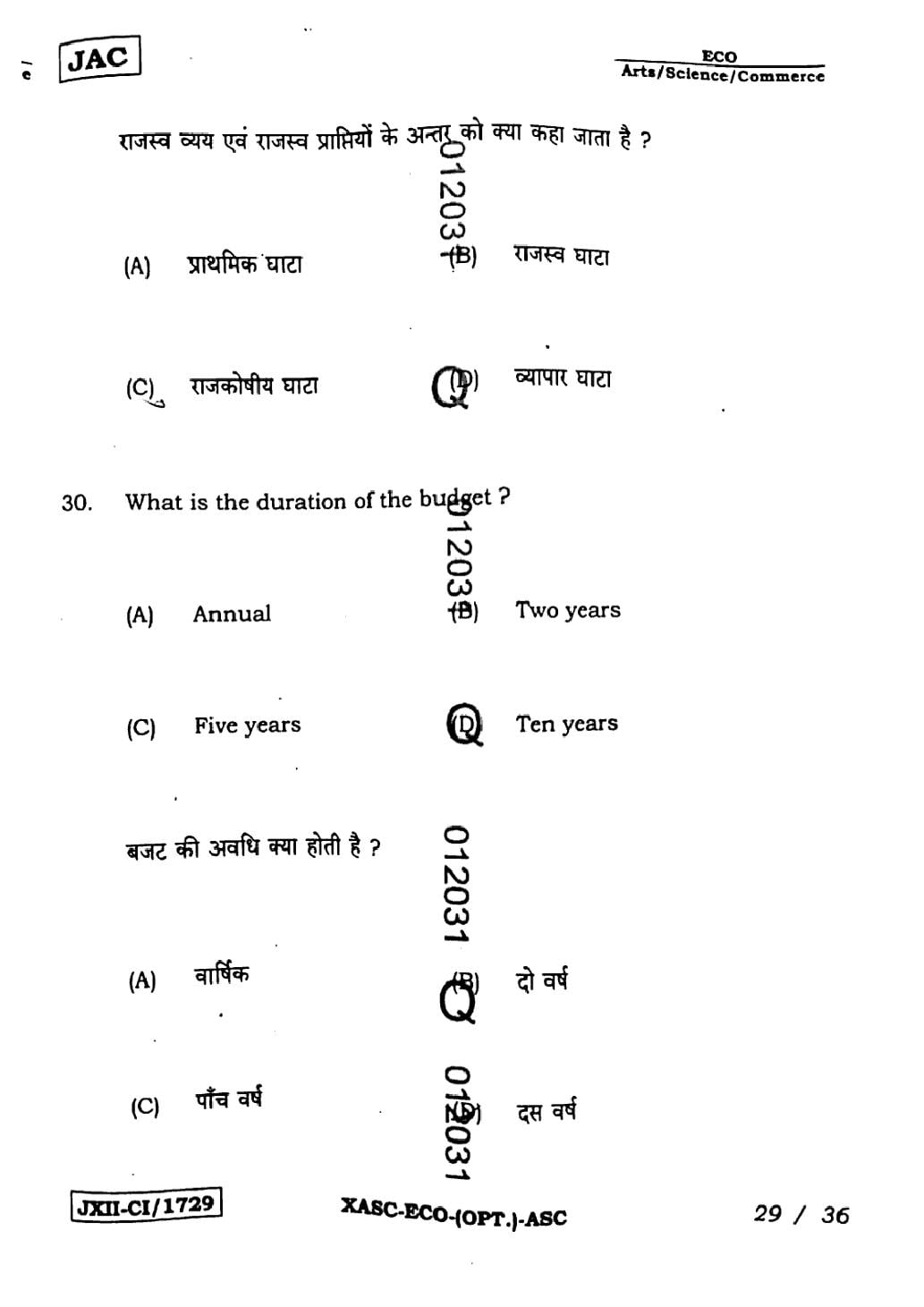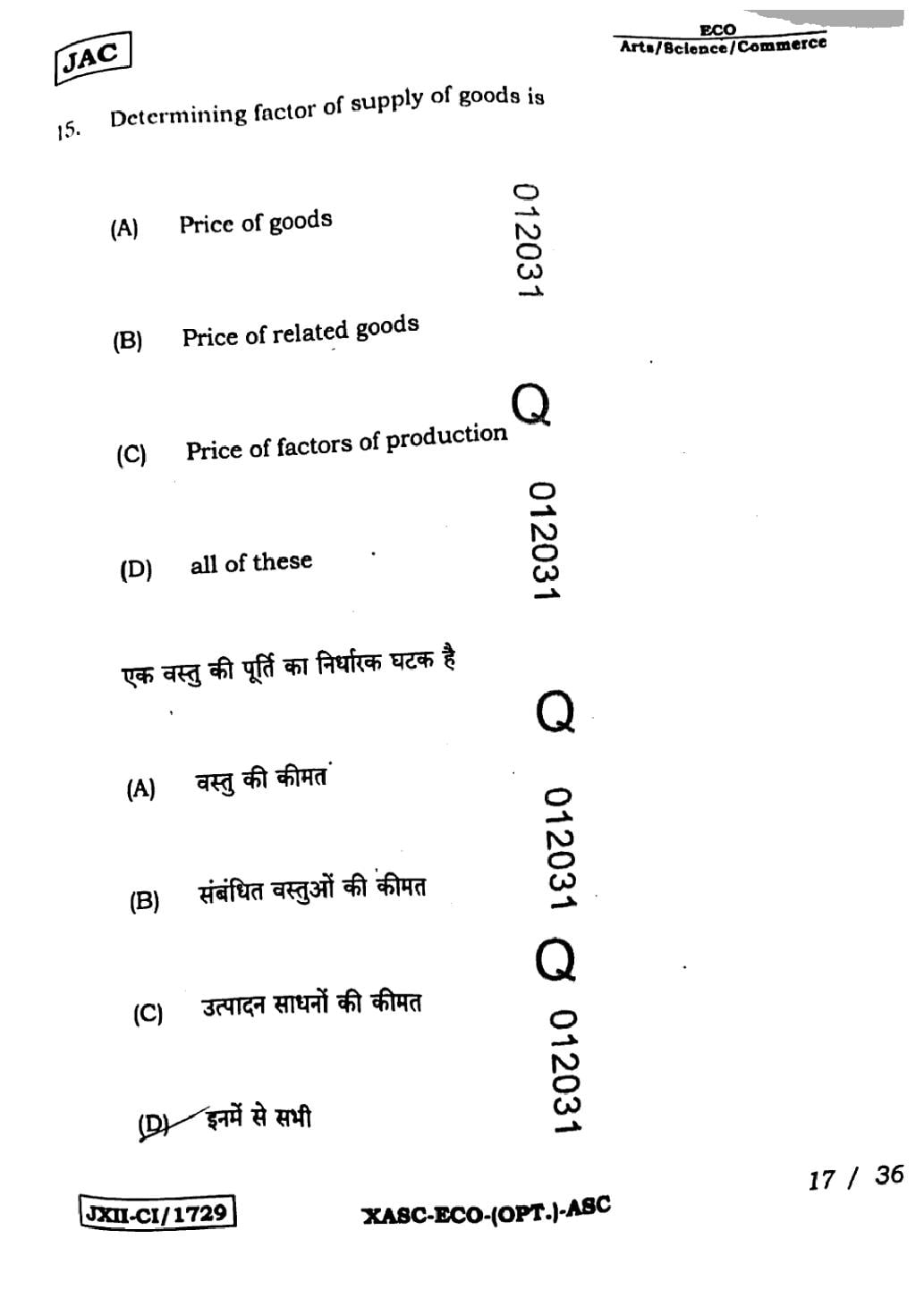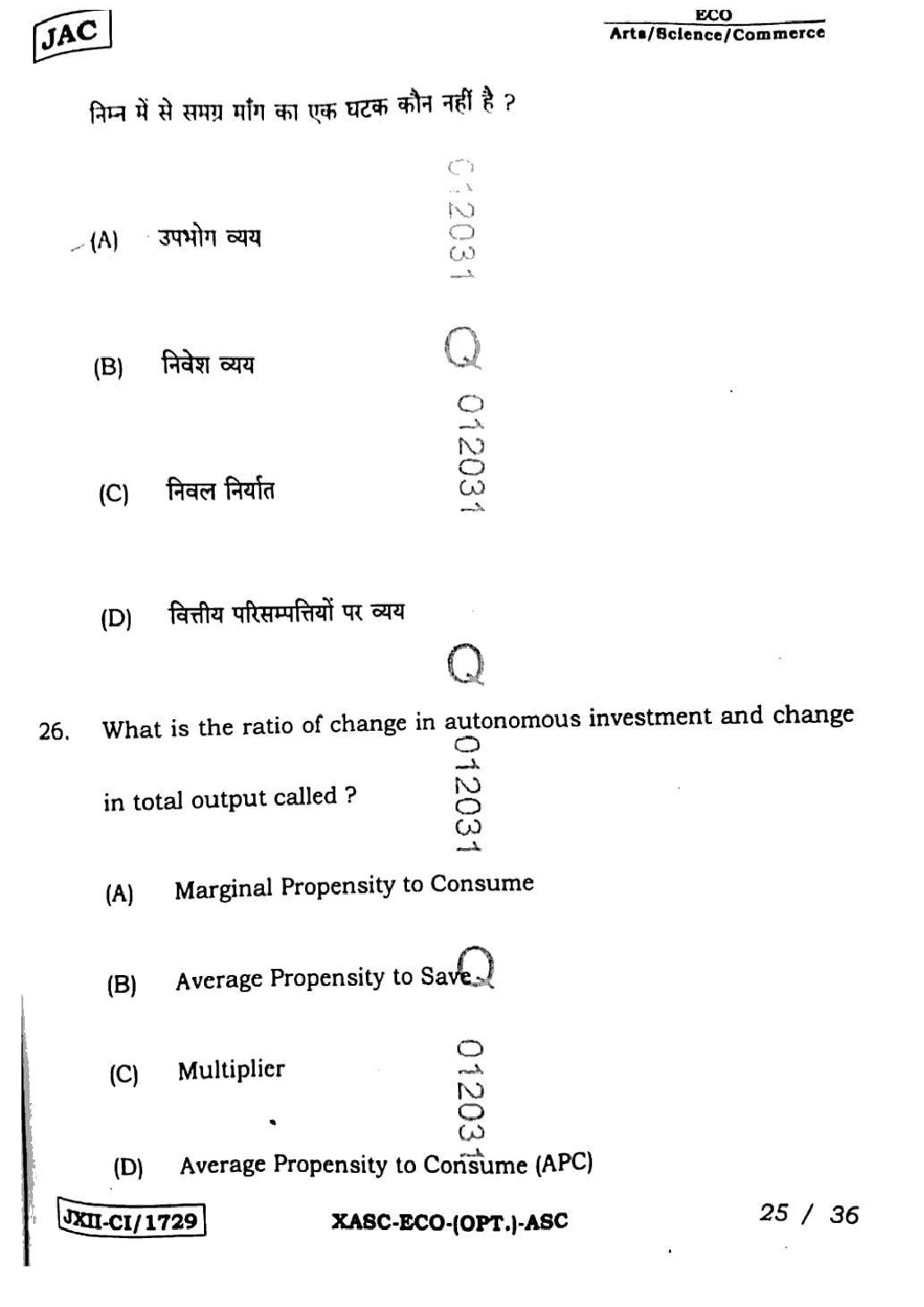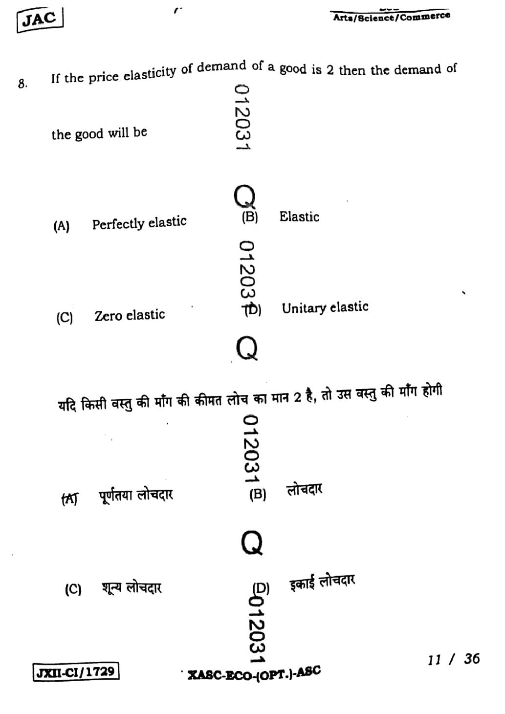 The JAC Board Previous Year Question Paper of Class 12 for Economics is as follows.