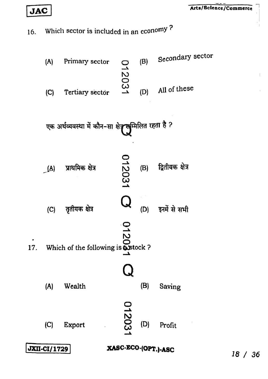 | Economics Sample Papers | JAC Class 12th Model Question Paper |