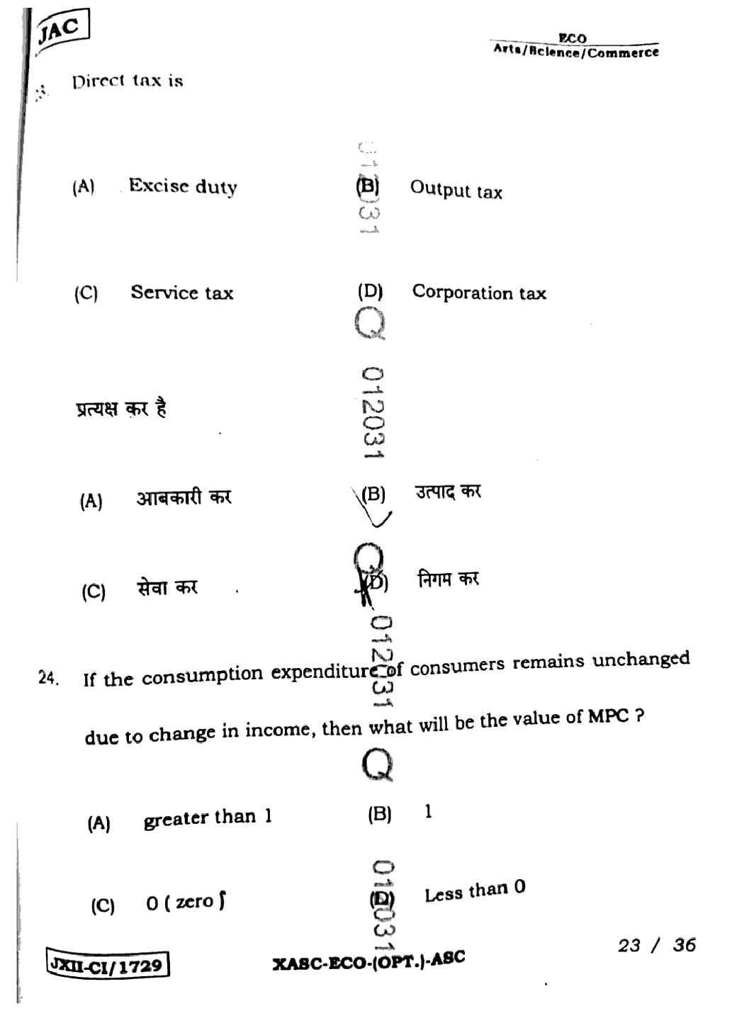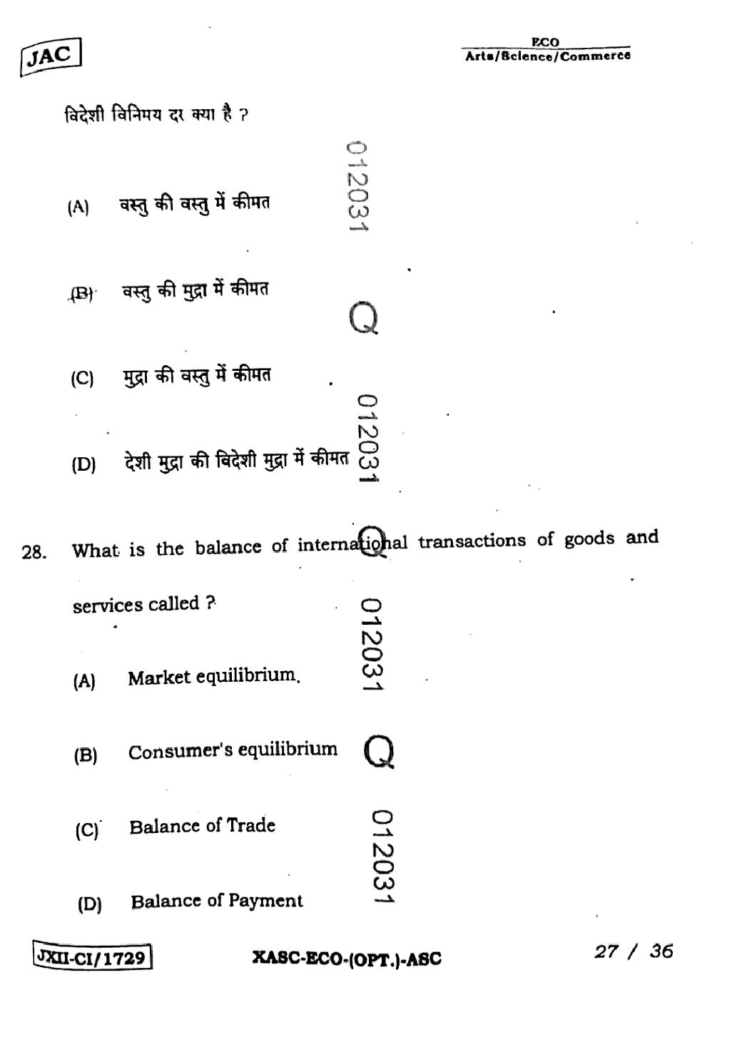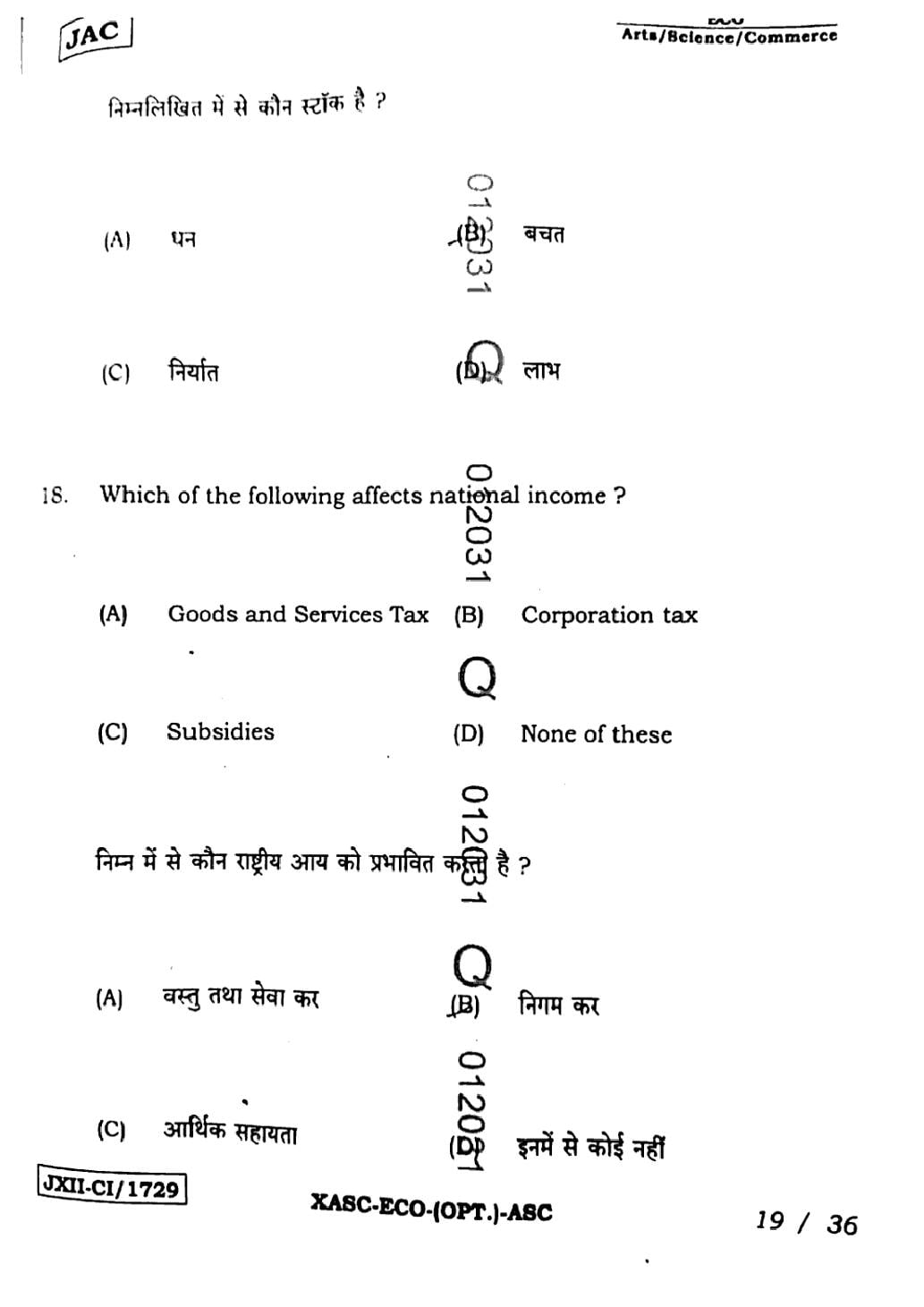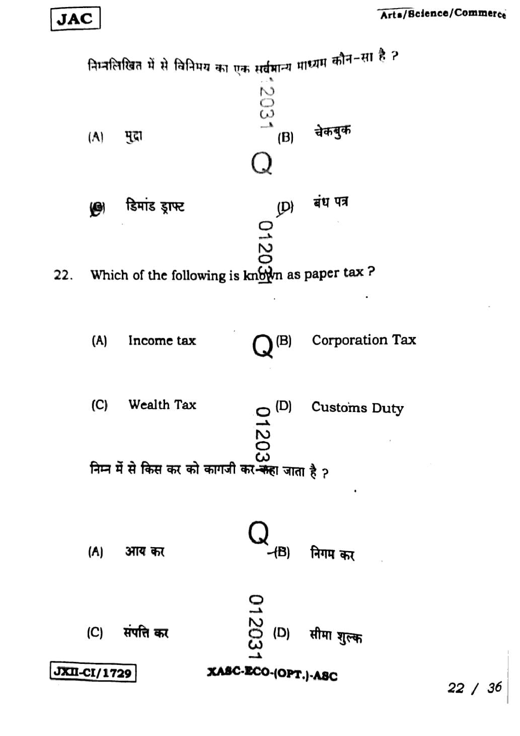 JAC Board Class 12 Economics Previous Year Question Paper PDF