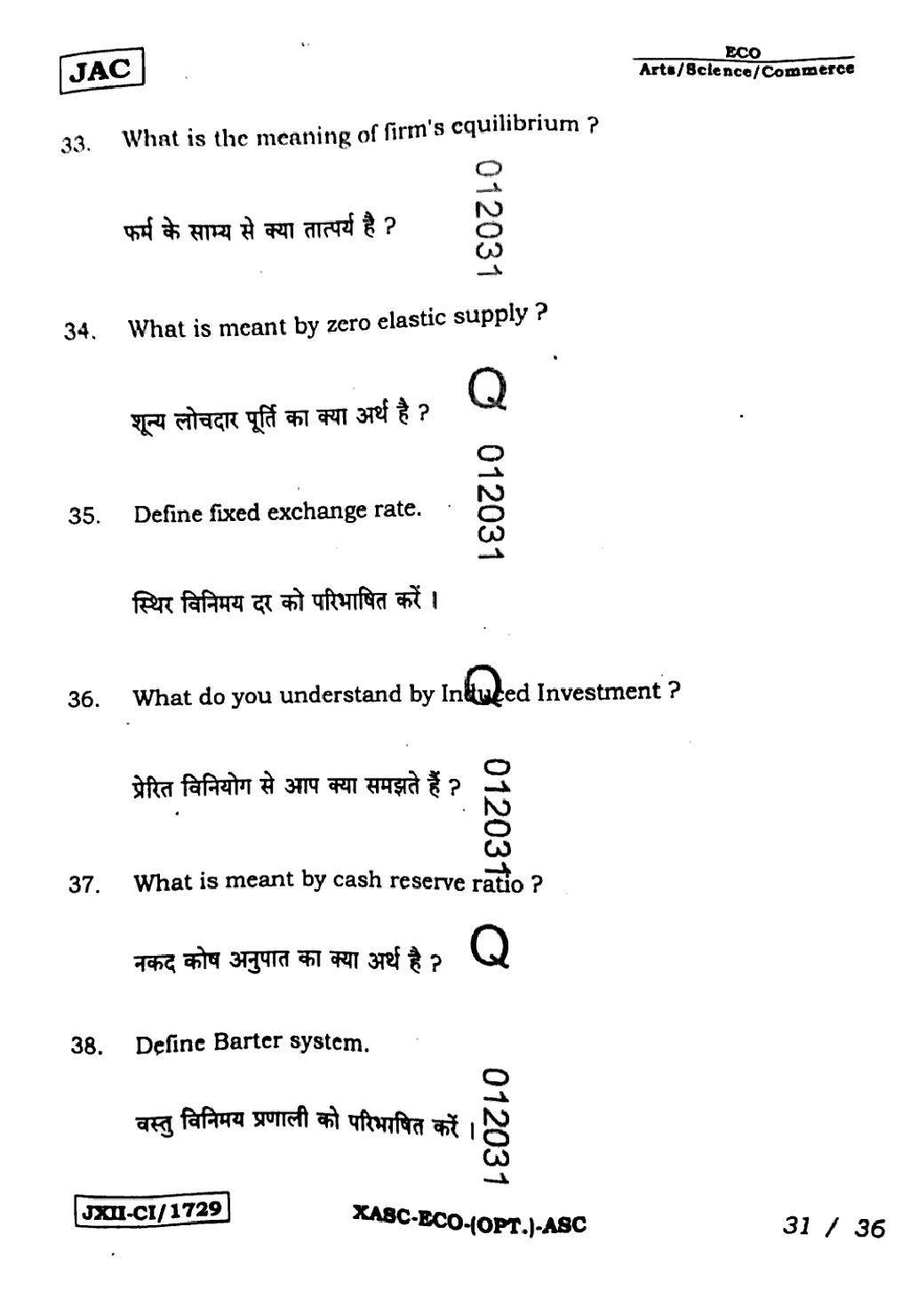 | Resource Here | Jharkhand Board Previous Year Question Paper of Class 12 Economics |