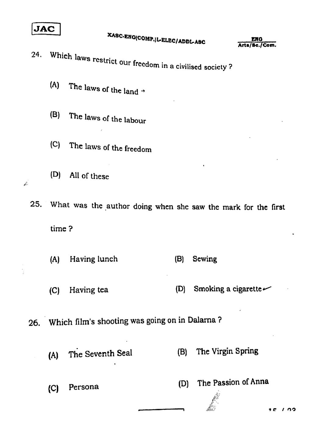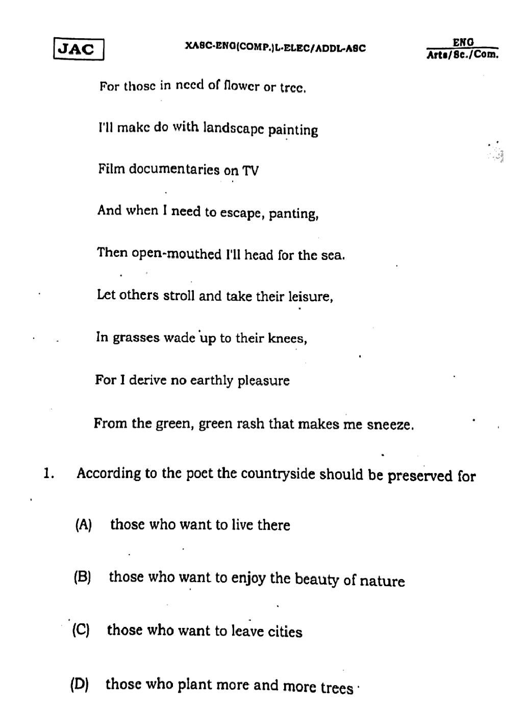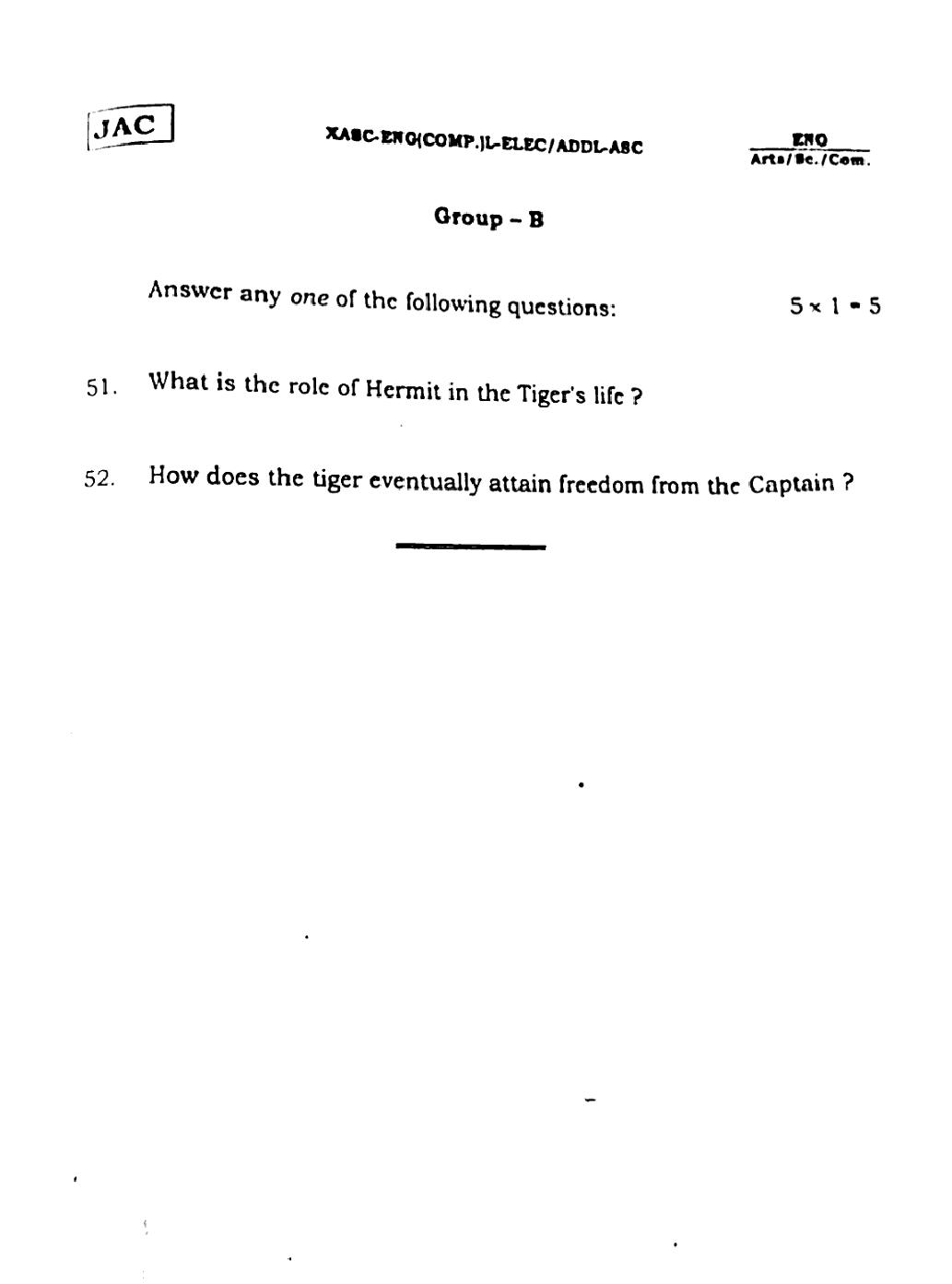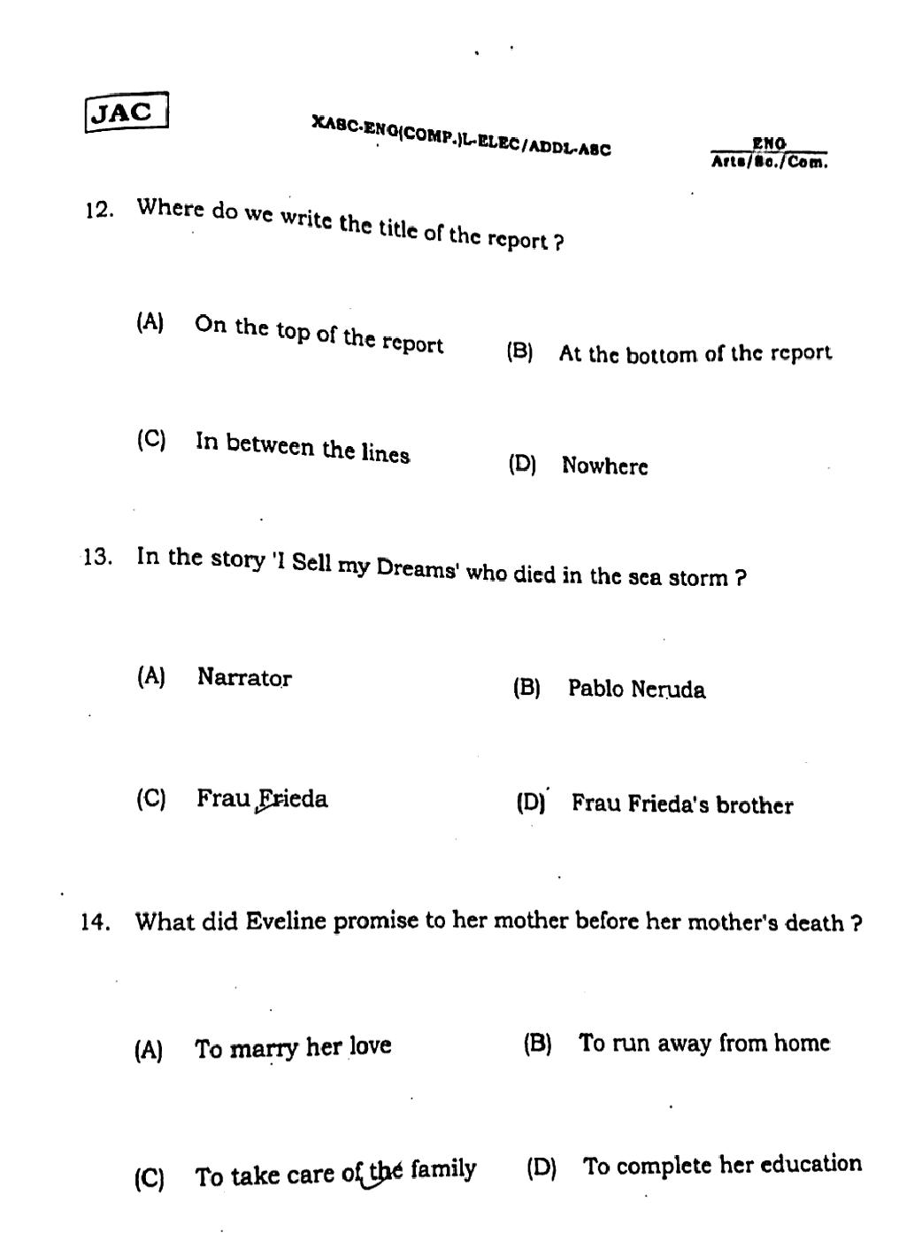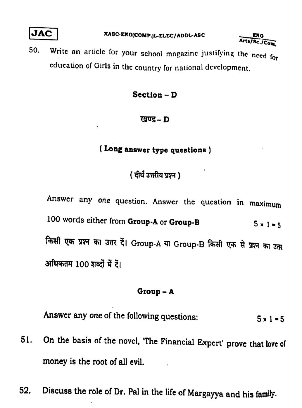The JAC Board Previous Year Question Paper of Class 12 for English (Arts) is as follows.
