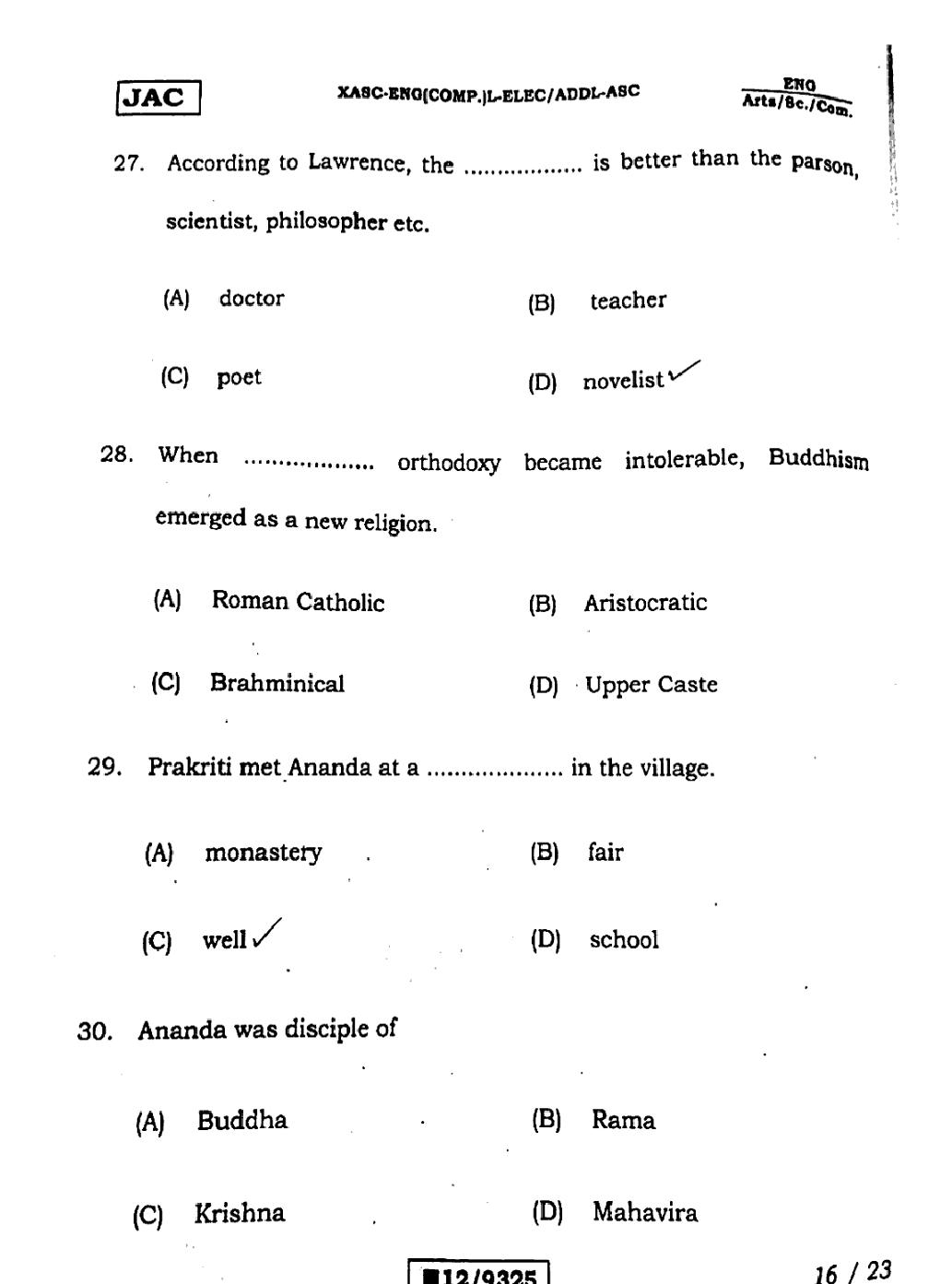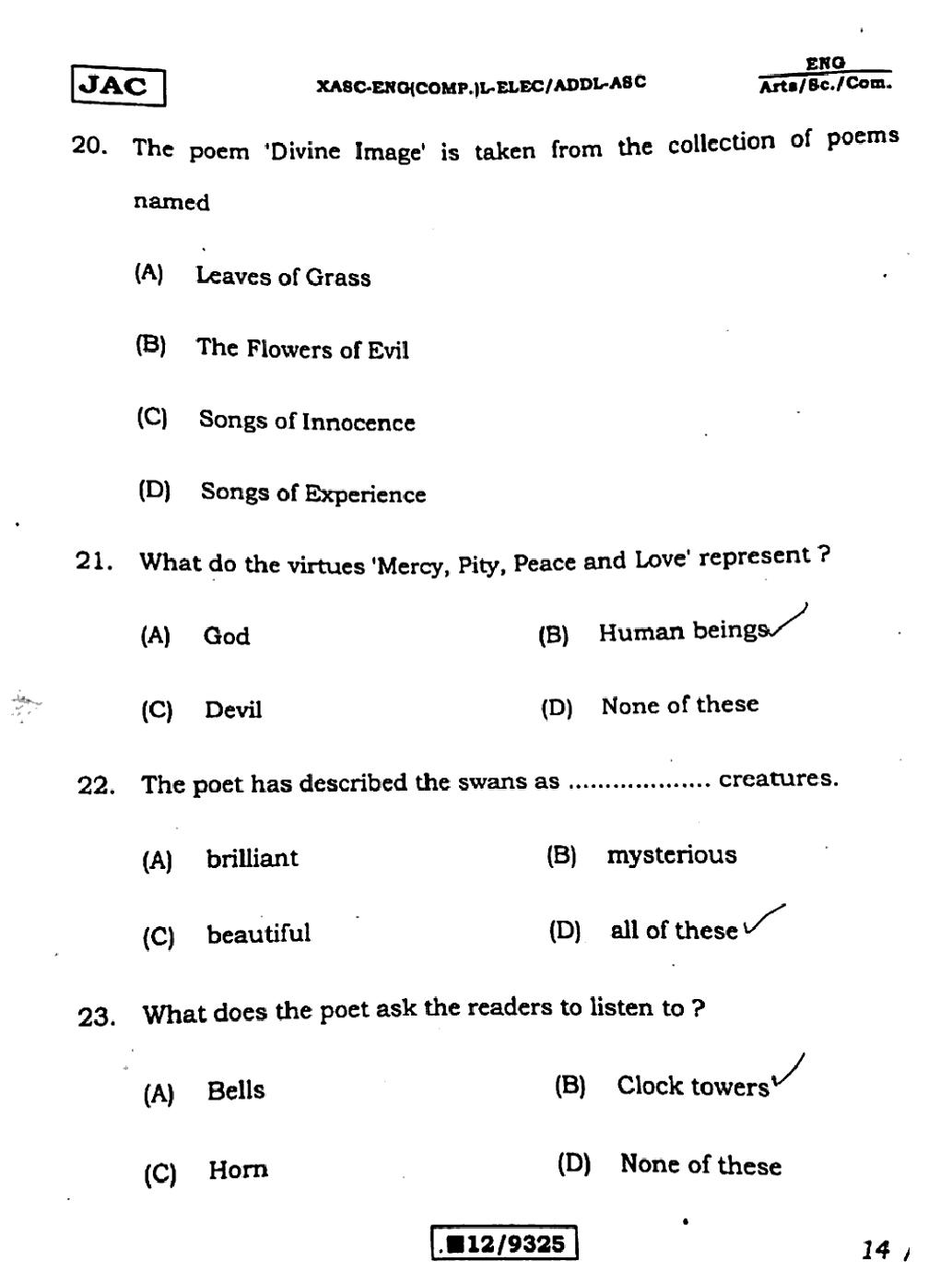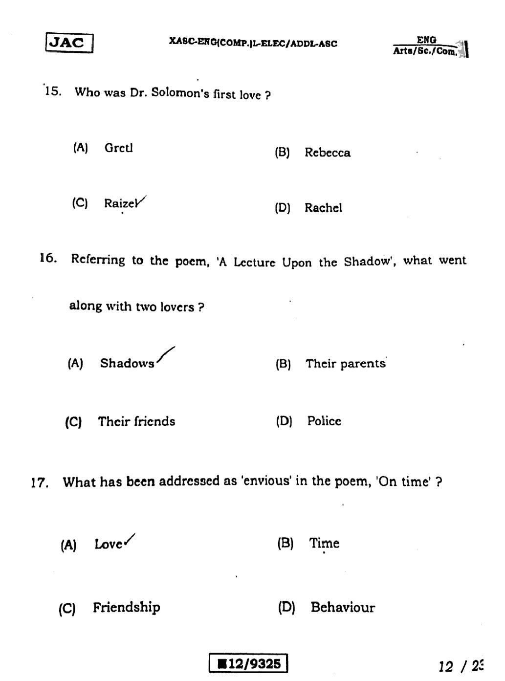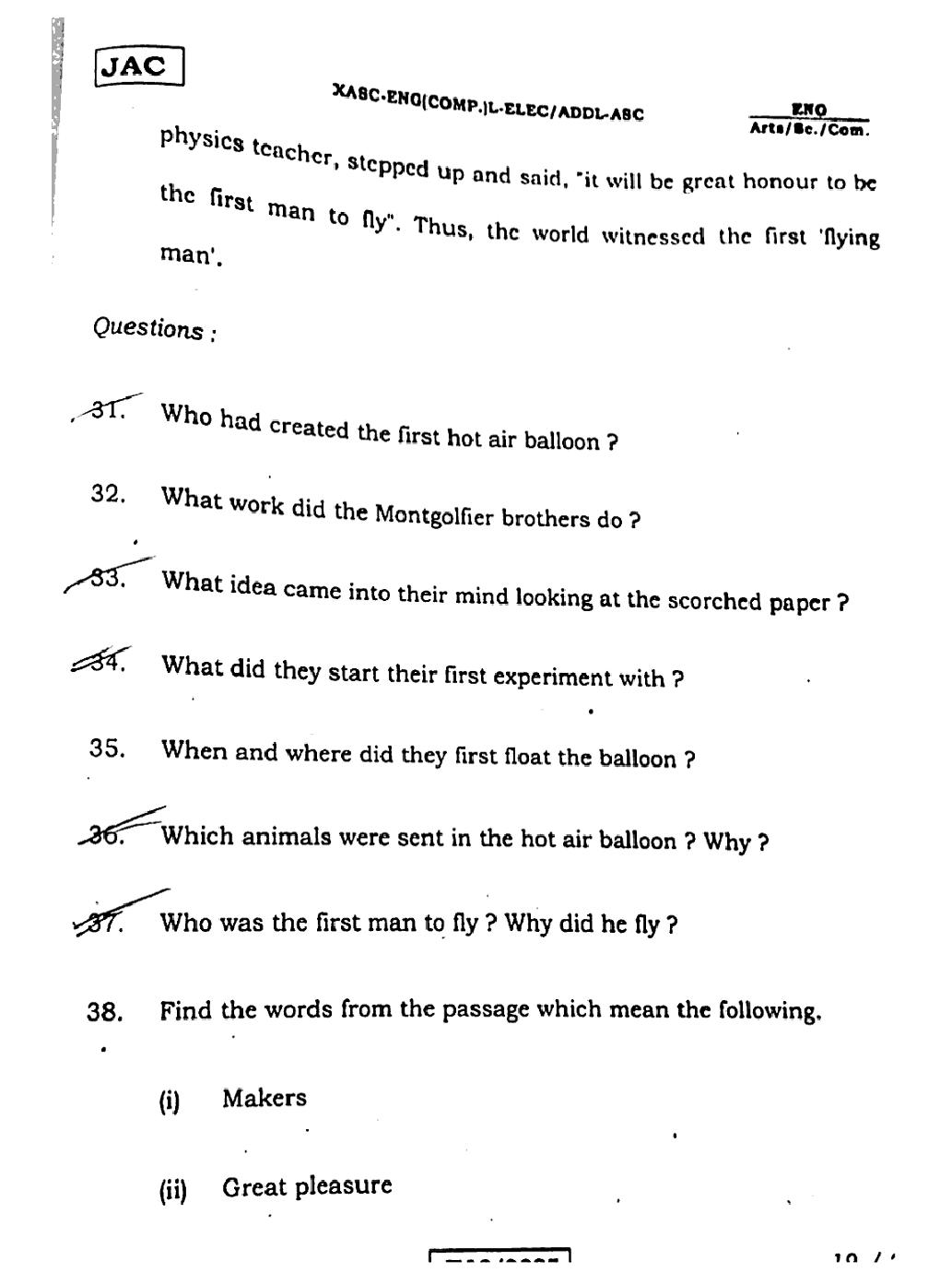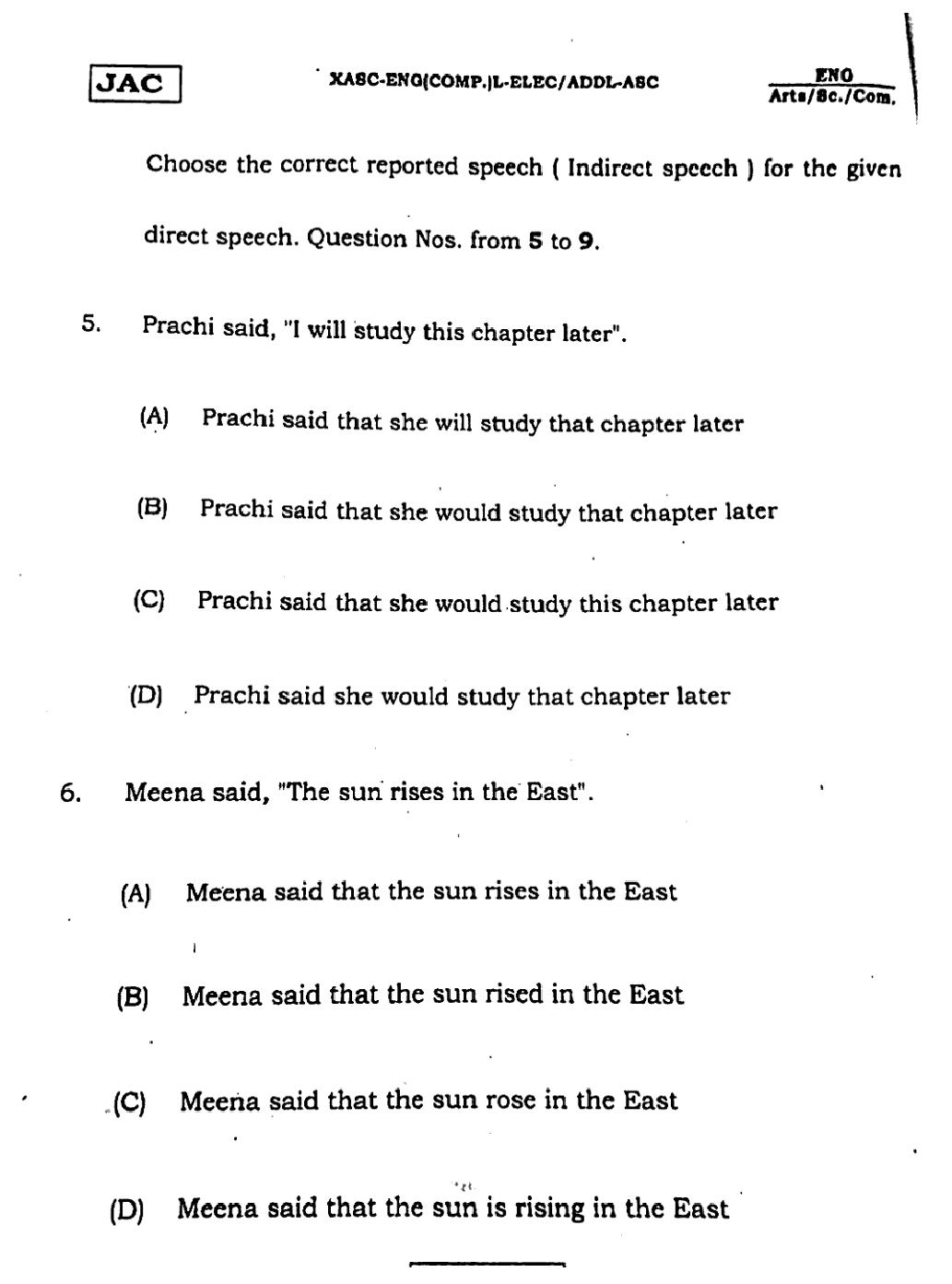 The JAC Board Previous Year Question Paper of Class 12 for English (Arts) is as follows.